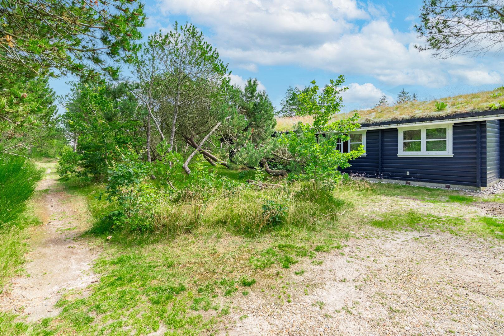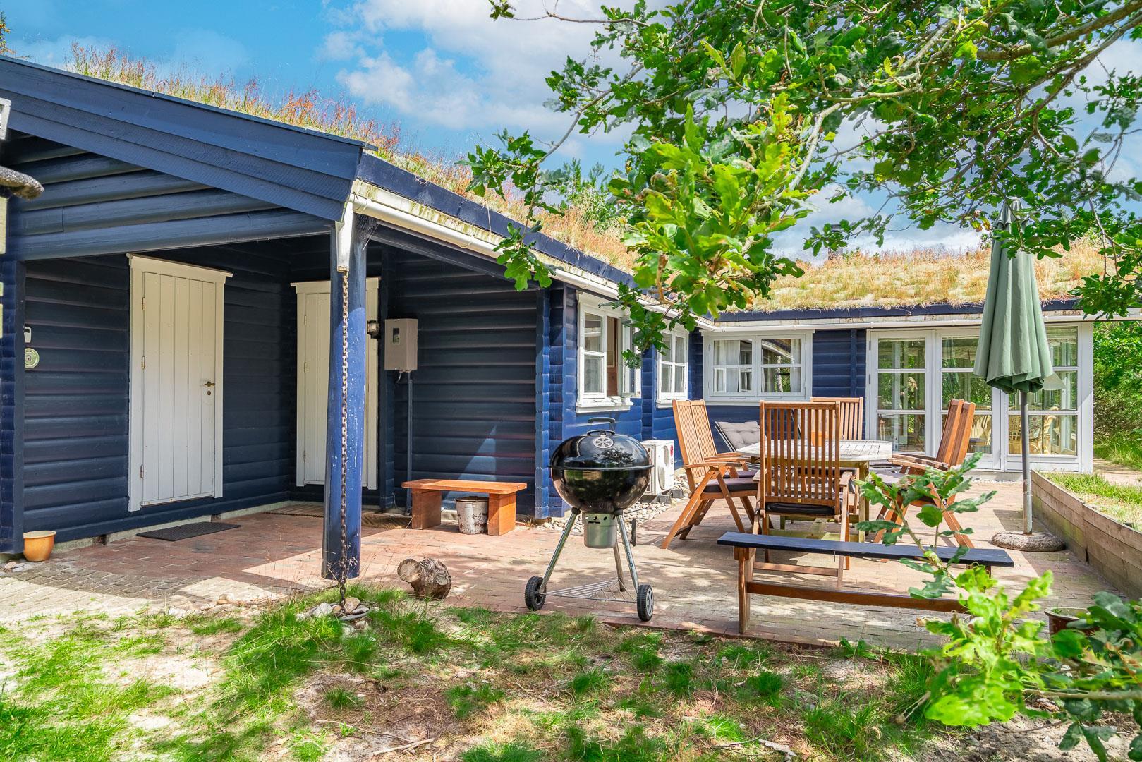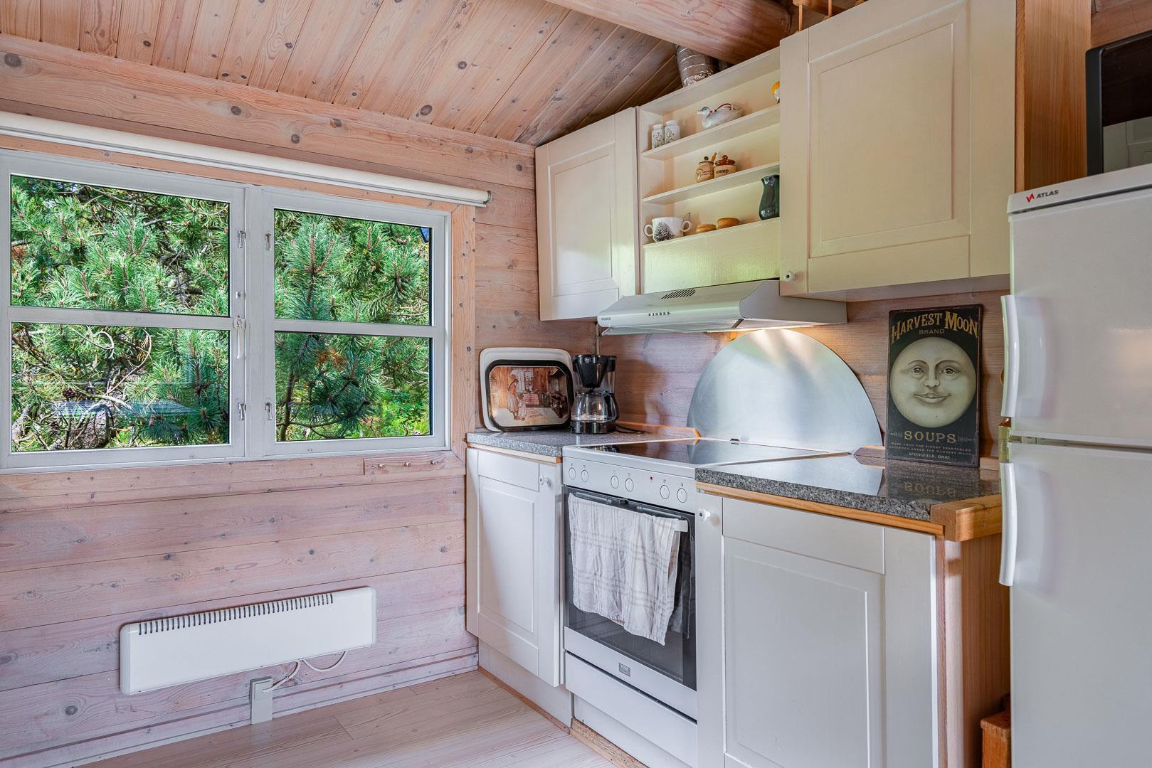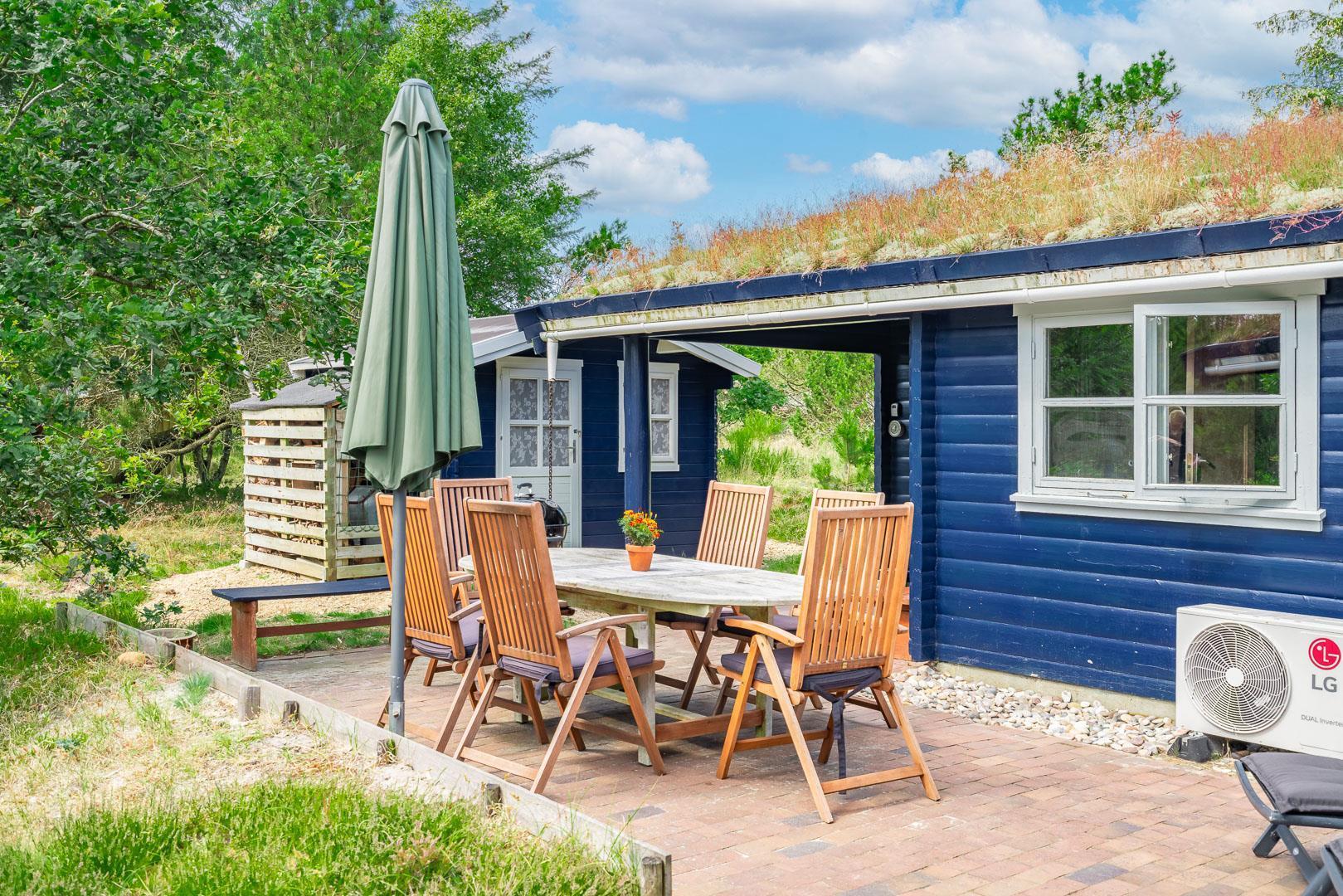 For ende af vej, gemt i naturen, direkte op til plantagen og med sti tæt ved huset, kan I nu nyde jeres ferie på Peder Larsensvej 61. Huset som er et bjælkehus med græs på taget, går i et med den smukke natur. Beplantningen på grunden er varierende og smuk på alle årstider. Med flere terrasser, og hyggekrog med loungesæt, kan I på alle måder opleve huset fra sin bedste side. En udestue med masser af lys og vinduespartier, vil opsluge jer og I vil sandsynligvis bruge meget tid her. En hyggelig stue med højt til loftet, synlige bjælker, komfortable møbler. Dejligt landkøkken med opvaskemaskine, fryser og mikroovn samt en spisekrog. På badeværelset befinder sig også vaskemaskine. 3 gode værelser.
