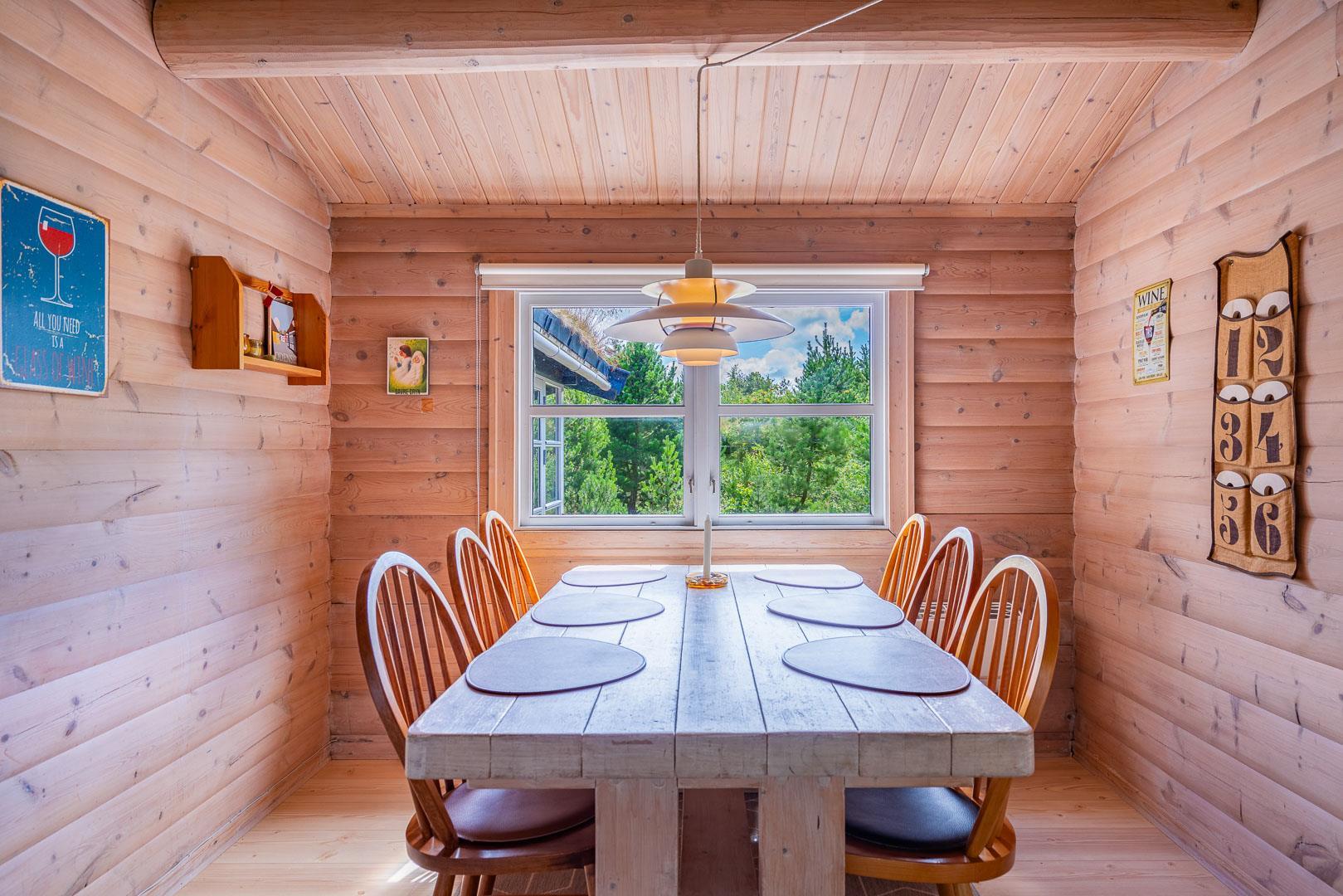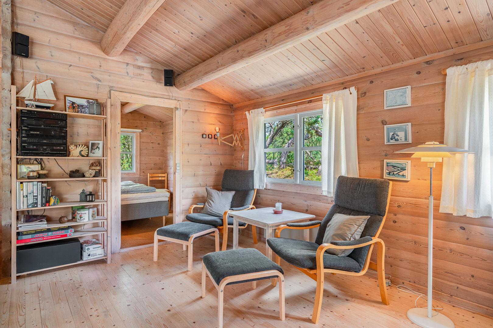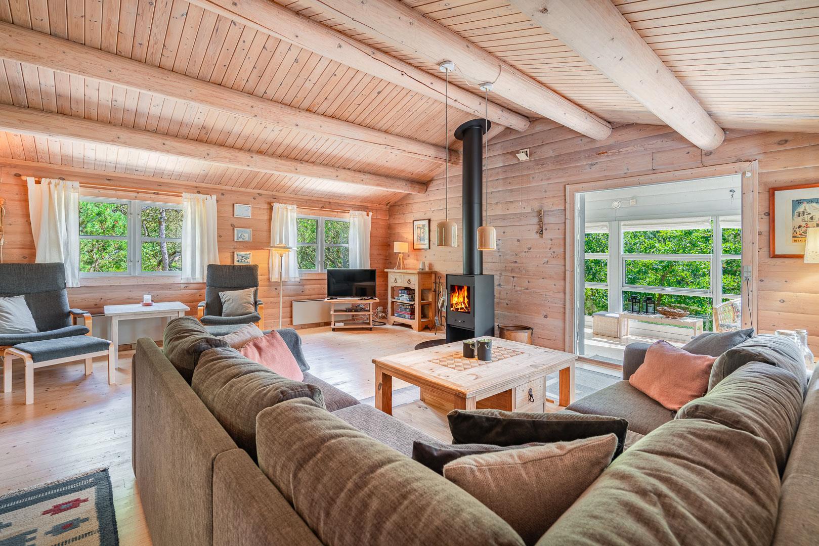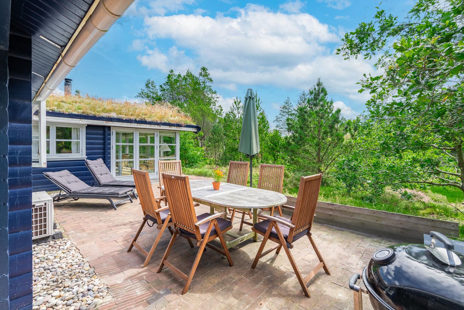 For ende af vej, gemt i naturen, direkte op til plantagen og med sti tæt ved huset, kan I nu nyde jeres ferie på Peder Larsensvej 61. Huset som er et bjælkehus med græs på taget, går i et med den smukke natur. Beplantningen på grunden er varierende og smuk på alle årstider. Med flere terrasser, og hyggekrog med loungesæt, kan I på alle måder opleve huset fra sin bedste side. En udestue med masser af lys og vinduespartier, vil opsluge jer og I vil sandsynligvis bruge meget tid her. En hyggelig stue med højt til loftet, synlige bjælker, komfortable møbler. Dejligt landkøkken med opvaskemaskine, fryser og mikroovn samt en spisekrog. På badeværelset befinder sig også vaskemaskine. 3 gode værelser.