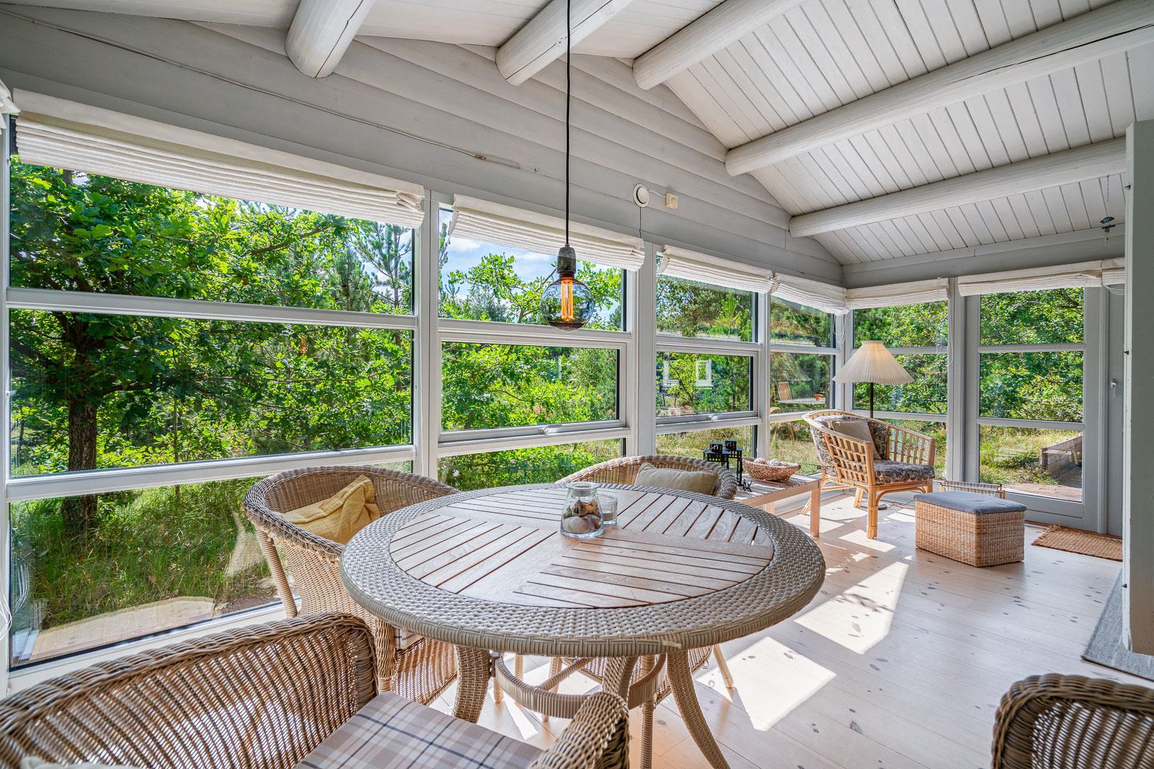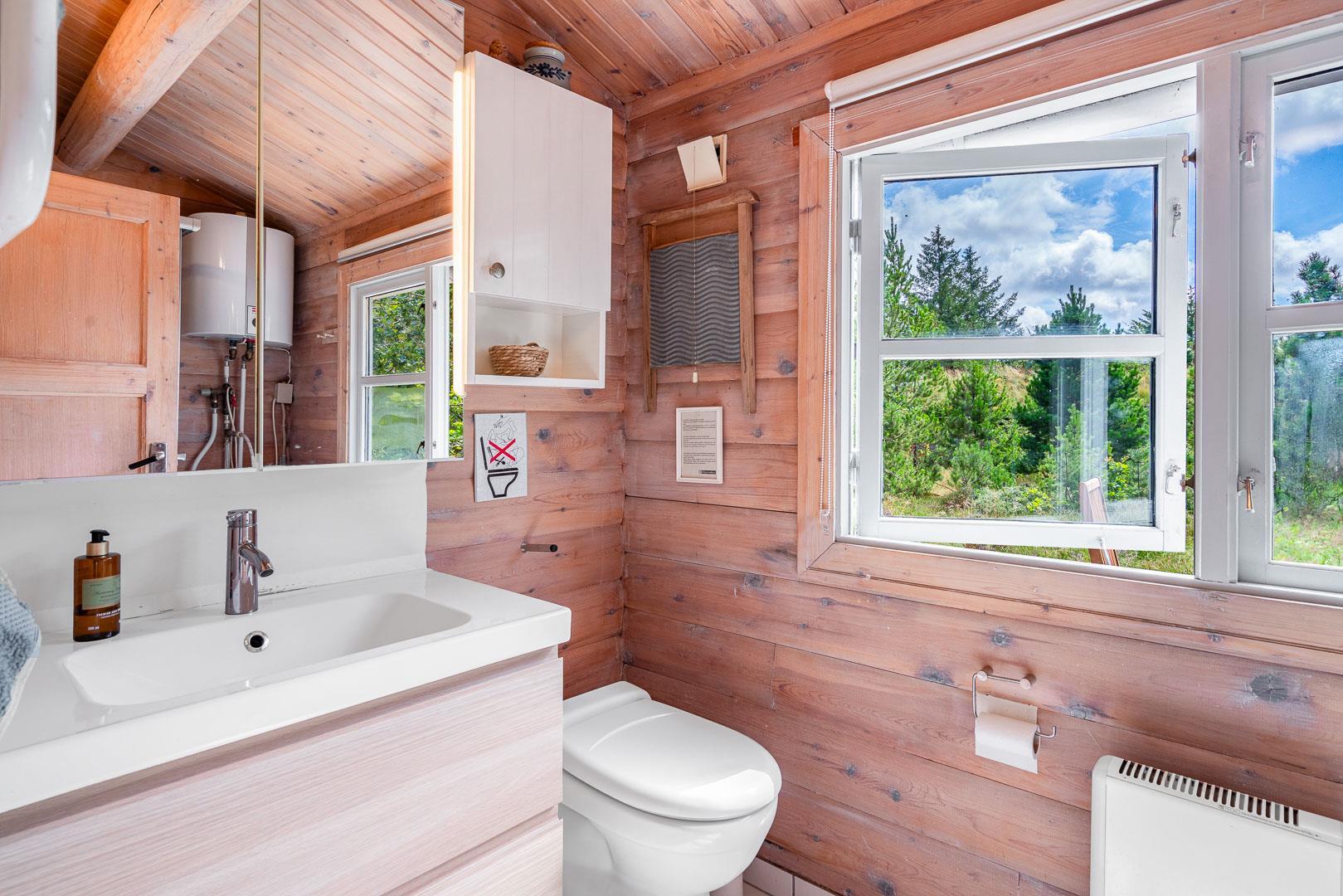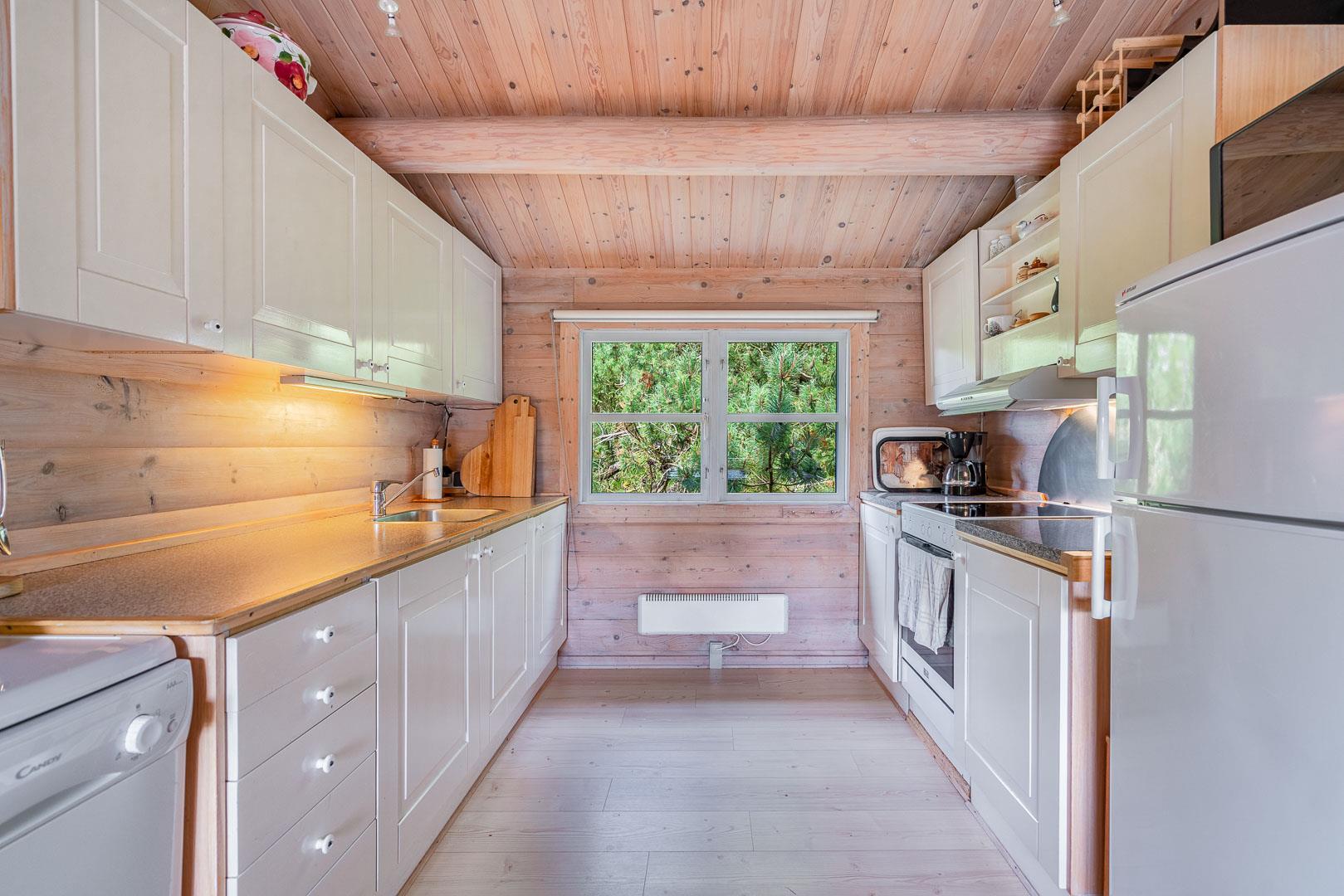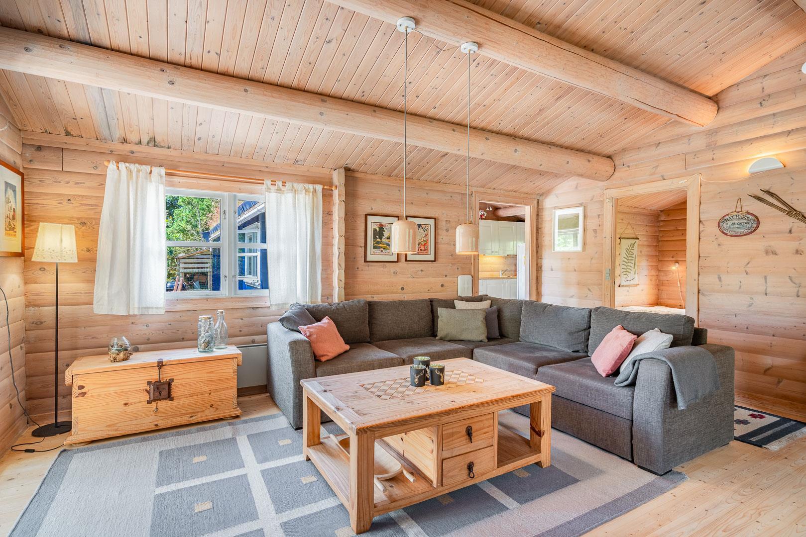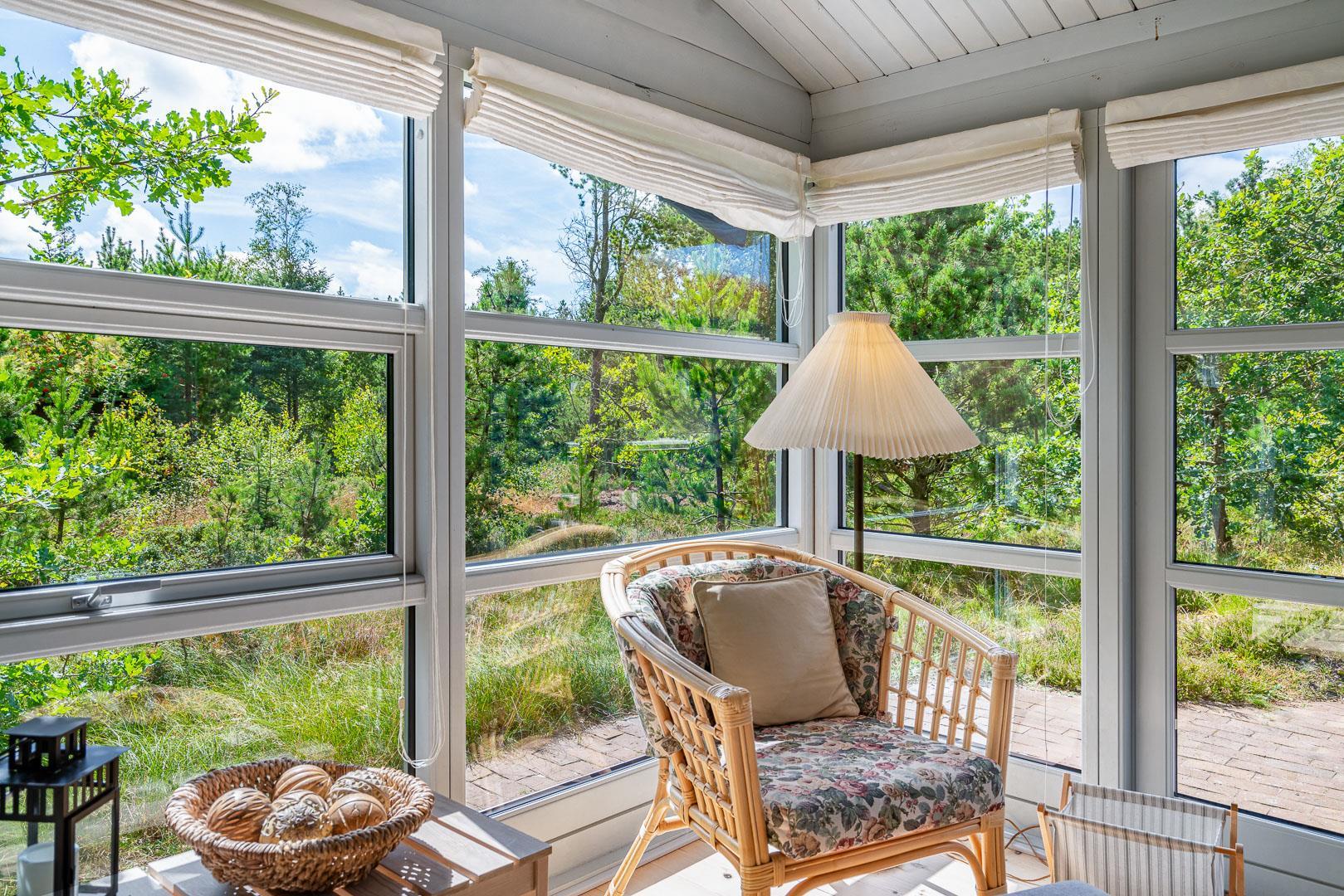 For ende af vej, gemt i naturen, direkte op til plantagen og med sti tæt ved huset, kan I nu nyde jeres ferie på Peder Larsensvej 61. Huset som er et bjælkehus med græs på taget, går i et med den smukke natur. Beplantningen på grunden er varierende og smuk på alle årstider. Med flere terrasser, og hyggekrog med loungesæt, kan I på alle måder opleve huset fra sin bedste side. En udestue med masser af lys og vinduespartier, vil opsluge jer og I vil sandsynligvis bruge meget tid her. En hyggelig stue med højt til loftet, synlige bjælker, komfortable møbler. Dejligt landkøkken med opvaskemaskine, fryser og mikroovn samt en spisekrog. På badeværelset befinder sig også vaskemaskine. 3 gode værelser.