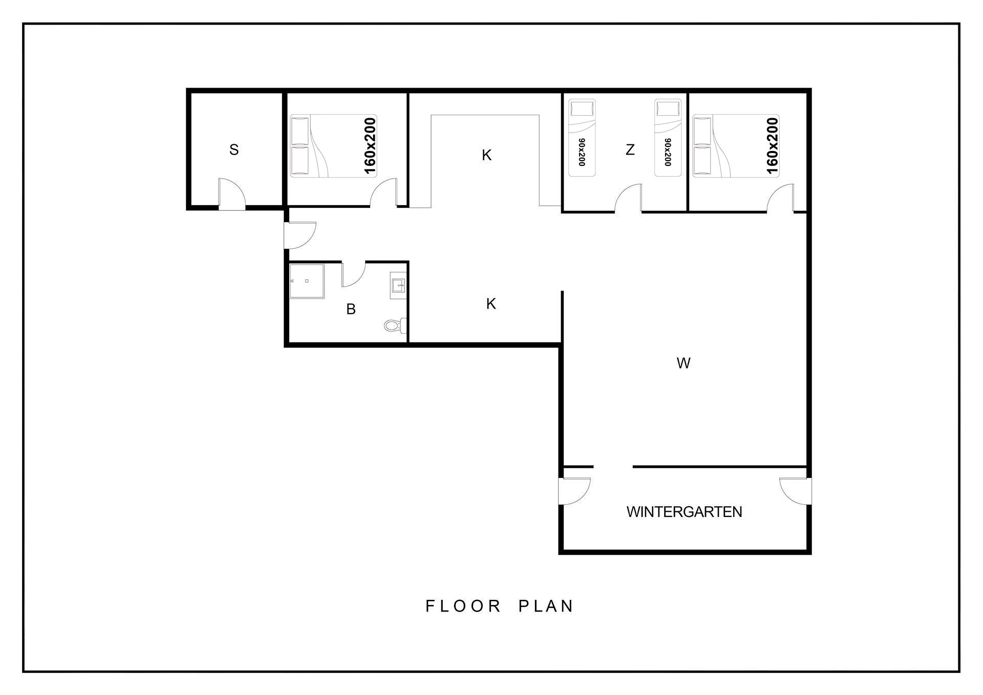 Sengestørrelse: 2 dobbeltsenge 160 x 200 cm + 2 enkeltsenge 90 x 200 cm