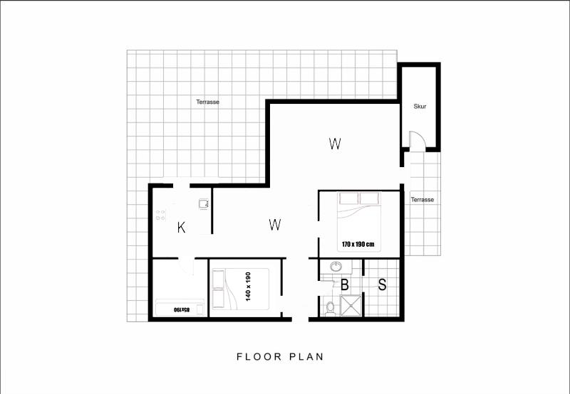 Sengestørrelser: 1 dobbeltseng 140 x 190 cm + 1 dobbeltseng 170 x 190 cm + 1 køjeseng 85 x 190 cm.