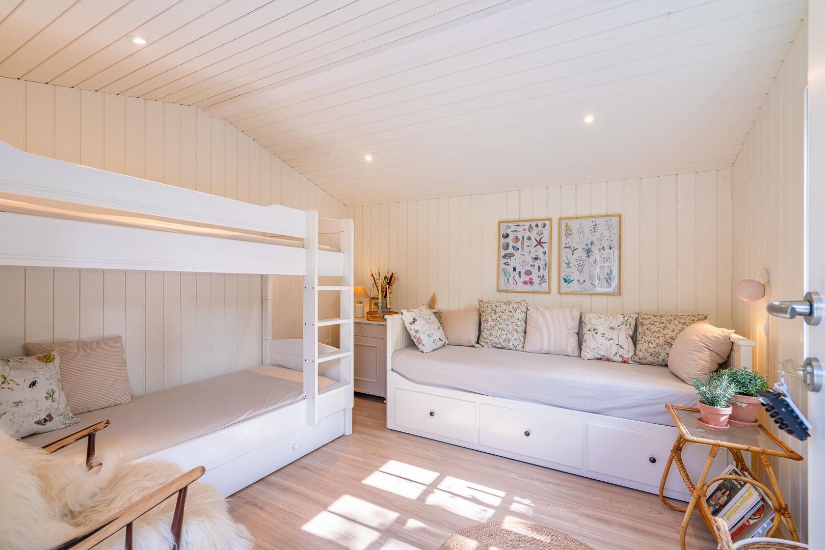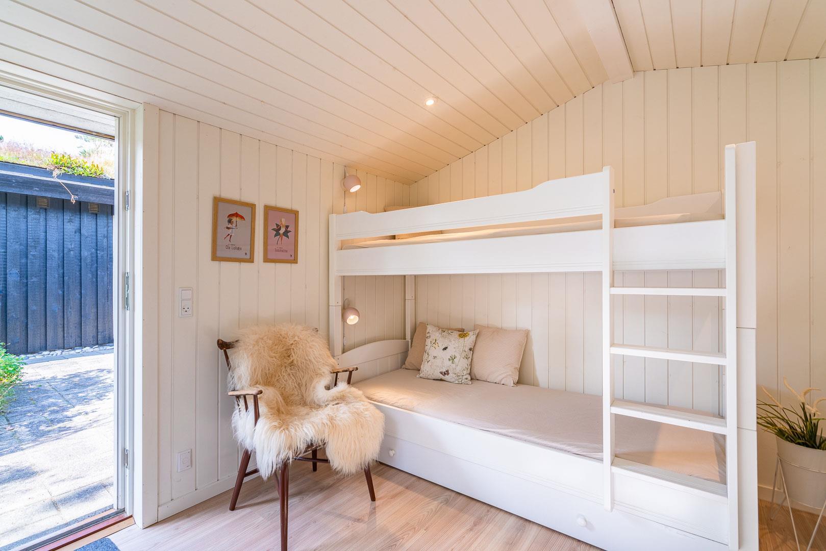 Huset rummer tre hyggelige soveværelser – heraf to med dobbeltsenge (140 x 200 cm) – så der er god plads, uanset om I er én stor familie eller flere par, der holder ferie sammen.