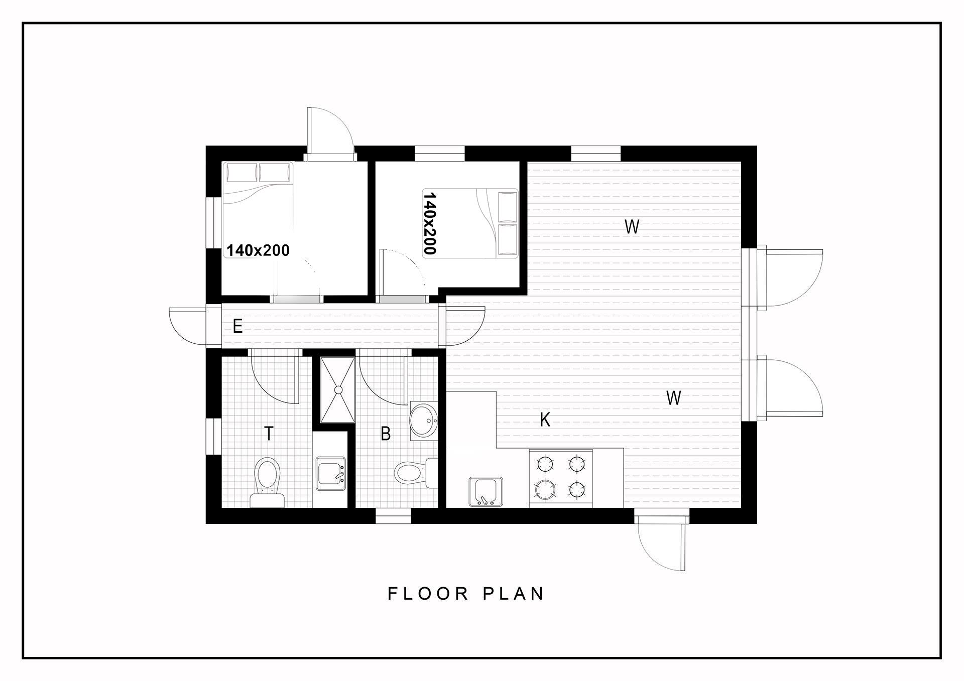 Sengestørrelse: 2 dobbeltsenge 140 x 200 cm.