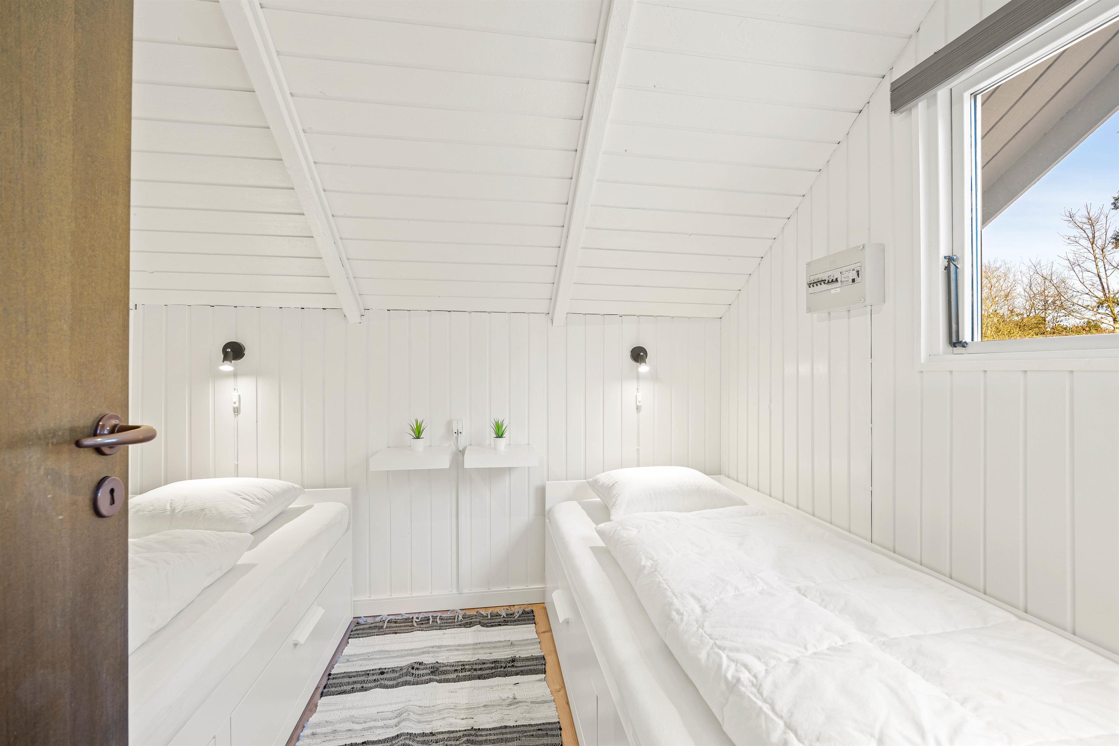 Sommerhusets 55 m2 er godt udnyttet, og kan sagtens rumme en familie på 4 personer. I finder 2 soverum i huset, hvor det ene har en dobbeltseng og det andet har to enkeltsenge.