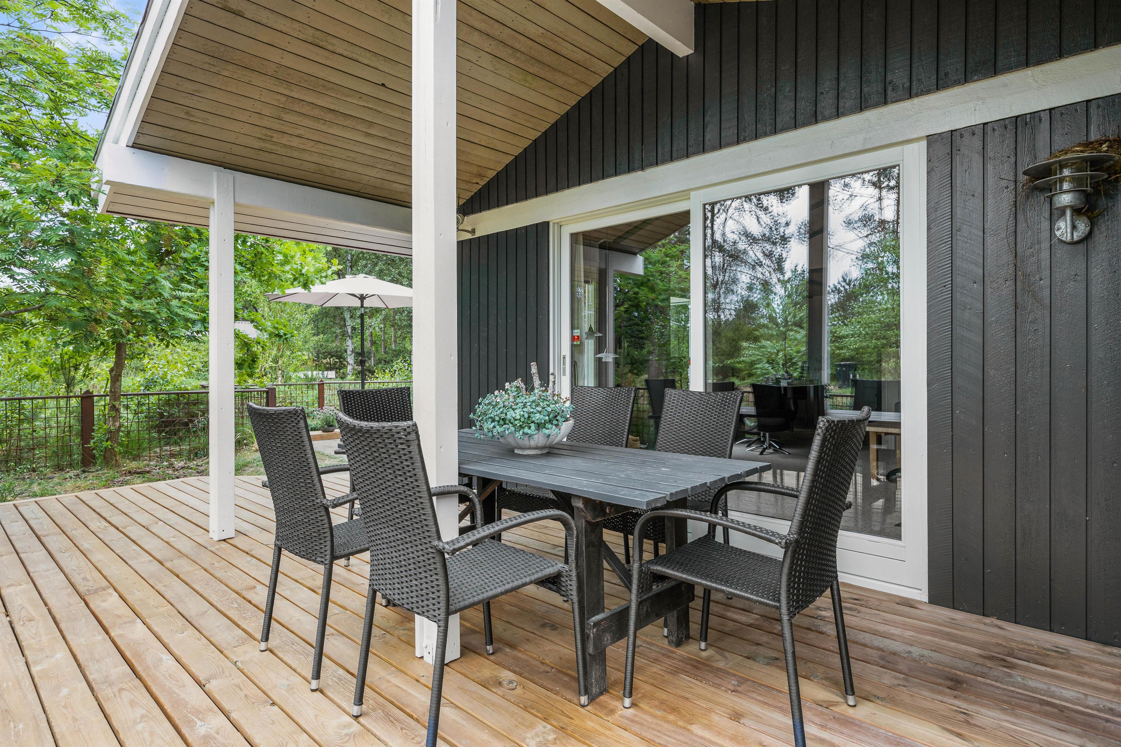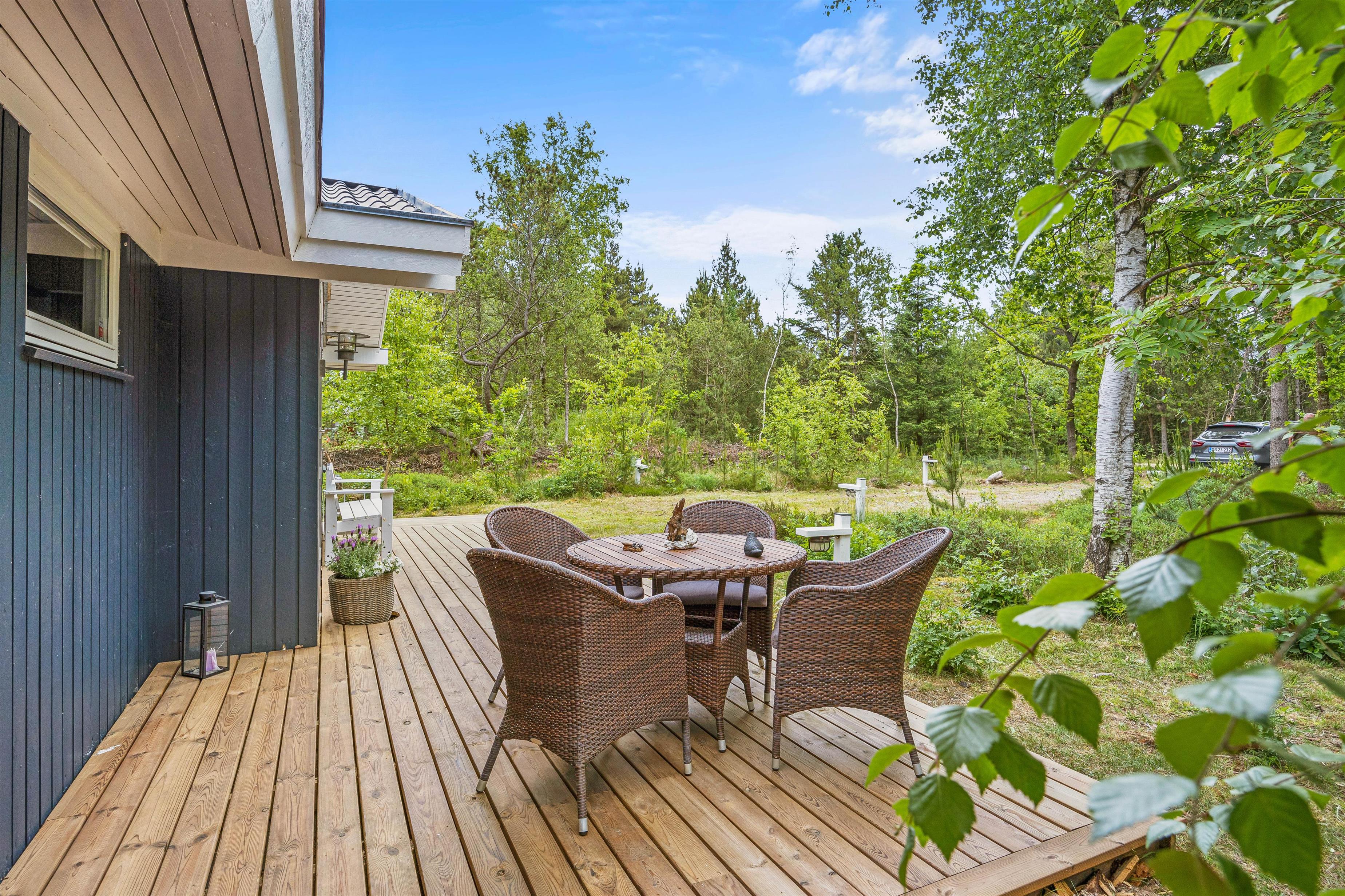 Mens børnene leger, kan I andre slappe af på terrassen. Der er terrasse omkring det meste af feriehuset, og I vil derfor sagtens kunne finde en god plads, hvor I kan sætte jer godt til rette i havemøbler og liggestole, mens I bare slapper af og nyder ferien. Hvis I er til ild, så er der også lavet en fin bålplads ved huset.