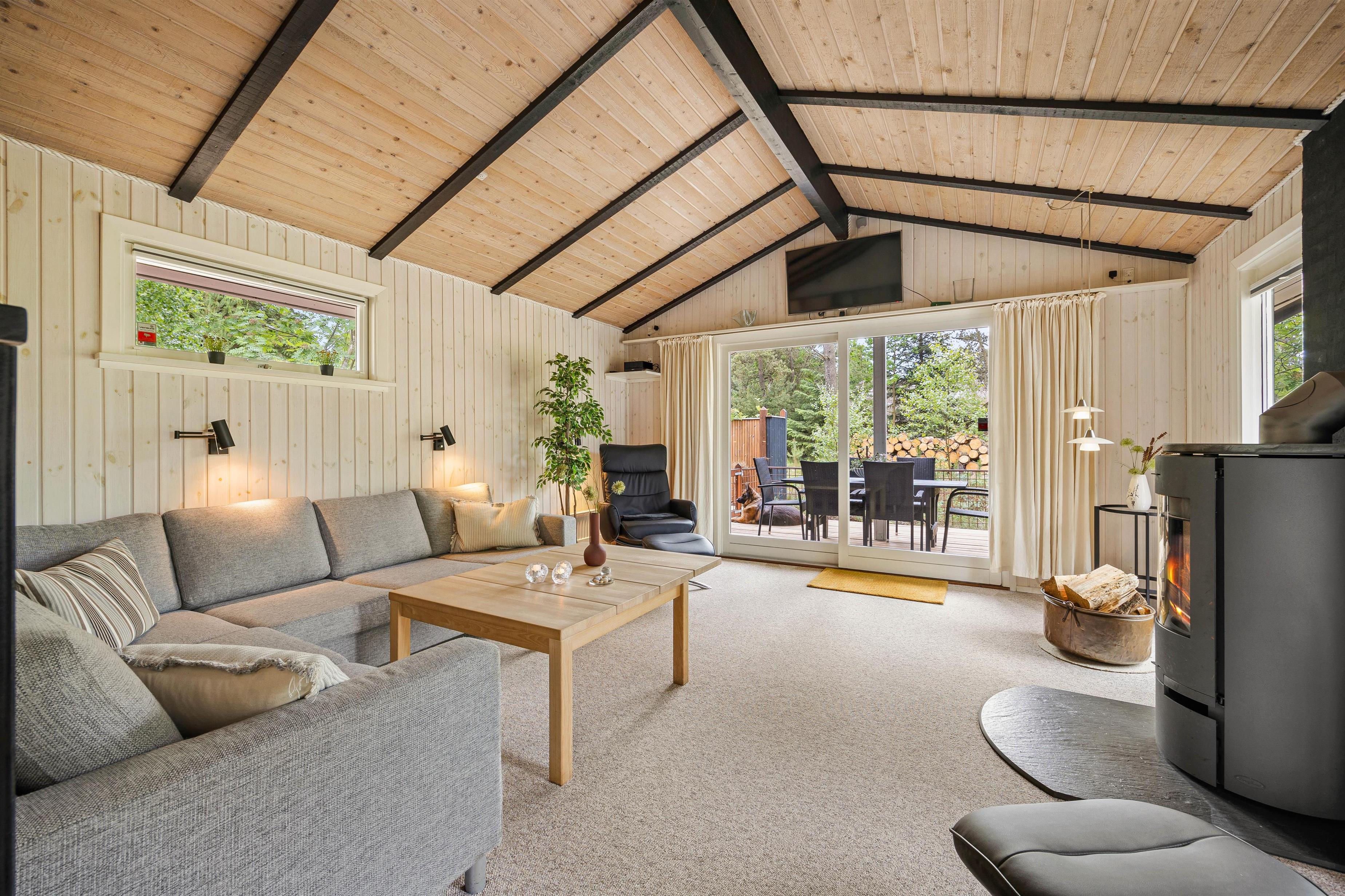 I alrummet kan I være sammen om madlavningen i køkkenet, spise lækre måltider eller spille sjove spil ved spisebordet samt sætte jer godt til rette i stuen til en god film i tv’et. Uanset hvad I laver, sørger brændeovnen for, at feriestemningen er helt i top.