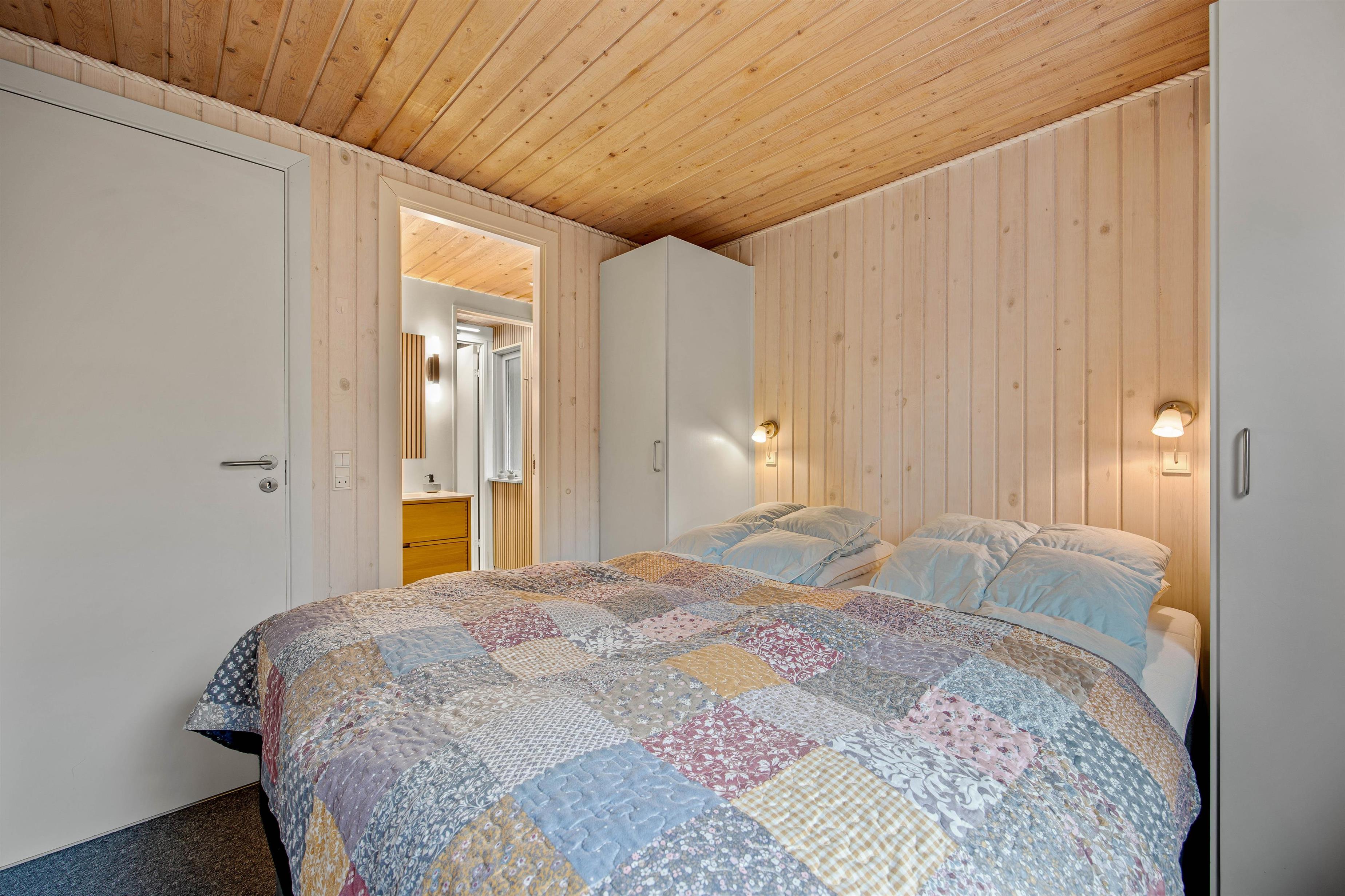 Efterhånden som I er ved at have brugt jeres energi, kan I bevæge jer mod de 3 soveværelser i feriehuset, så I kan samle ny energi til næste feriedag. Det ene soveværelse er indrettet med en dobbeltseng, det andet med 2 enkeltsenge, mens det tredje er indrettet med en dobbelt sovesofa. Sommerhusets 2 toiletter har begge en aflåselig dør til husets bad, så I har altså adgang fra begge sider. Derudover er der bad ved sauna i anneks.
