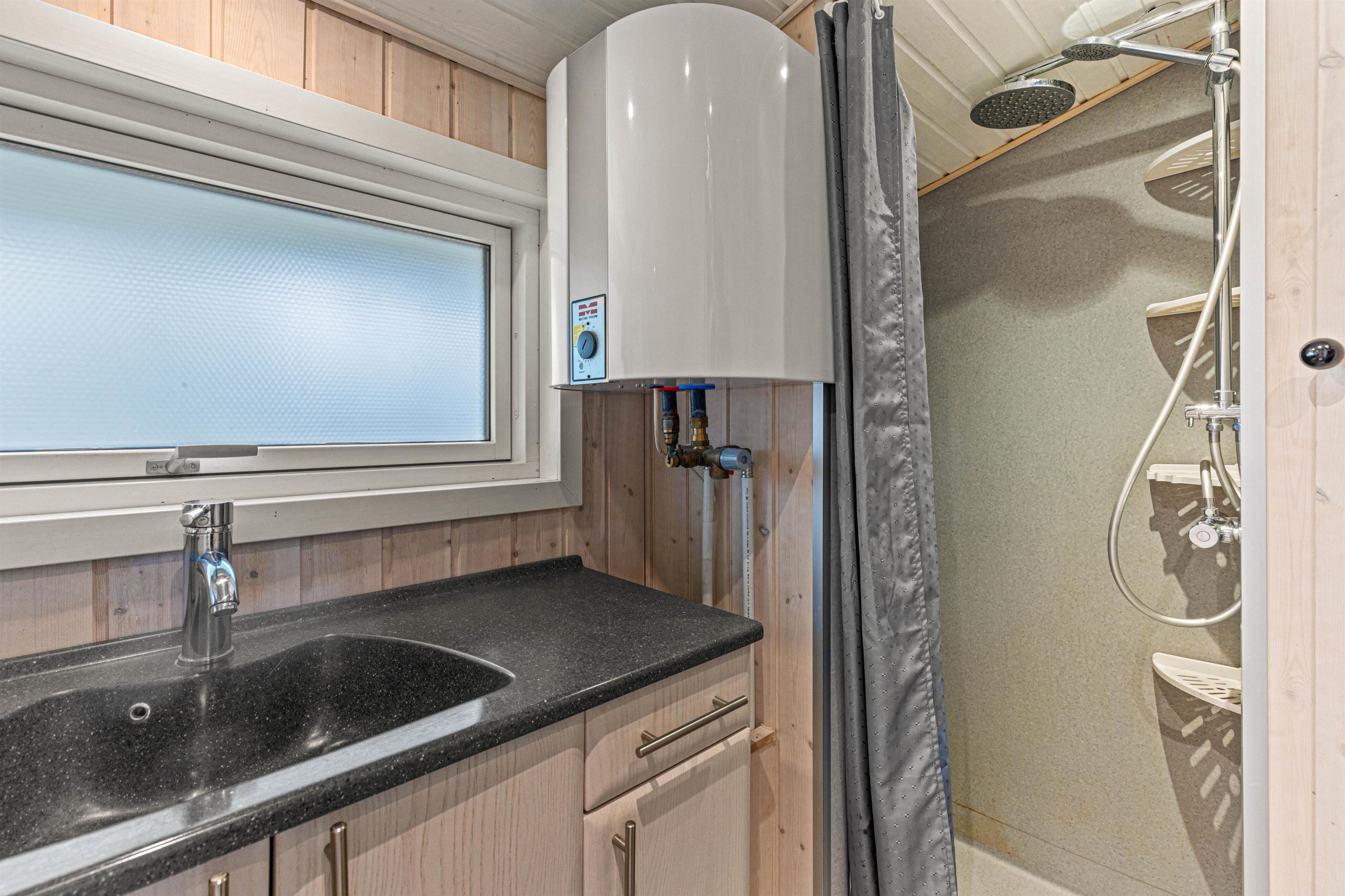 Brændeovnen midt i stuen sørger for at sprede en hyggelig atmosfære, og i sofahjørnet er der plads til hele familien. Her kan der holdes en god filmaften med popcorn eller spilles et slag kort ved stuebordet. Køkkenet er veludstyret med både opvaskemaskine og fryser, og alt andet, hvad der kunne tænkes at blive brug for i løbet af ferien.