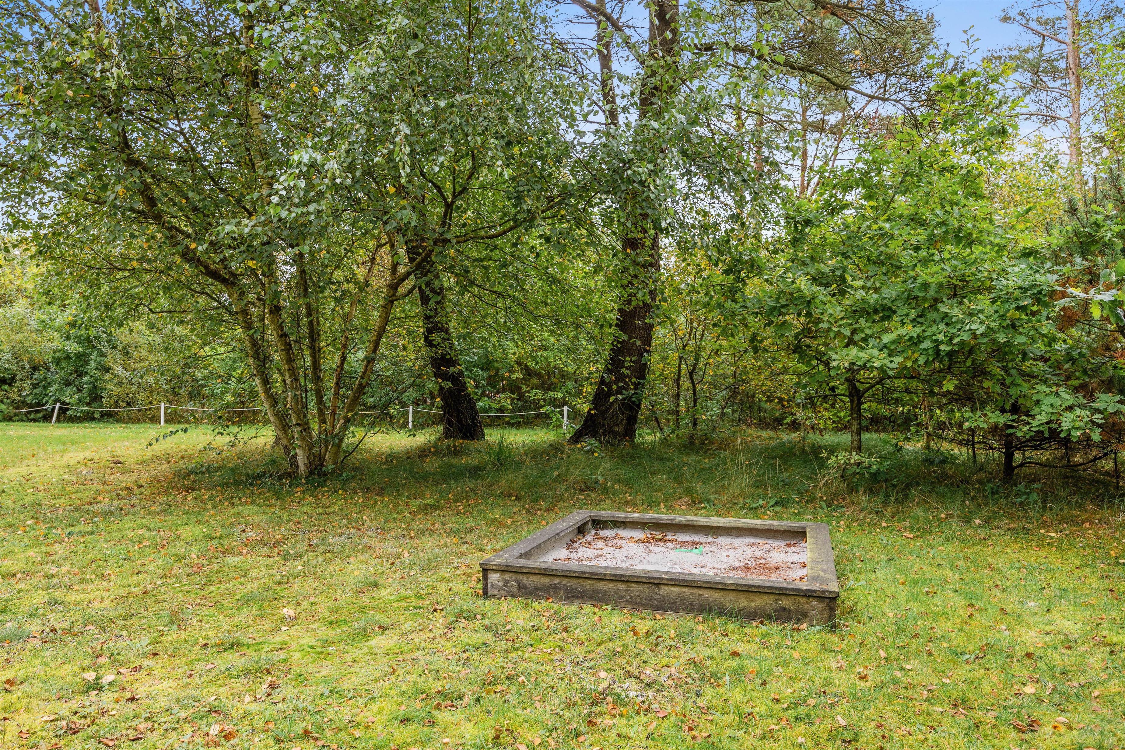 På sommerhusets udeområde er der også tænkt på feriens yngste gæster, og til dem står der en sandkasse klar, som de kan bygge flotte sandslotte i.