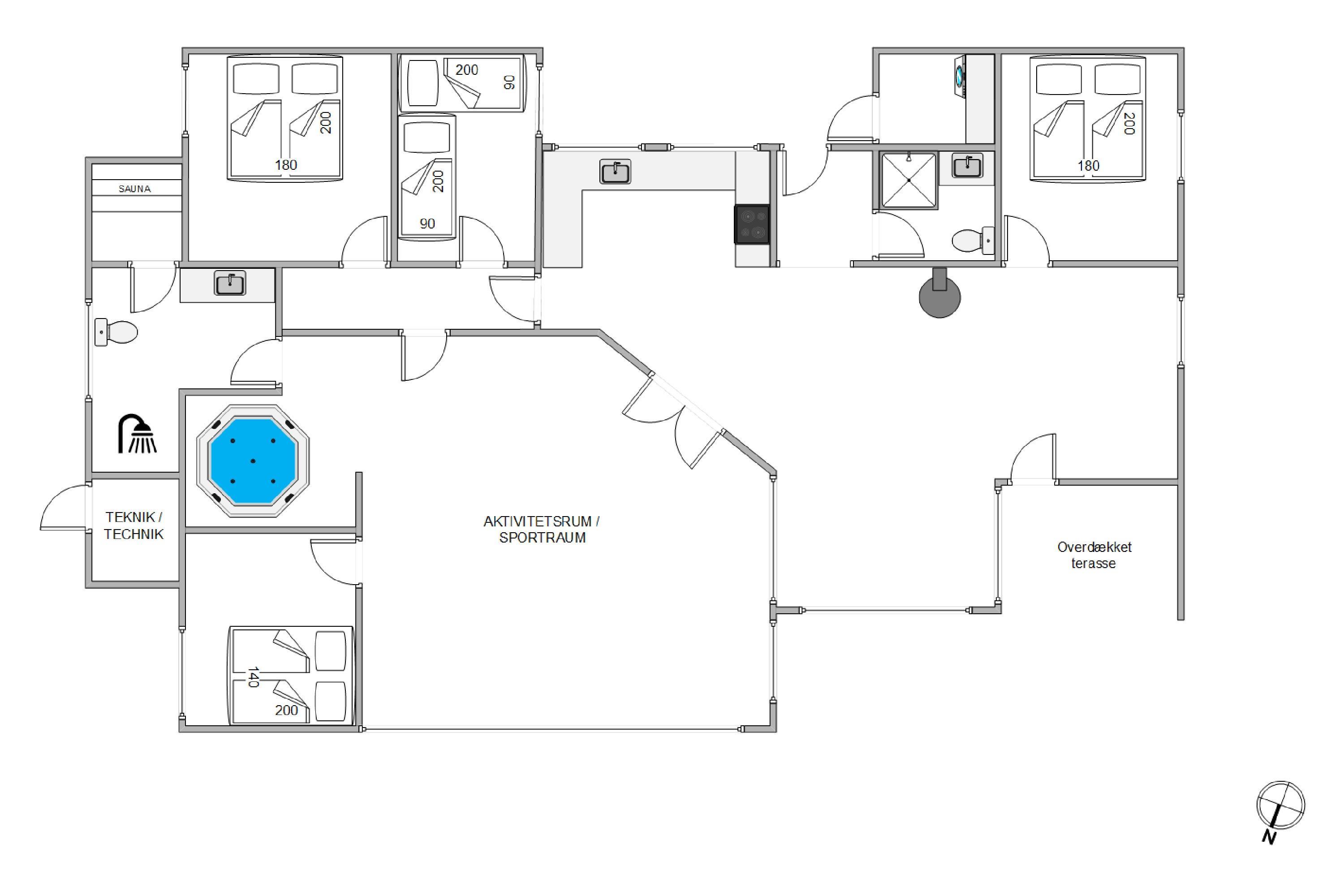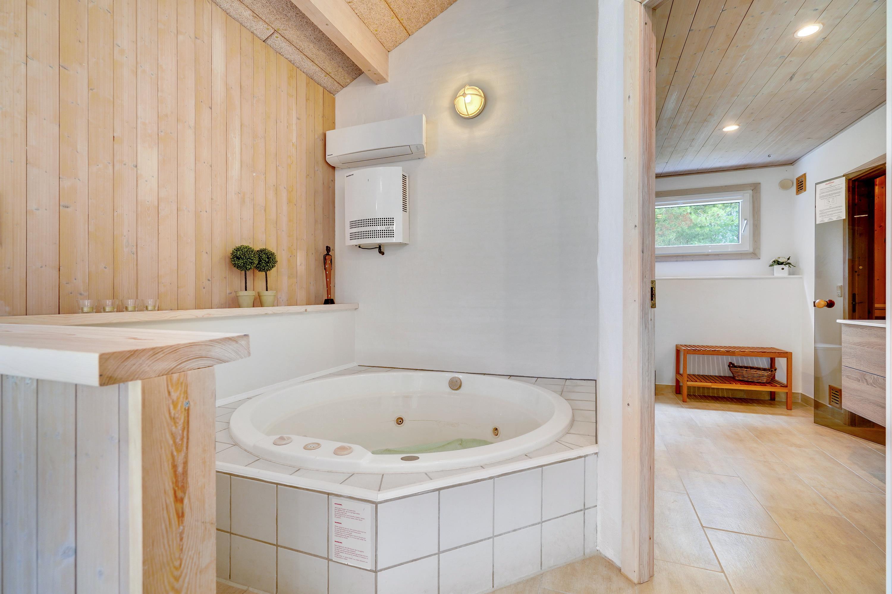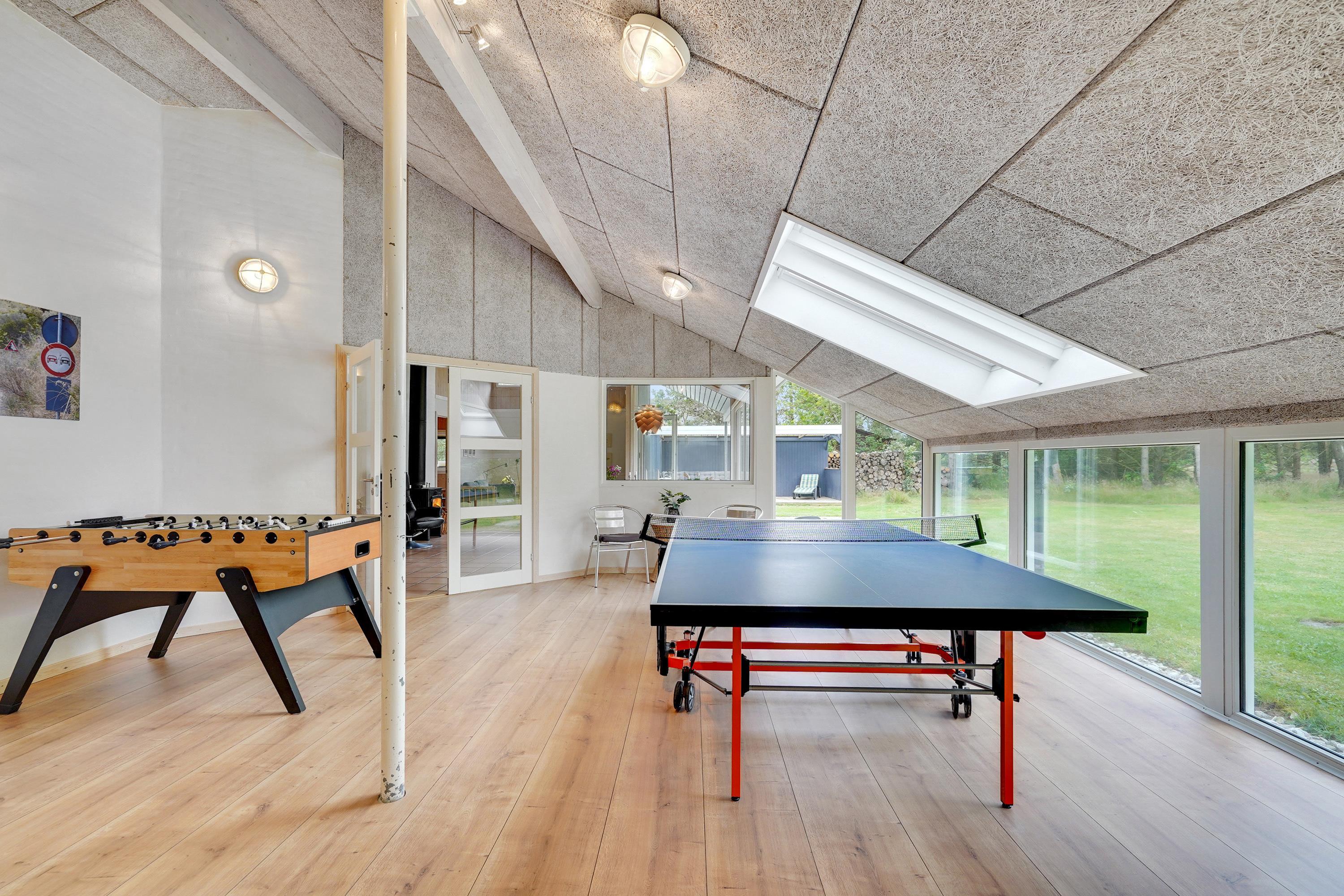 Dette sommerhus har et stort køkkenalrum, med gulvarme hvor hele familien kan samles omkring madlavningen, spilhygge eller bare afslapning på sofaen. På sommerhusets fladskærms-tv kan I se en god film, men hvis det bliver for kedeligt, kan I altid finde underholdning i aktivitetsrummet med bordtennis, bordfodbold og stor spa. Dét er rummet, som indbyder til timevis af sjov.