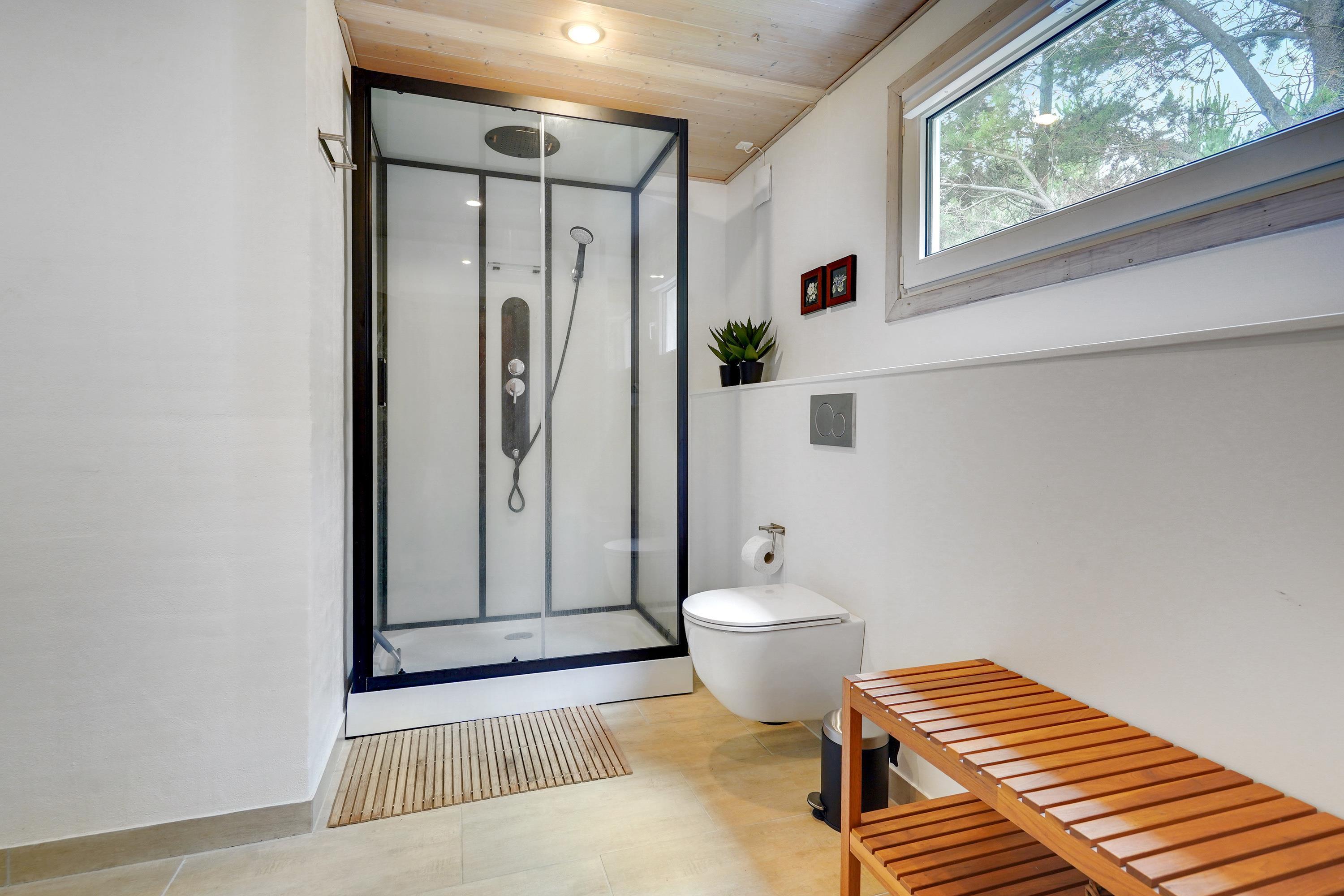 Sommerhuset har 2 badeværelser. Så hvis I er 2 familier, som er afsted sammen, kan hver familie have deres eget badeværelse. Derudover har sommerhuset også 2 varmepumper, som altid sikrer en behagelig temperatur.