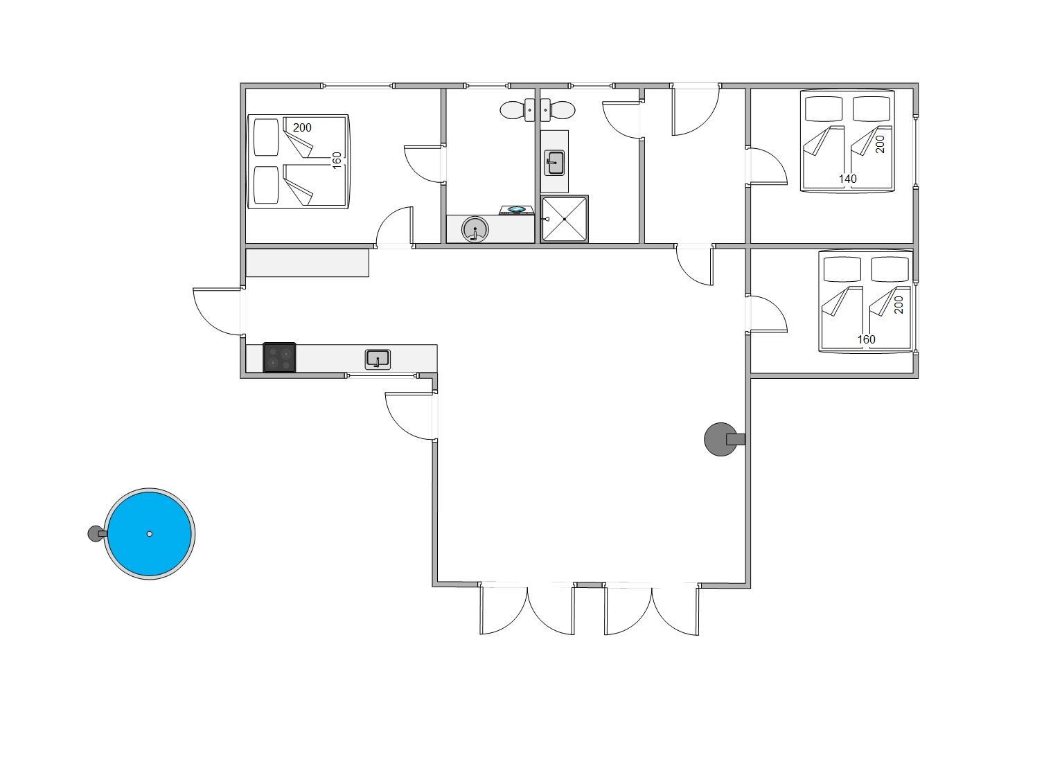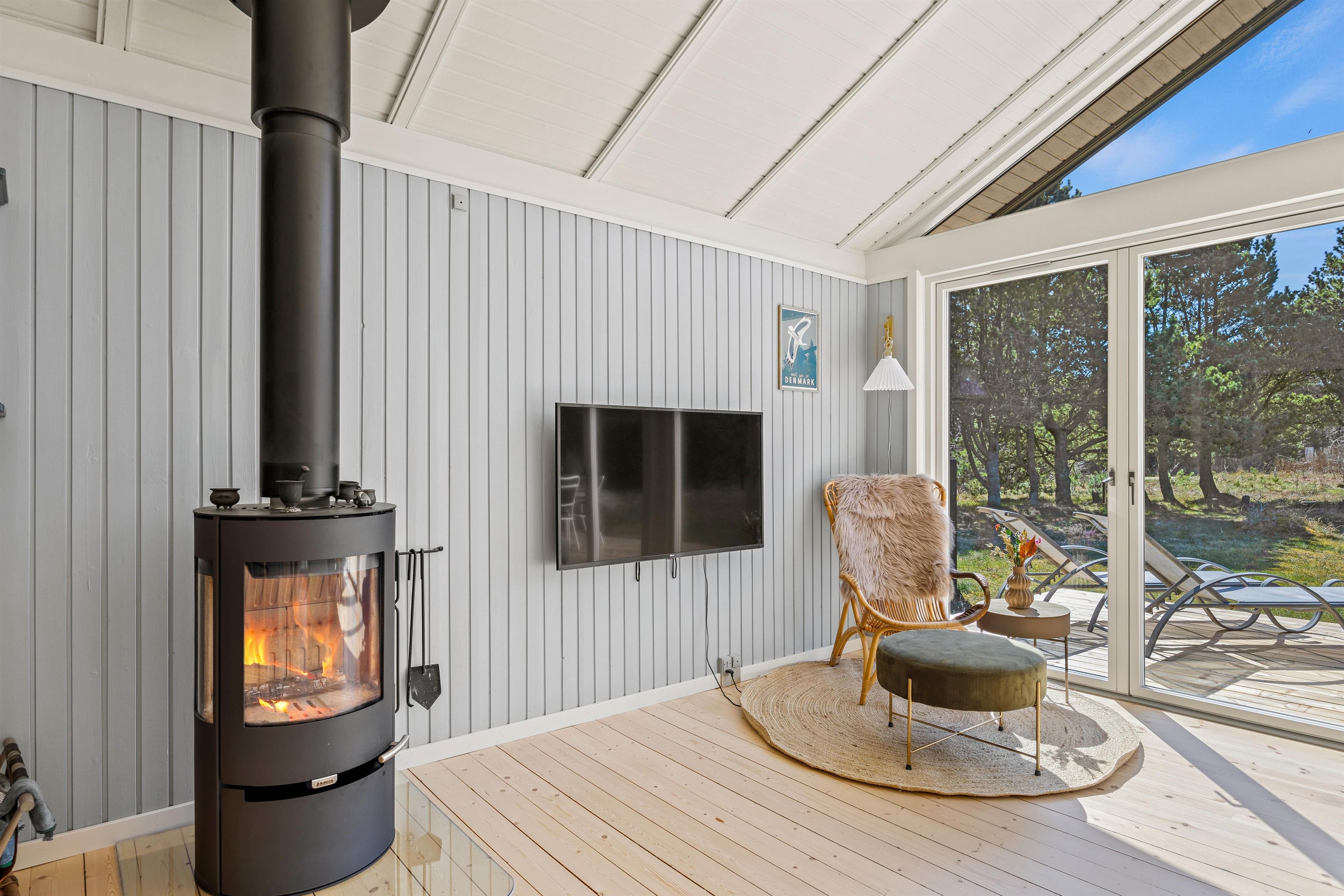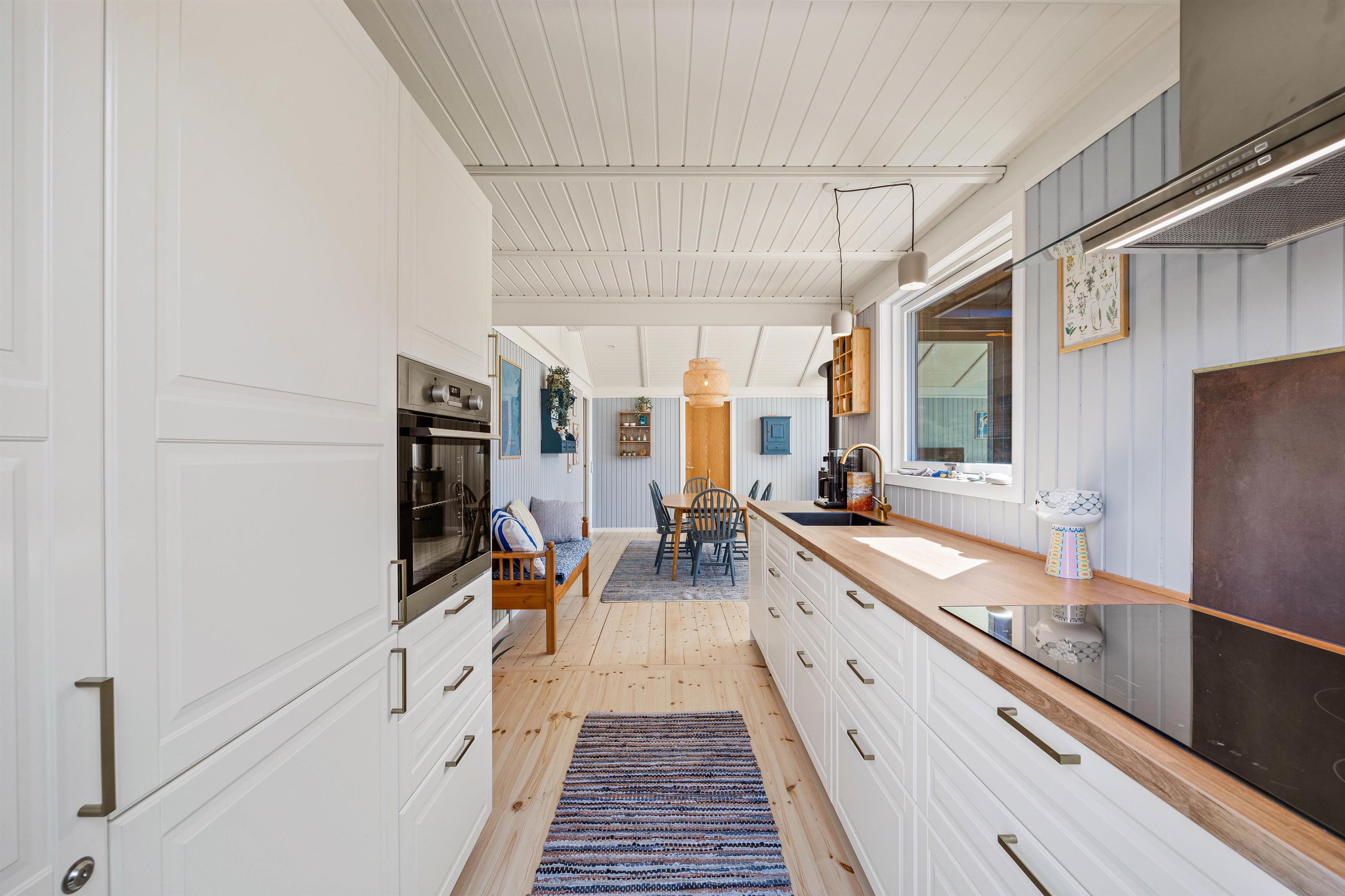 Kernen i dette feriehus er den hyggeligt indrettede stue i åben forbindelse med køkkenet. Køkkenet er udstyret med alt, hvad I behøver til feriens madlavning. Bliver det lidt køligt, så kan I tænde op i brændeovnen og mærke varmen brede sig i hele sommerhuset. Der er 3 soveværelser til jeres rådighed, hvor I kan få en god nats søvn efter en aktiv dag, så I kan starte næste dag veludhvilede. Det ene soveværelse har adgang til et lille toilet. Her finder I også vaskemaskinen, og der er i øvrigt indlagt gulvarme. Der er også et andet badeværelse i sommerhuset med bruser, toilet og gulvvarme, der ligger ved siden af ??de øvrige soveværelser.