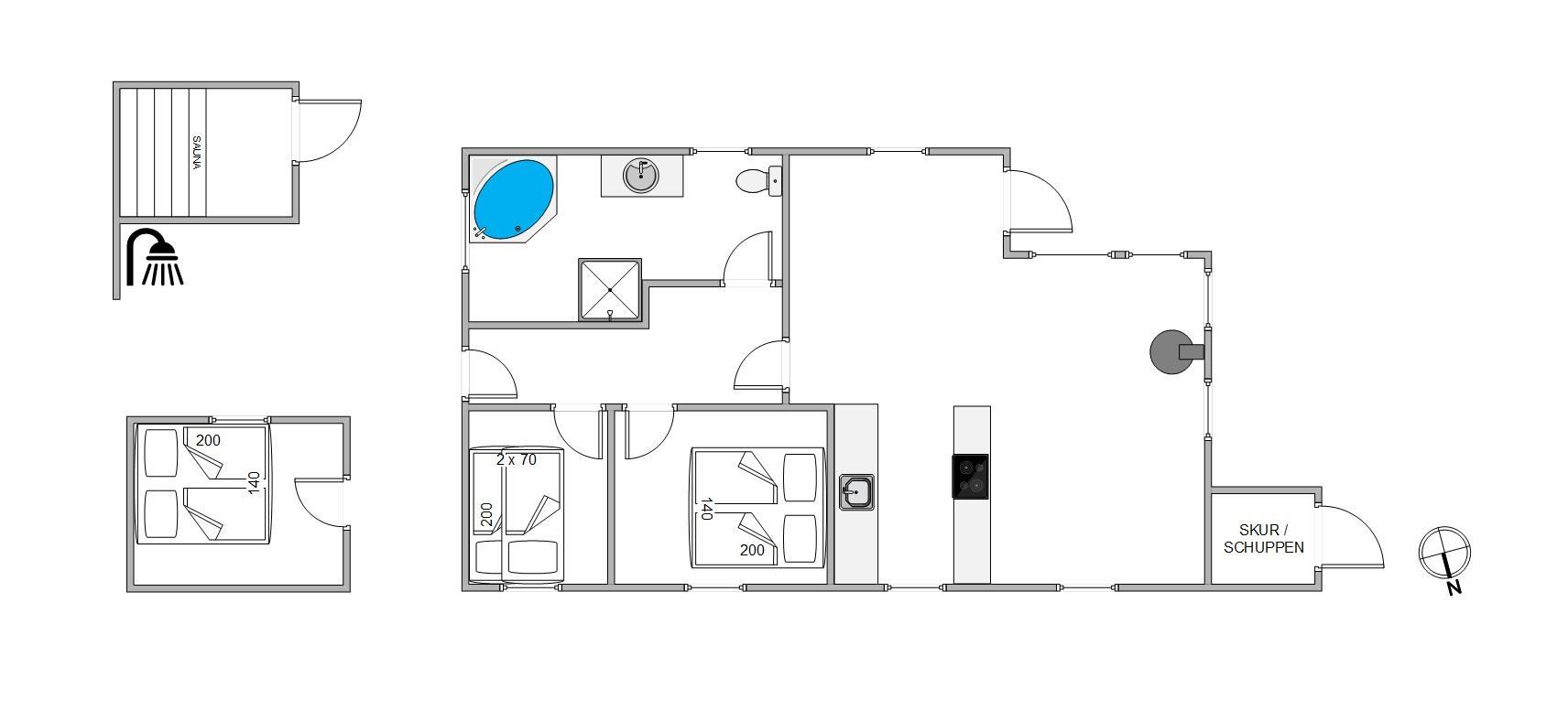 Huset er flot indrettet med en fin balance mellem den moderne stil og den traditionelle sommerhusstemning, i badeværelset finder I et spabad og udenfor er der både en lækker udesauna og udebruser, så I kan holde en ekstra luksuriøs ferie i skønne omgivelser.