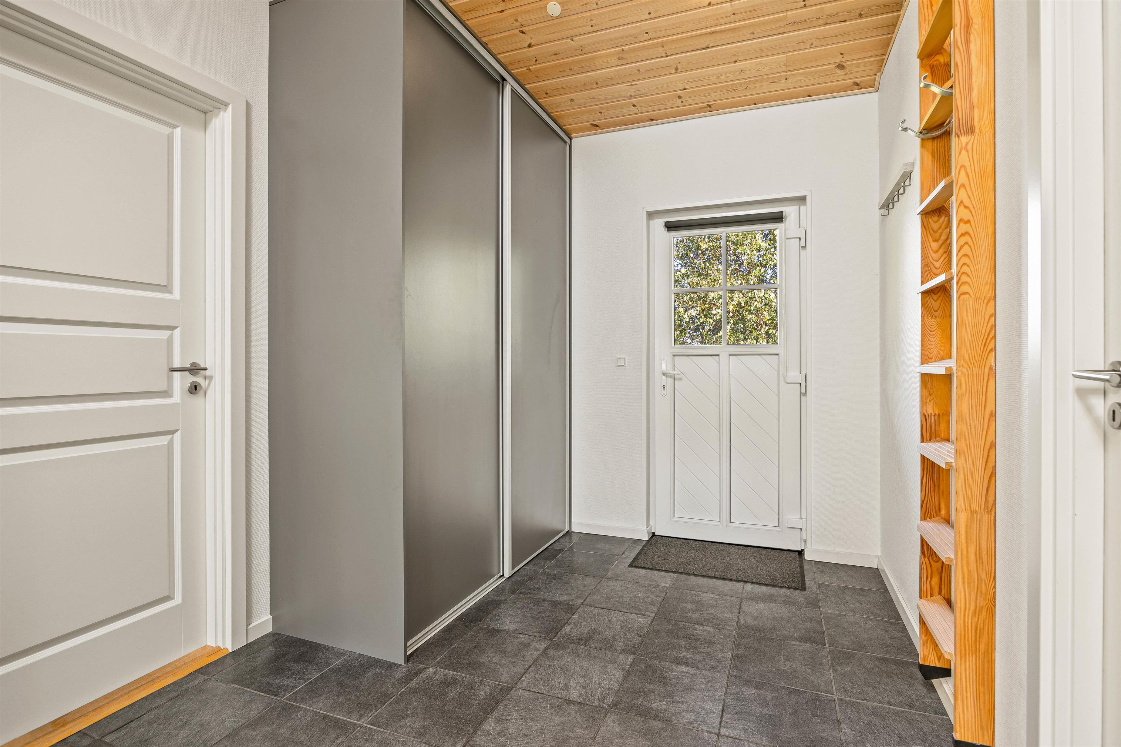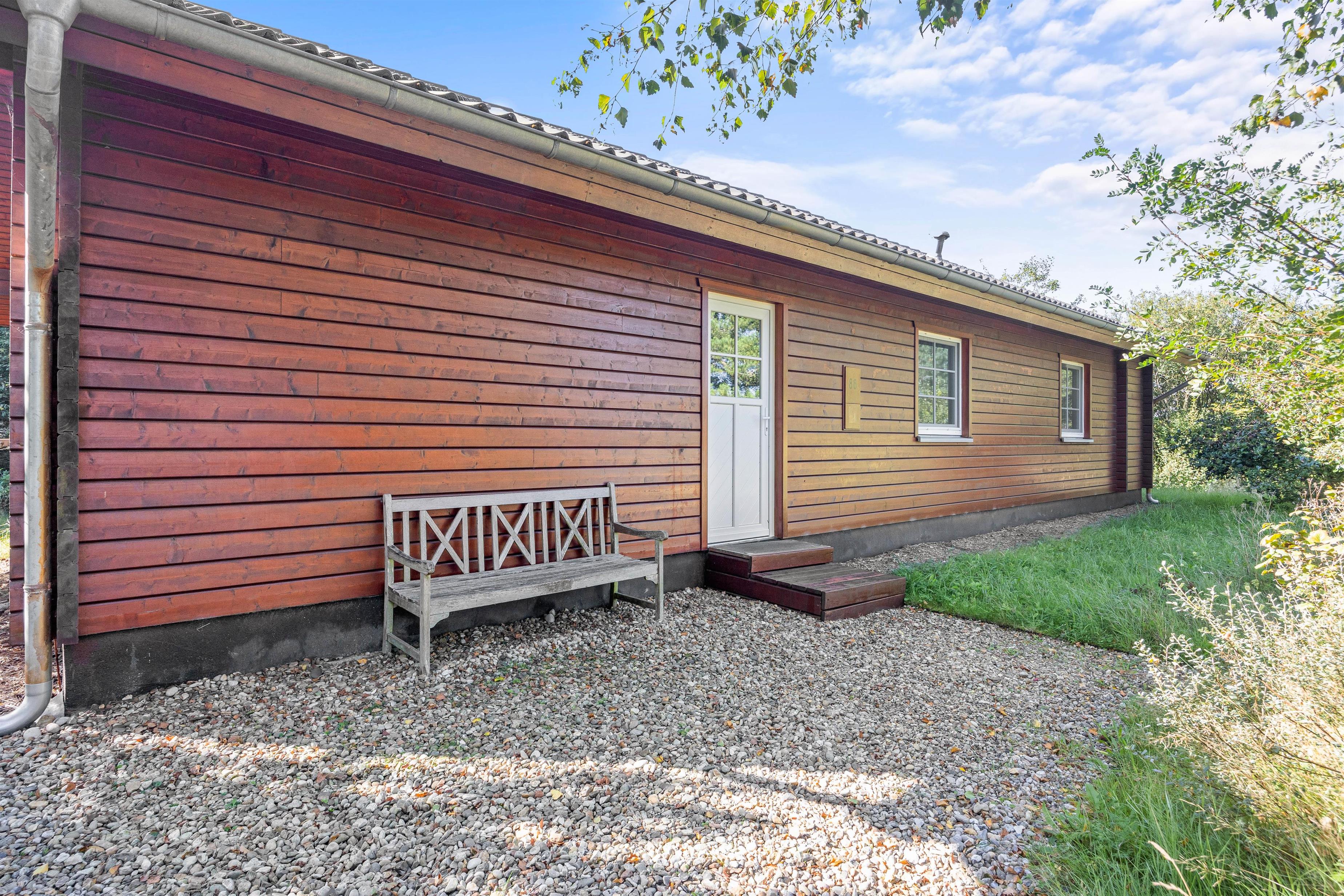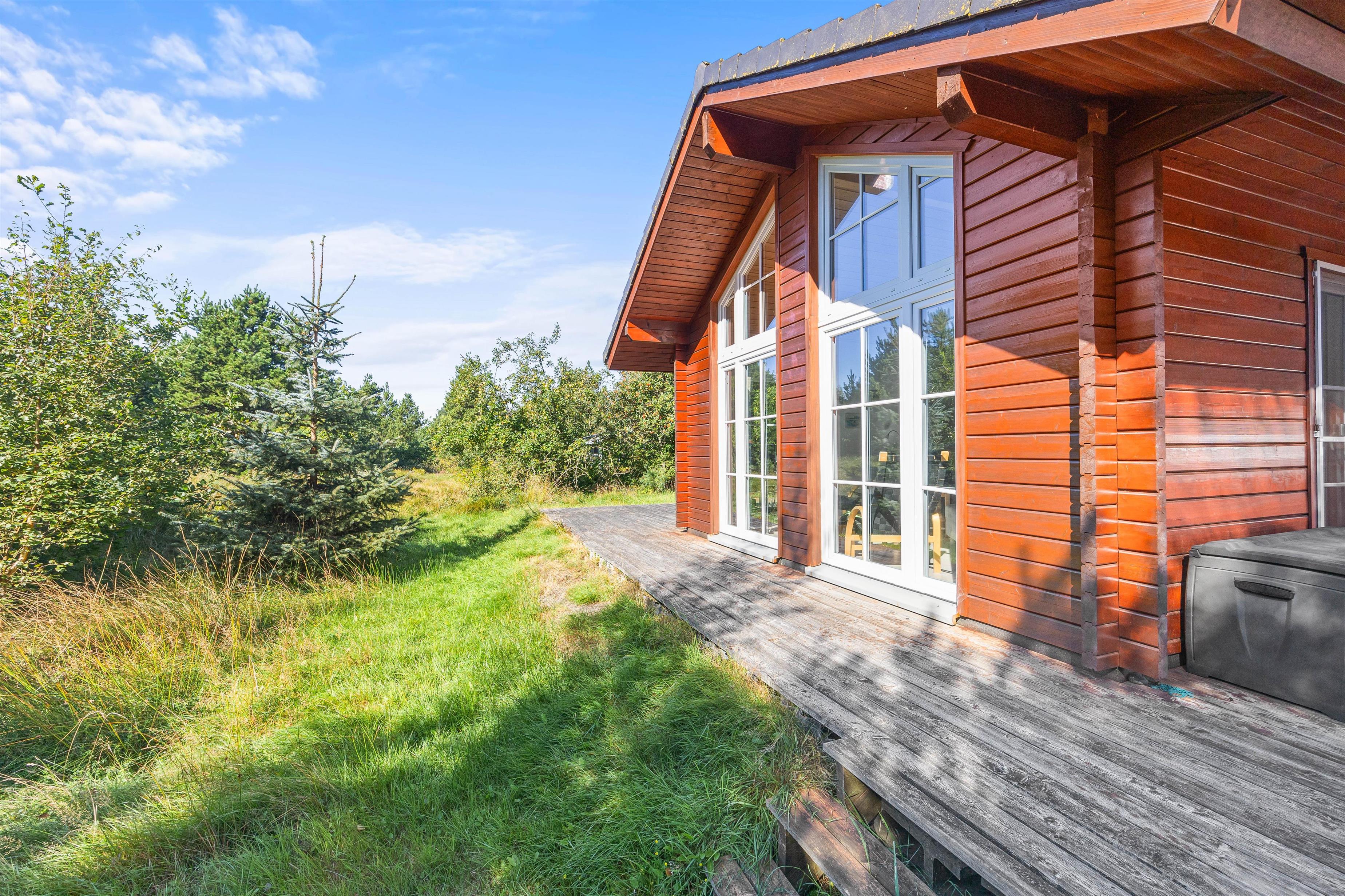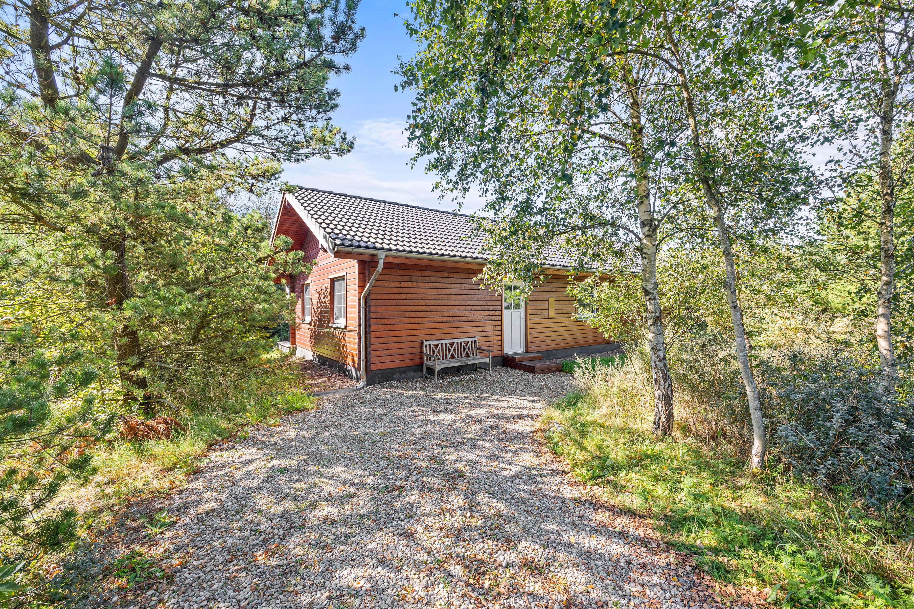 Beliggende på en blind vej og med en masse træer rundt på den 1300 kvadratmeter store naturgrund, kan I her nyde jeres ferie i fred og ro. Den åbne terrasse har også en overdækket del, så I kan nyde den friske luft i regnvejr, eller hvis I blot foretrækker skyggen. Der er også solvogne til de af jer, der ønsker at nyde solens varme stråler. Når dagen lakker mod enden og I er ved at være sultne, kan I tænde op i grillen på terrassen, og tilberede et lækkert feriemåltid.