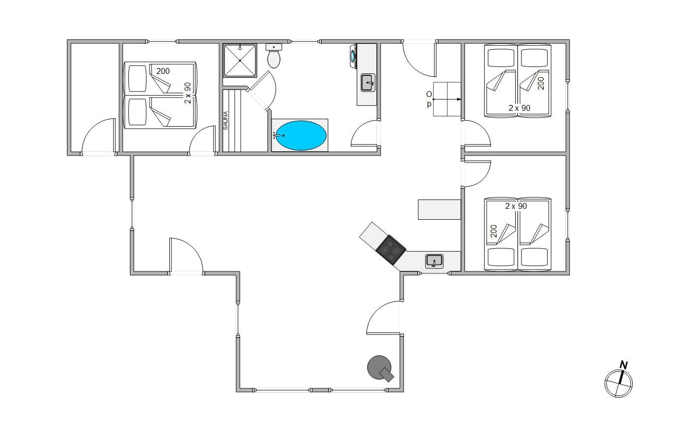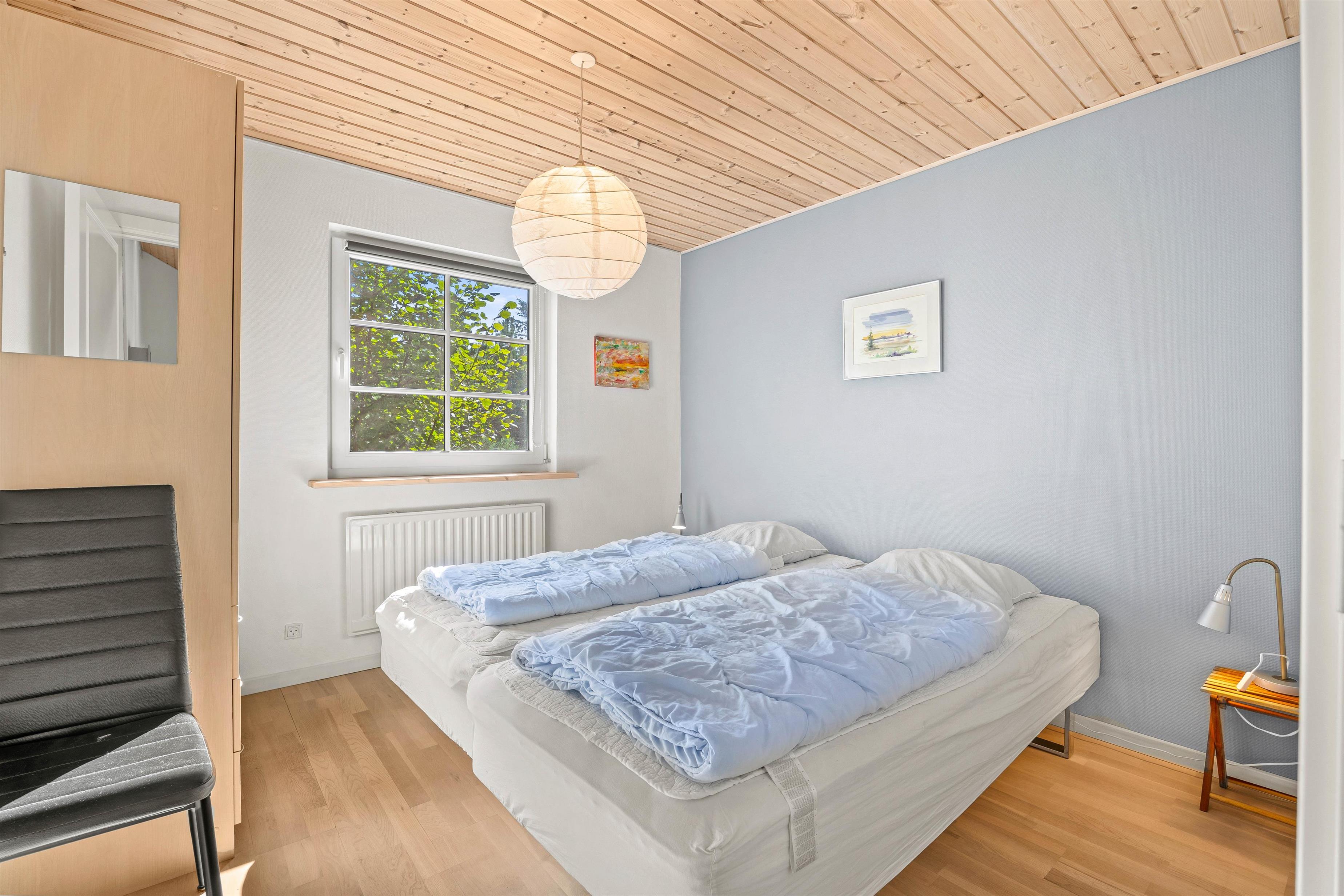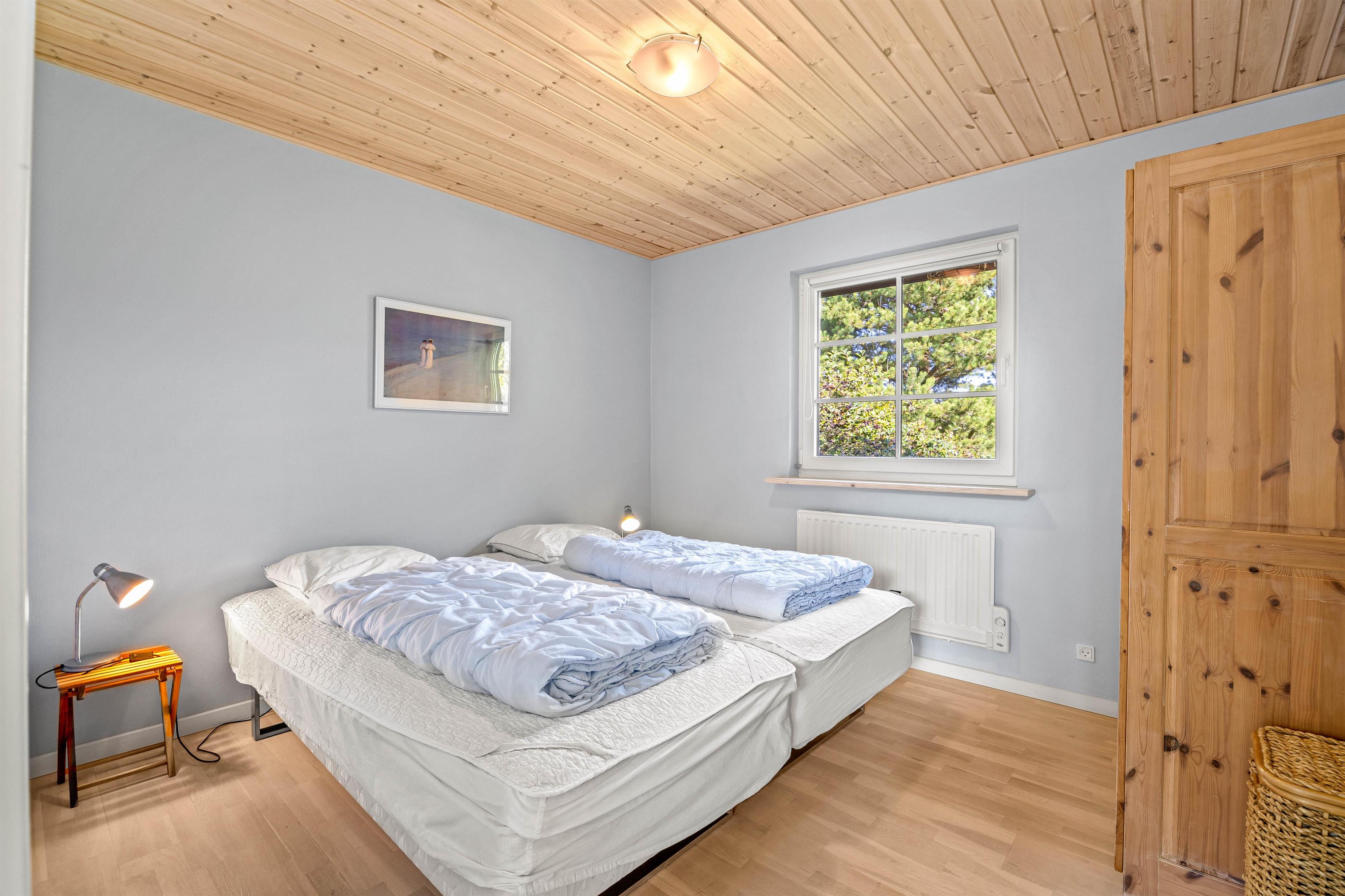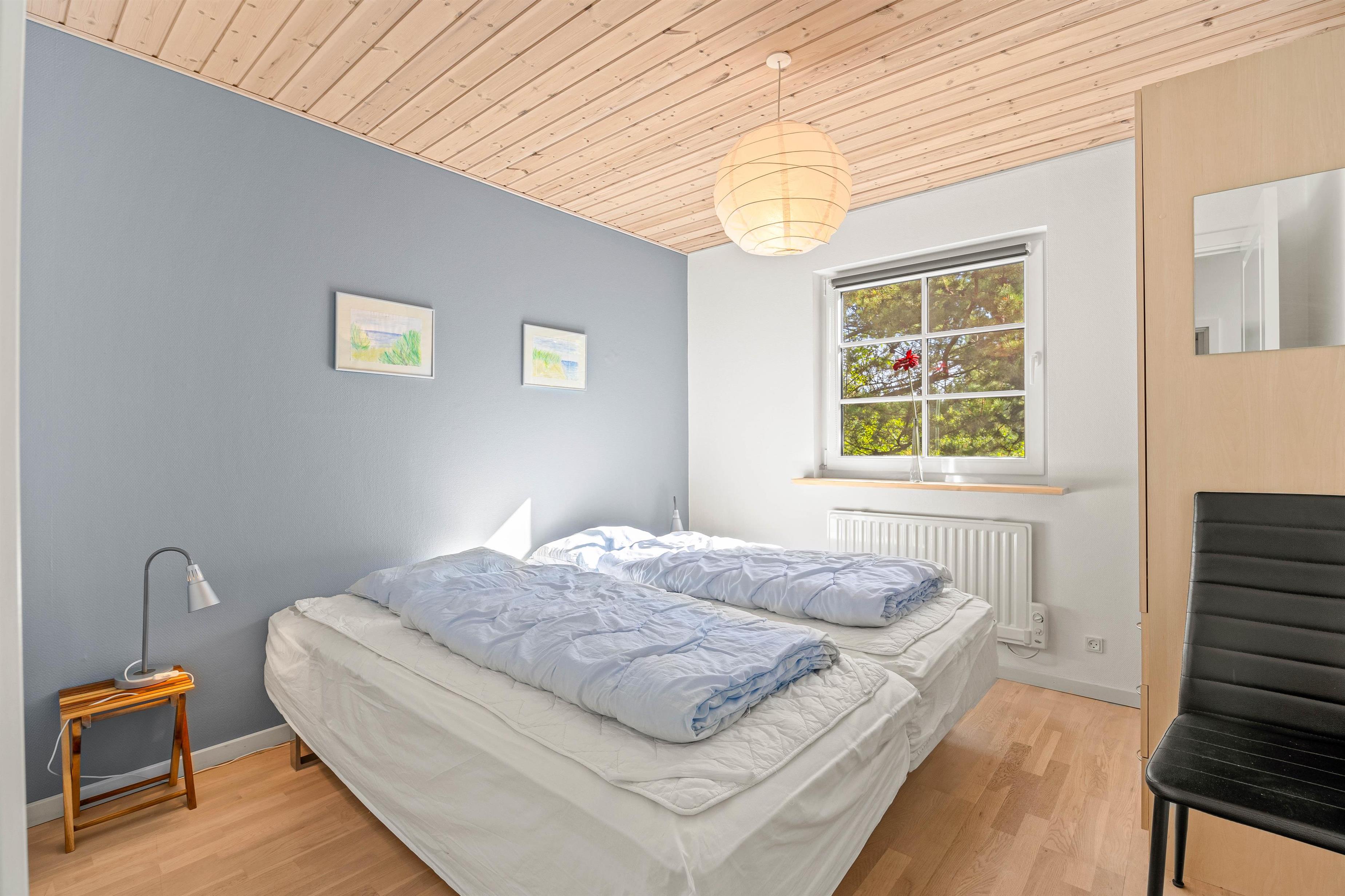 Ferieboligen har 3 værelser, hvor der er to sammensatte enkeltsenge i hvert rum. Dertil er der også en hems, som især feriens yngste gæster vil elske. Det store badeværelse er hvor I finder spaen og saunaen. Her kan I komme helt ned i gear og virkelig nyde jeres velfortjente ferie.