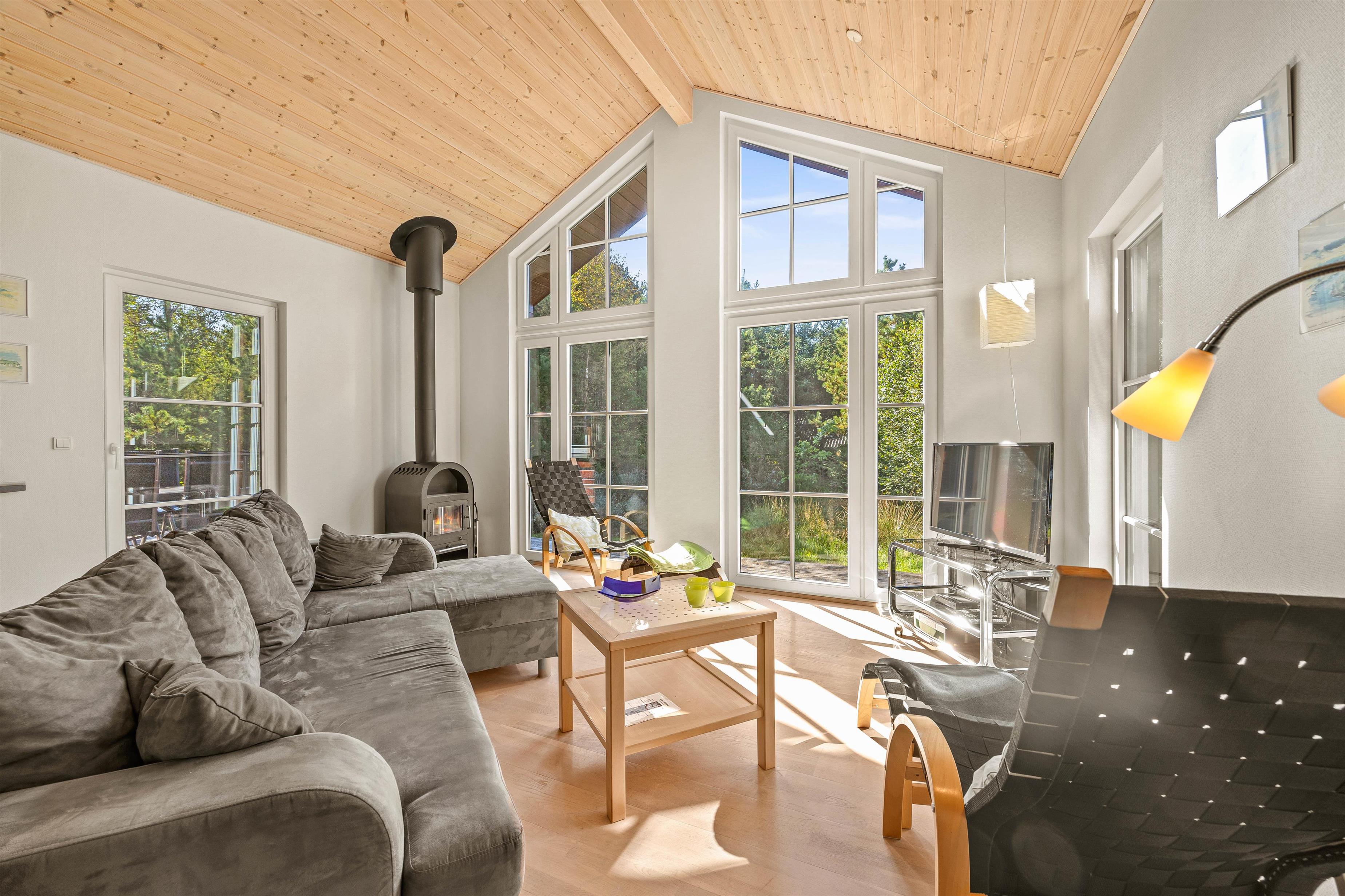 På de køligere aftner kan I lægge noget træ i brændeovnen og nyde varmen fra de knitrende flammer, mens I ser en god film, eller finder vinderen af dette års brætspilsturnering. Udover brændeovnen er der en energivenlig varmepumpe i feriehuset, der sørger for et godt indeklima.