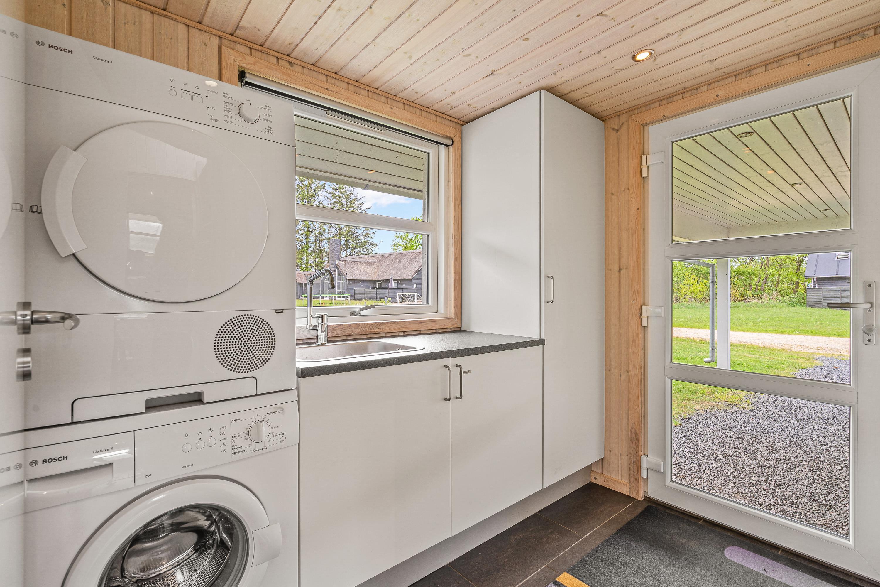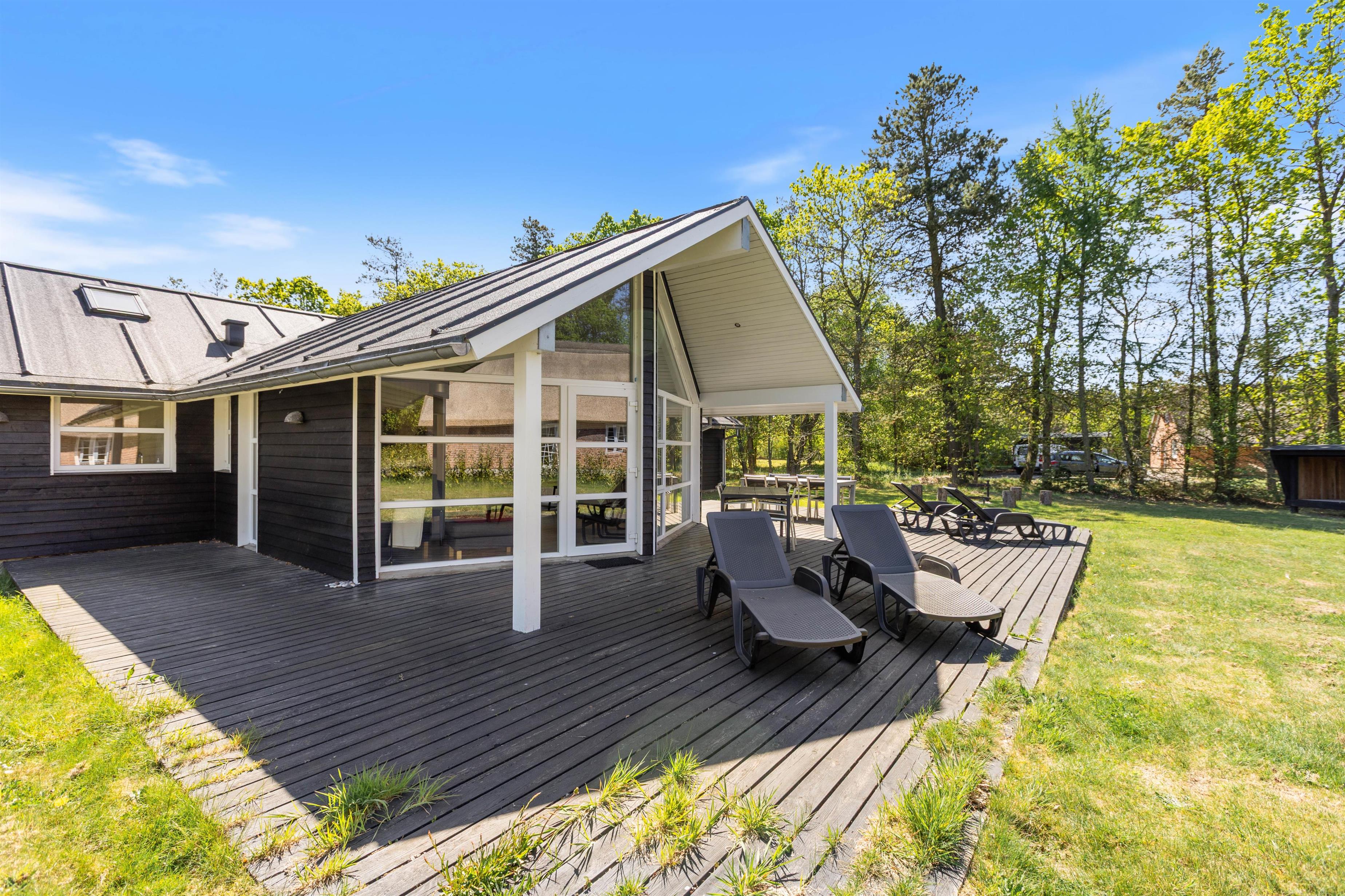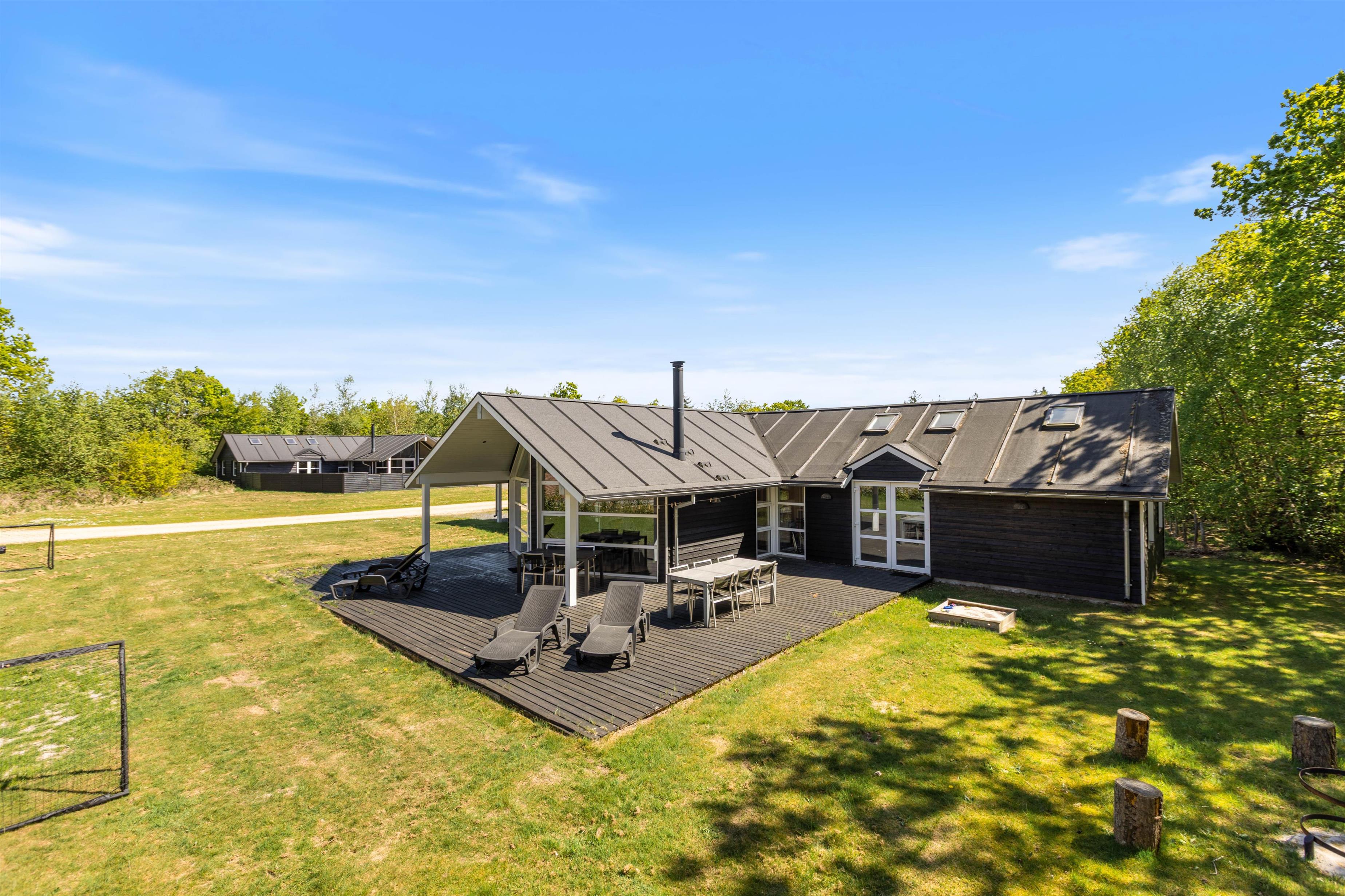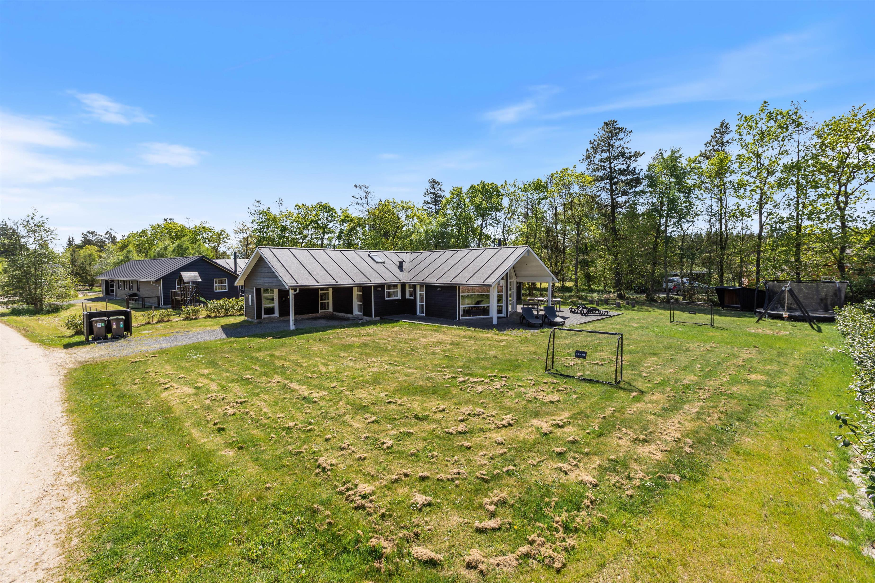 Til feriens yngste er der en mindre legeplads i form af gyngestativ, sandkasse og trampolin, som de kan få glæde af på jeres ferie. Mens de leger i haven, kan I andre slappe af på terrassen, der er delvist overdækket. Når aftenen nærmer sig, kan I tænde op i grillen og samle hele ferieflokken til en lækker middag på terrassen.