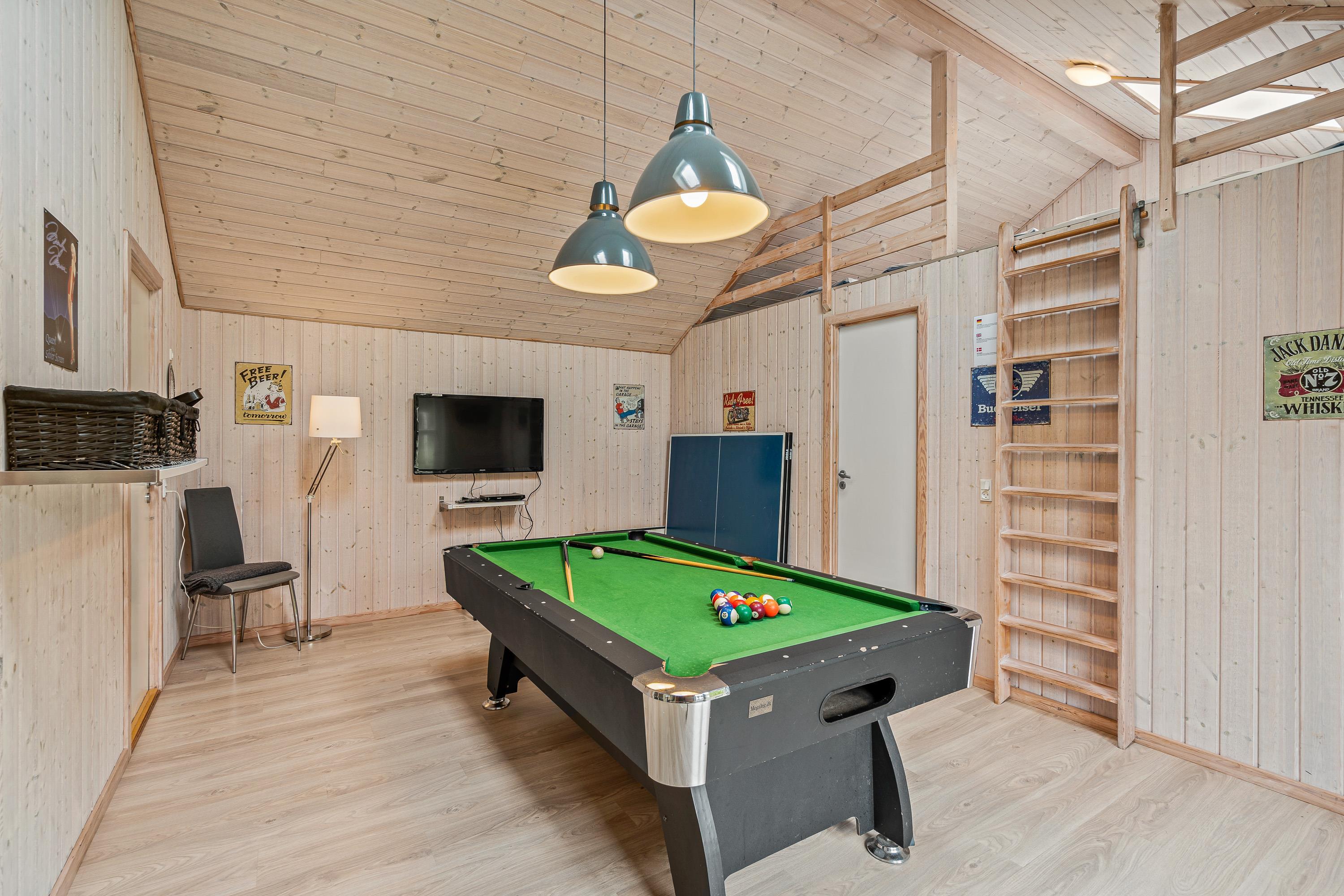 Når der skal være gang i den, kan I søge mod sommerhusets aktivitetsrum, hvor I har mulighed for at spille både billard og bordtennis. Måske I endda skal have arrangeret en sjov spilaften, hvor I afholder en trekamp for at finde ud af, hvem der er feriens helt stor mester i billard, bordtennis og dart.