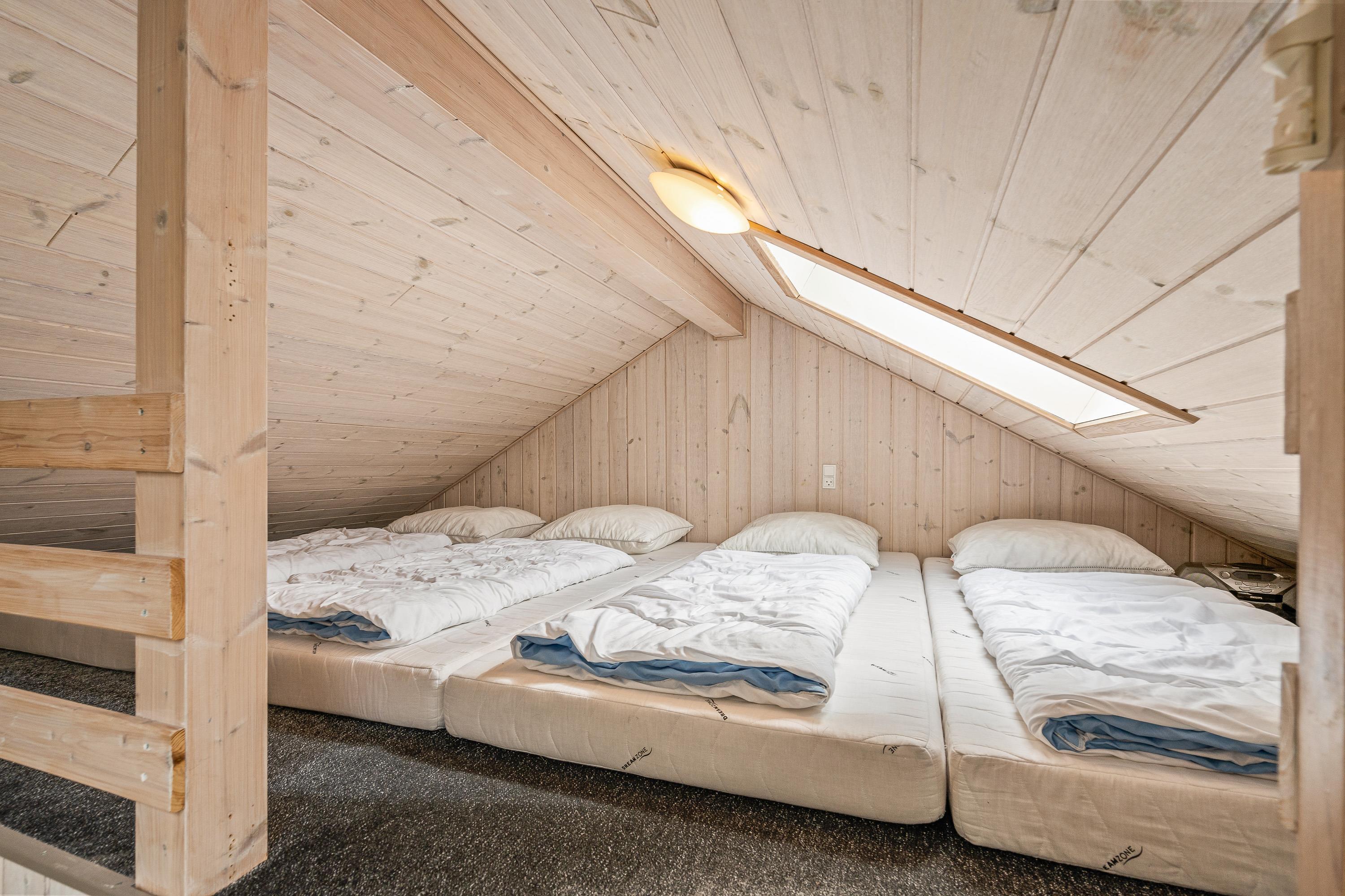 I sommerhuset har I 4 gode soveværelser, der alle er indrettet med dobbeltsenge, som I kan samle ny energi til ferien i. Derudover er der 2 hemser i feriehuset, på den ene hems finder i 4 madrasser, og på den anden hems er der dobbeltmadrasser.