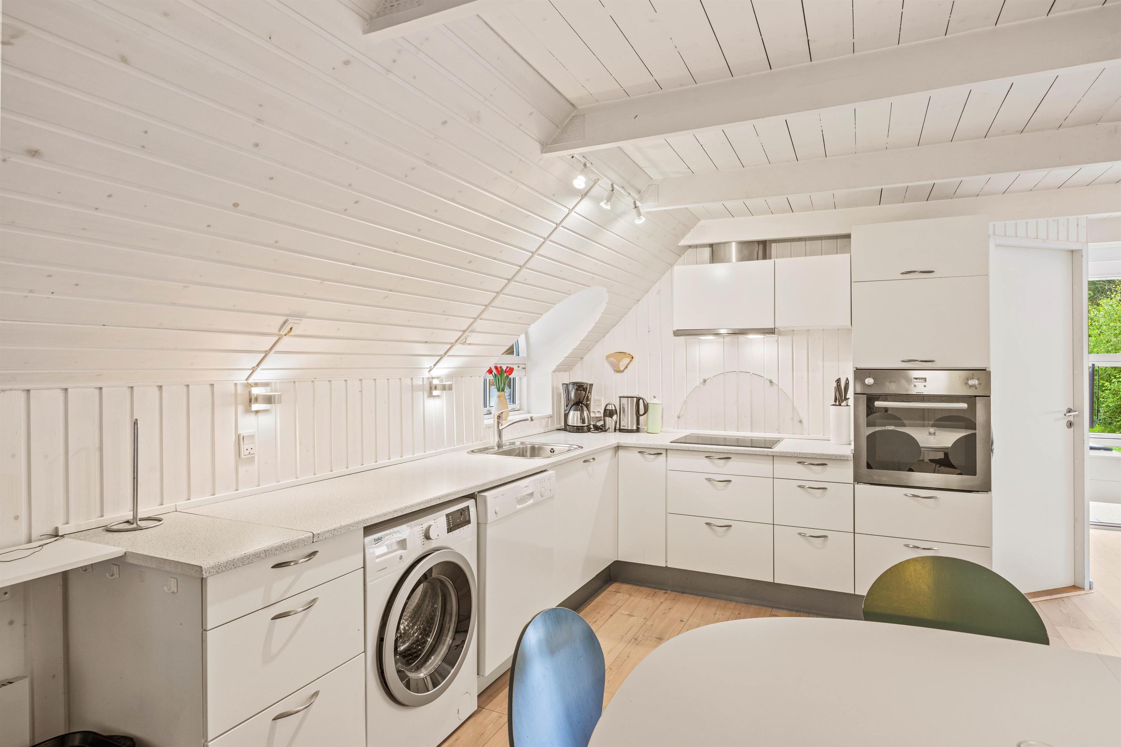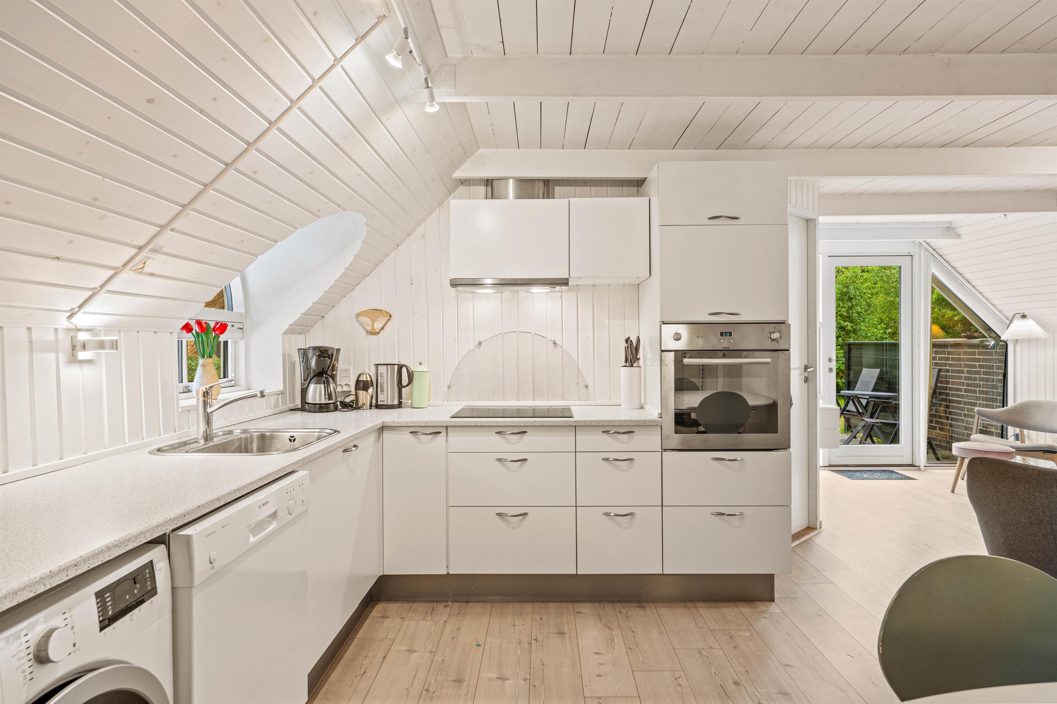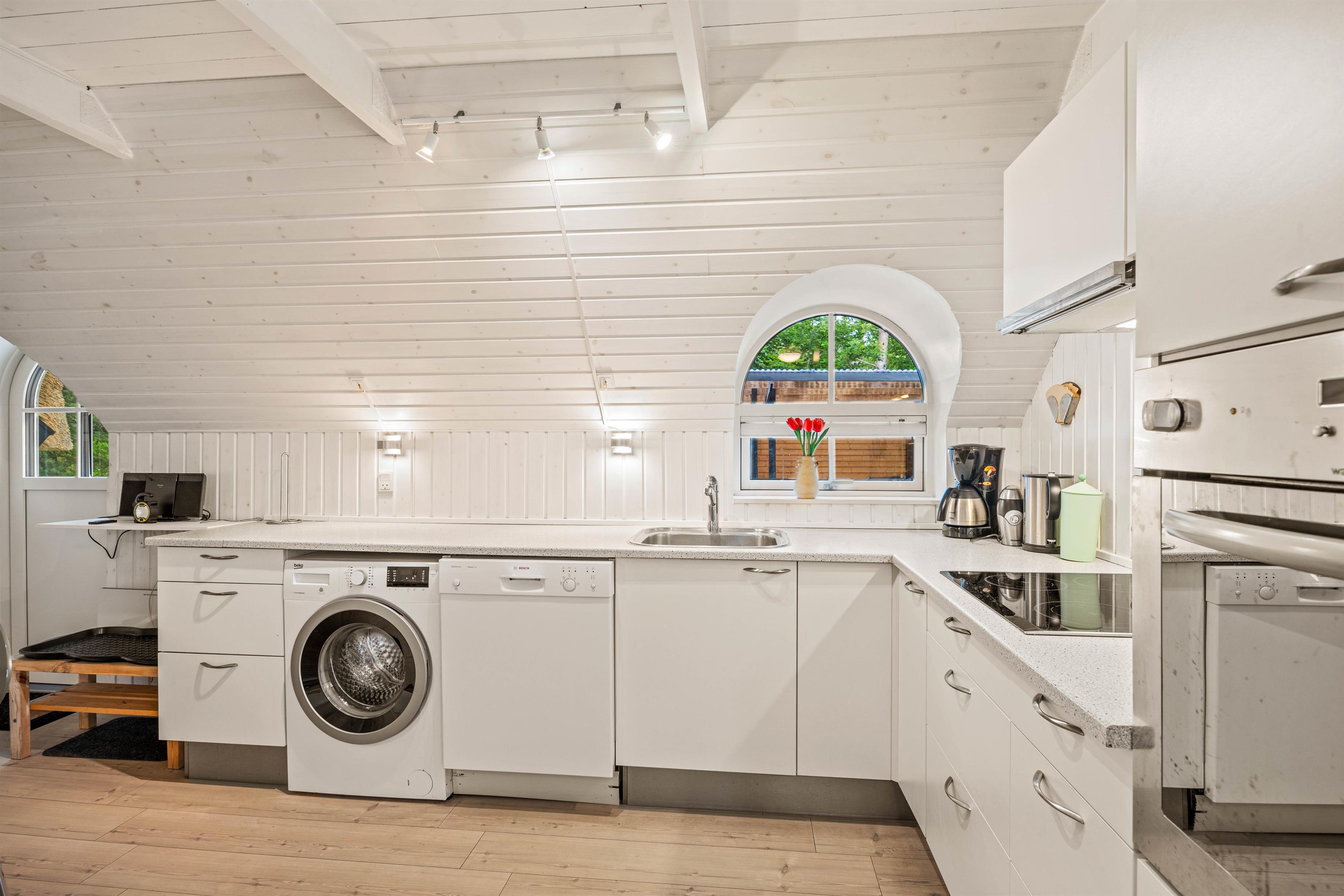 Det store køkken er udstyret med alt, hvad ferien behøver, og her kan der tilberedes et lækkert aftenmåltid eller brygges en god kop kaffe til morgenmaden. Her finder I også en opvaskemaskine, som vil klare det praktiske arbejde for jer, og med den energibesparende varmepumpe bliver der lidt ekstra til overs til softice og spændende udflugter til de nærliggende ferieområder.