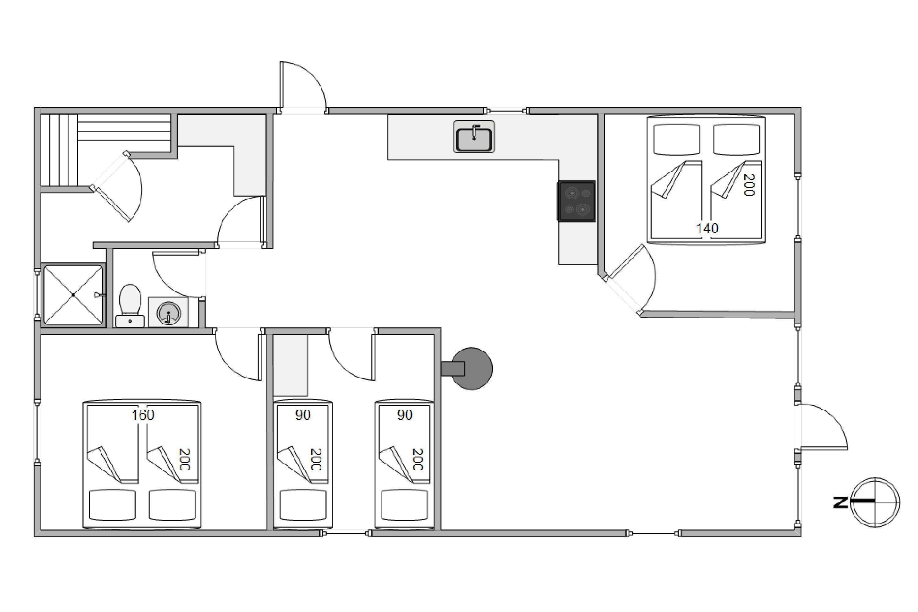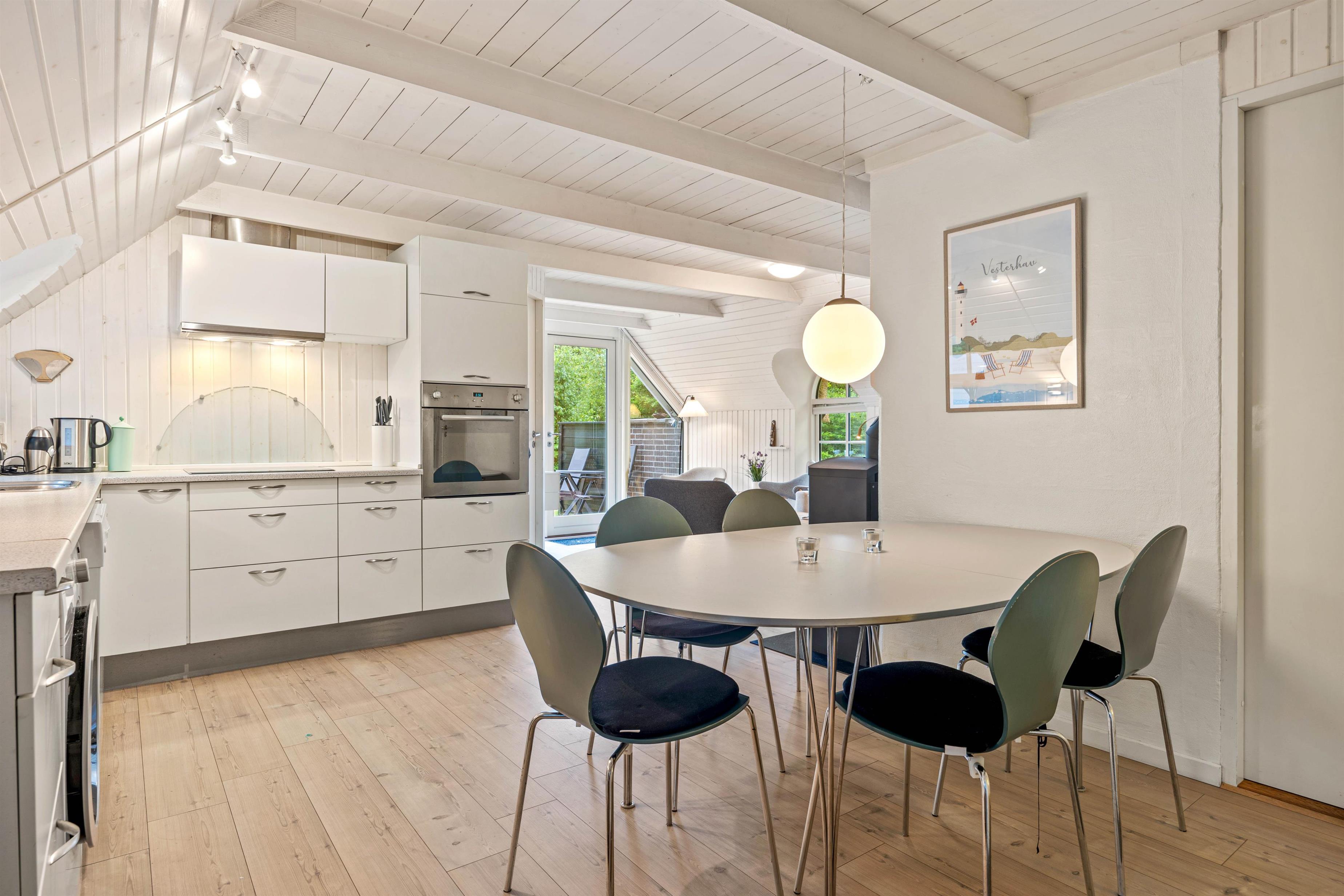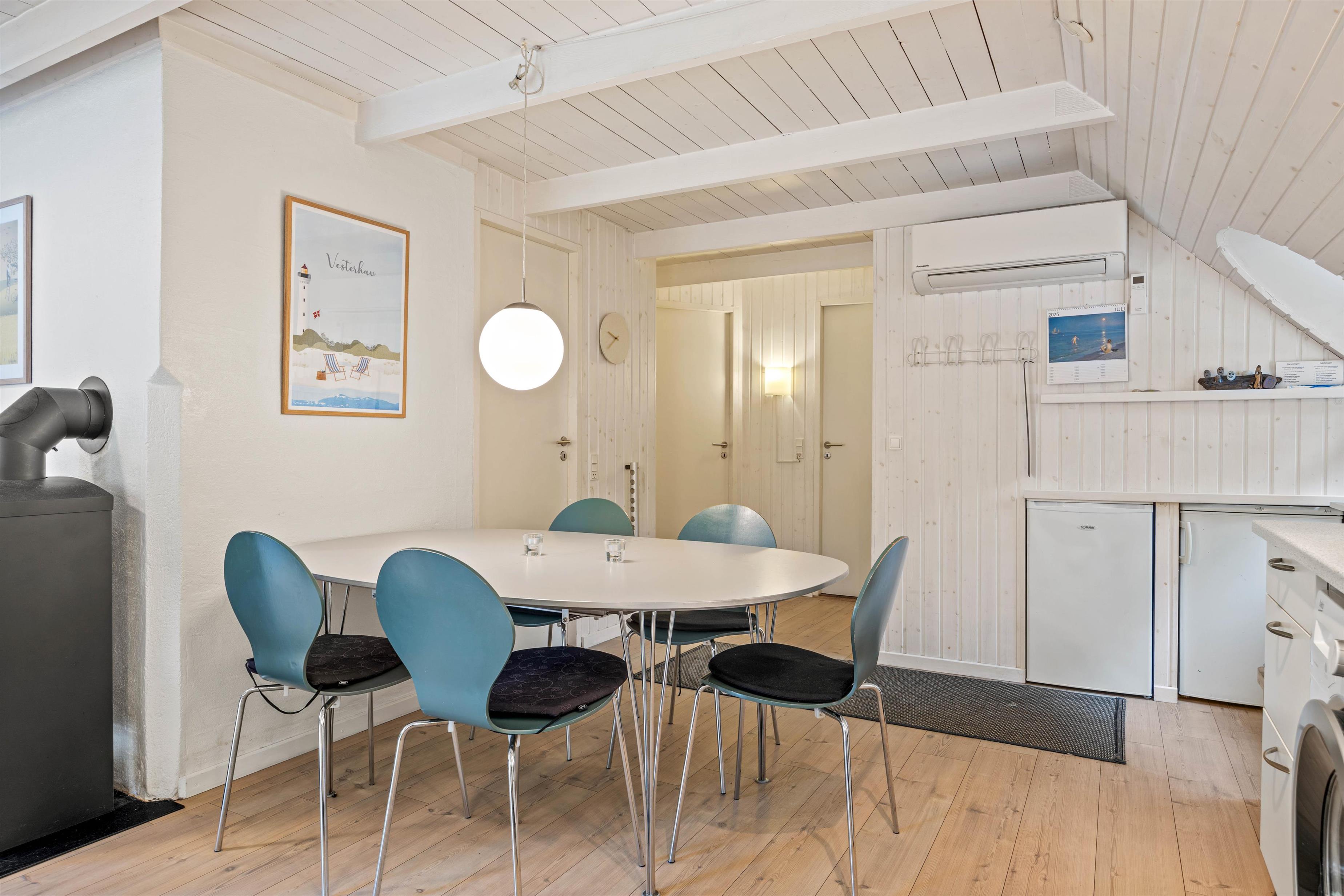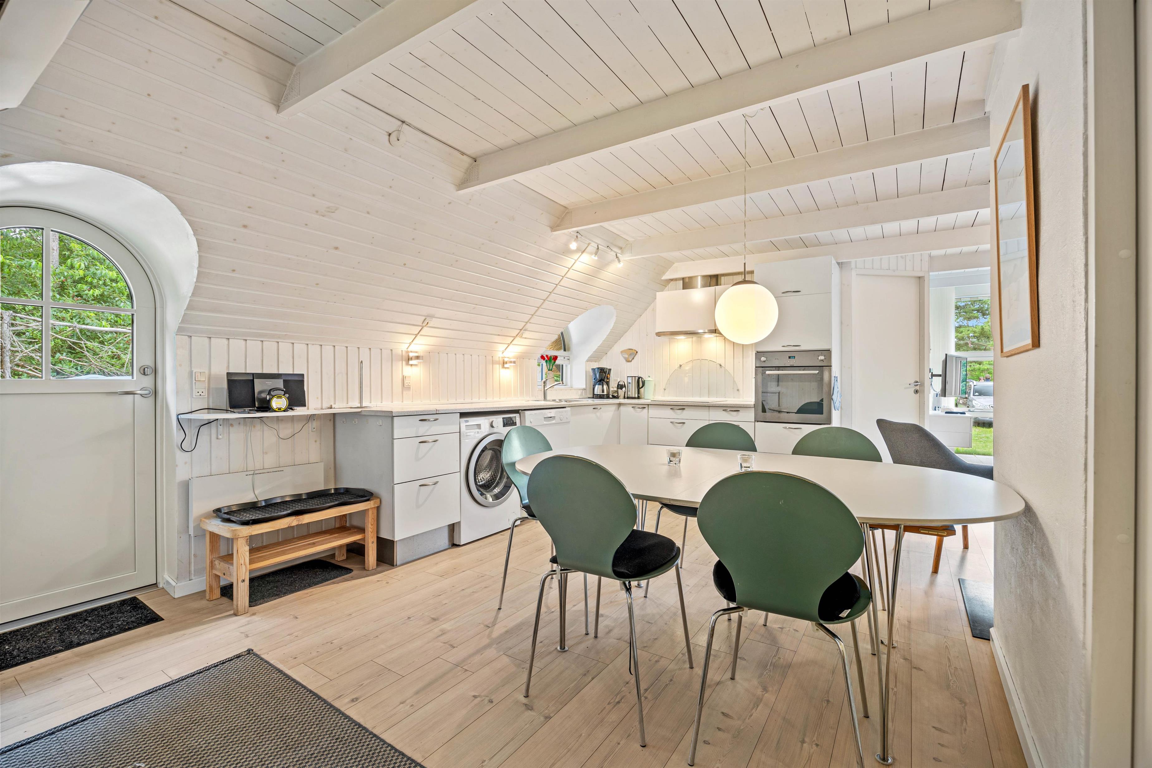 Det store køkken er udstyret med alt, hvad ferien behøver, og her kan der tilberedes et lækkert aftenmåltid eller brygges en god kop kaffe til morgenmaden. Her finder I også en opvaskemaskine, som vil klare det praktiske arbejde for jer, og med den energibesparende varmepumpe bliver der lidt ekstra til overs til softice og spændende udflugter til de nærliggende ferieområder.