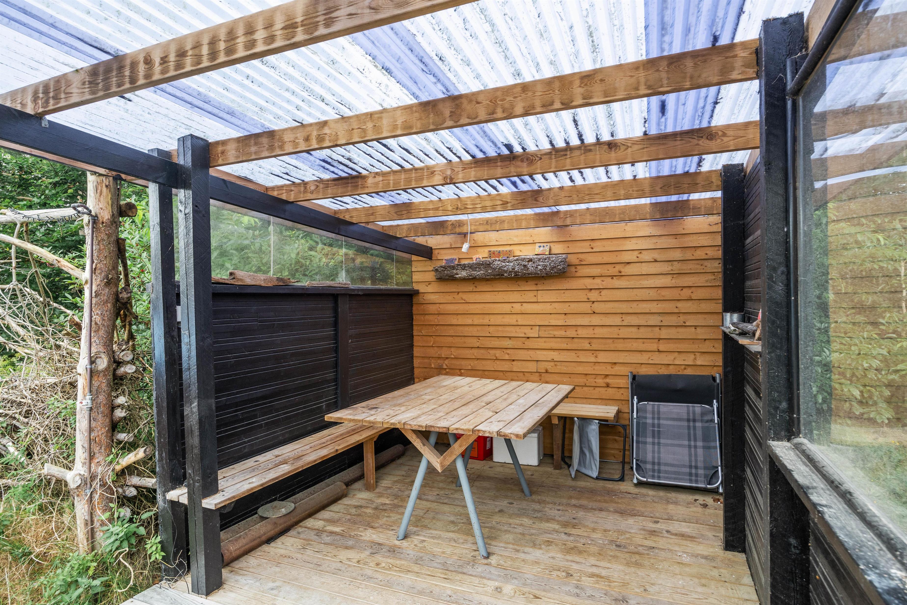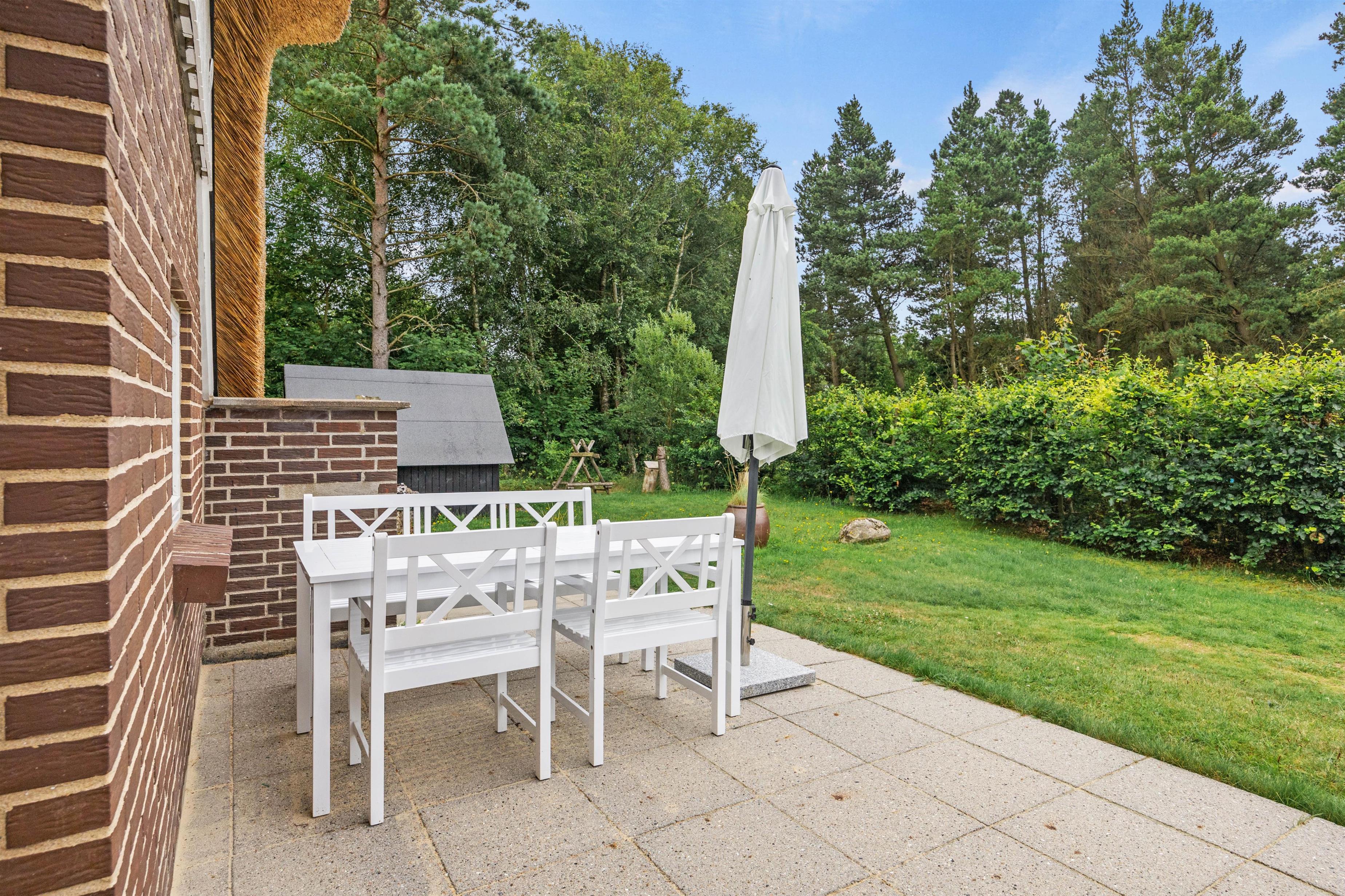 På den gode terrasse er der masser af mulighed for at nyde den friske luft og de flotte omgivelser, og her står både liggestole og havemøbler klar til jer, så I på bedste vis kan nyde de fredfyldte naturomgivelser, ligesom alt står klar til en grillaften eller en lækker morgenmad i dagens første solstråler.