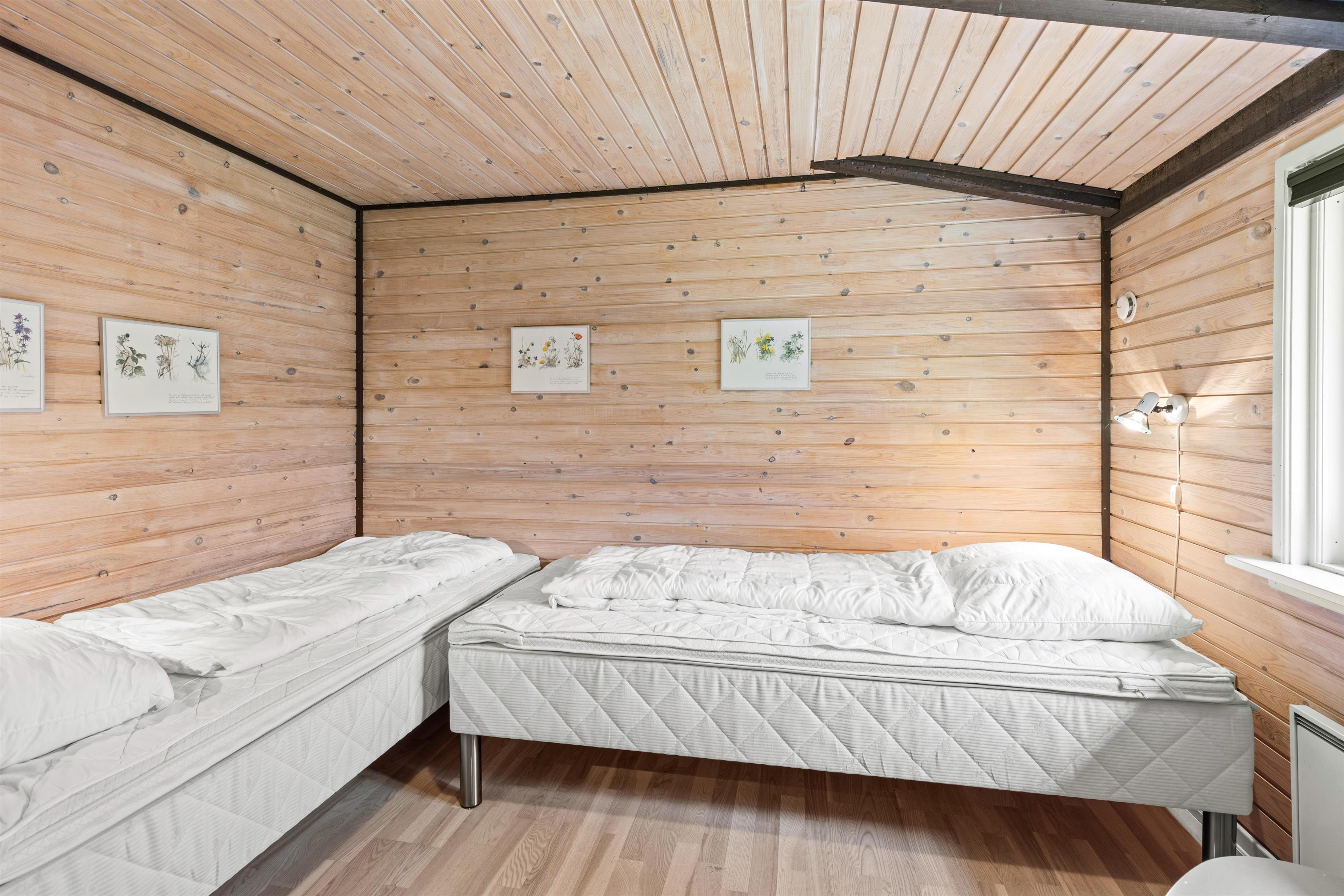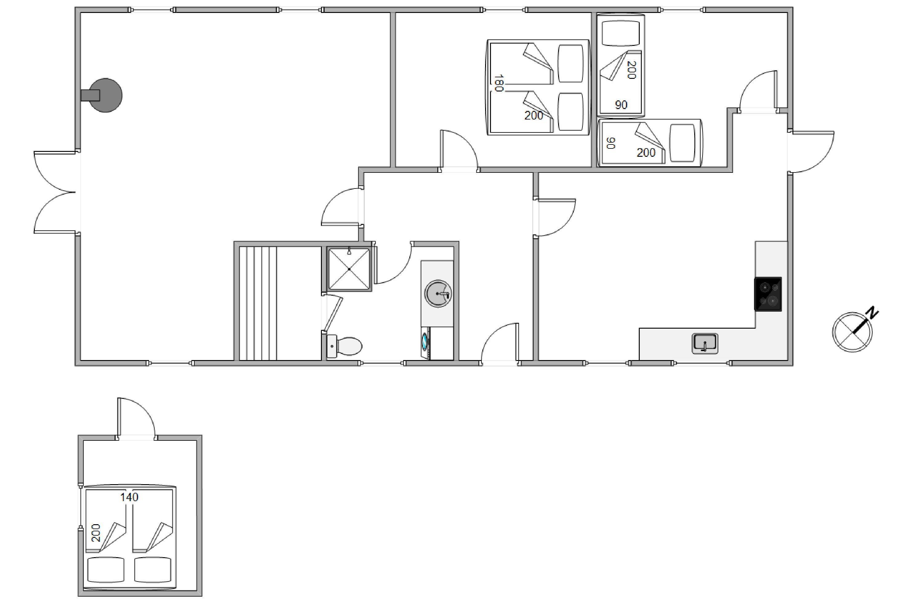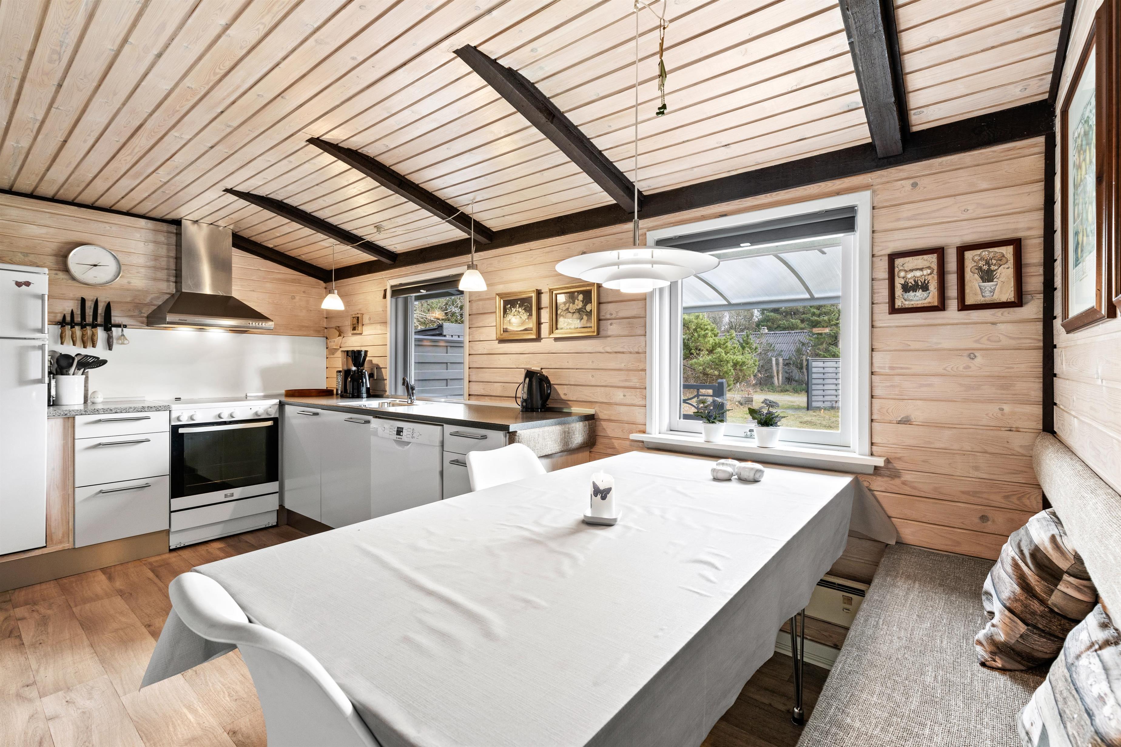 Sommerhuset står lyst og indbydende og inviterer jer indenfor til en afslappende ferie. I det separate og veludstyrede køkken kan I let tilberede lækre måltider til familien, hvorefter I kan samles rundt om spisebordet til både middag og hyggelige brætspil. Stuen er indrettet med bløde sofamøbler, hvor I kan slappe af og nyde varmen fra brændeovnen, der skaber en dejlig hyggestemning på kølige aftener.