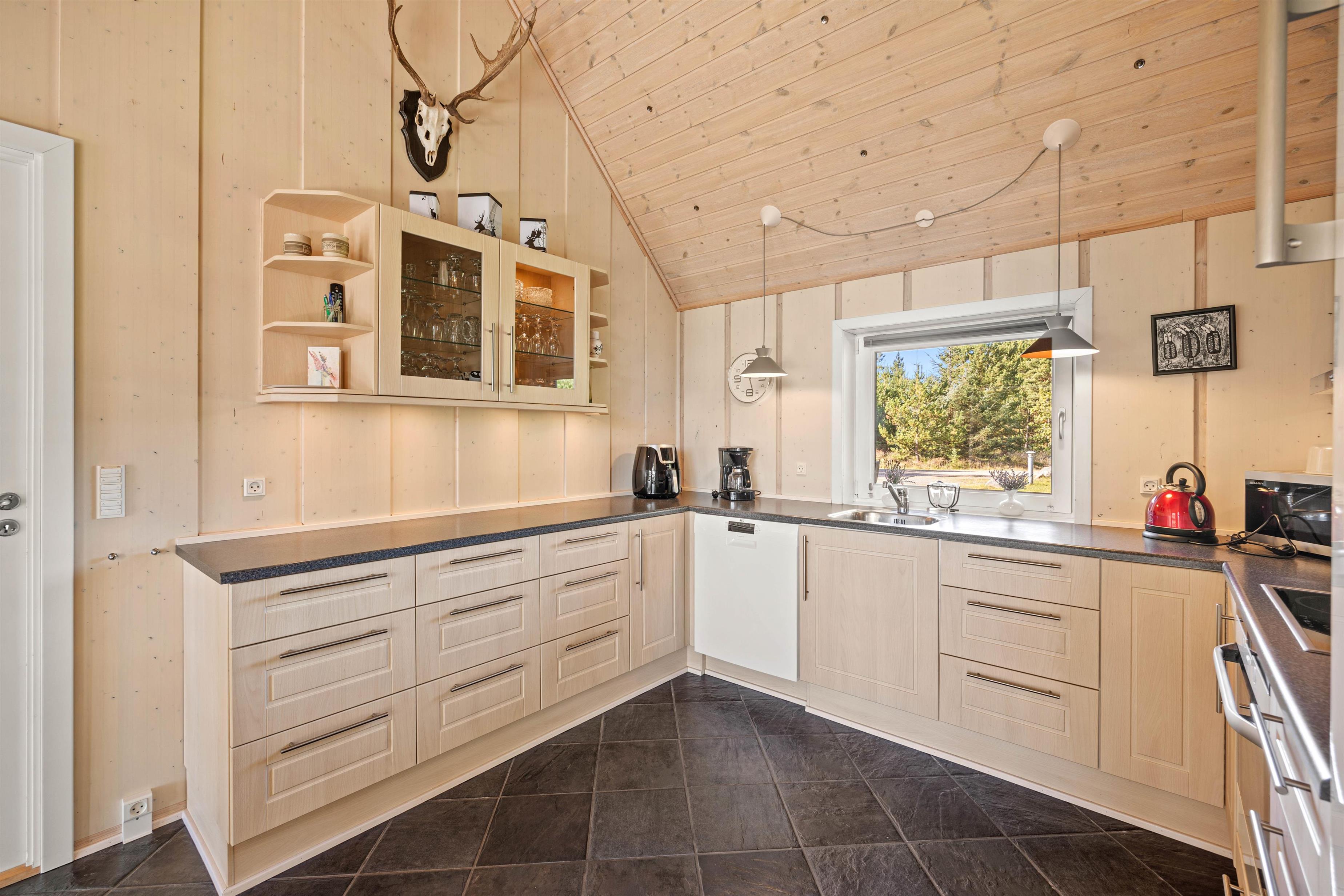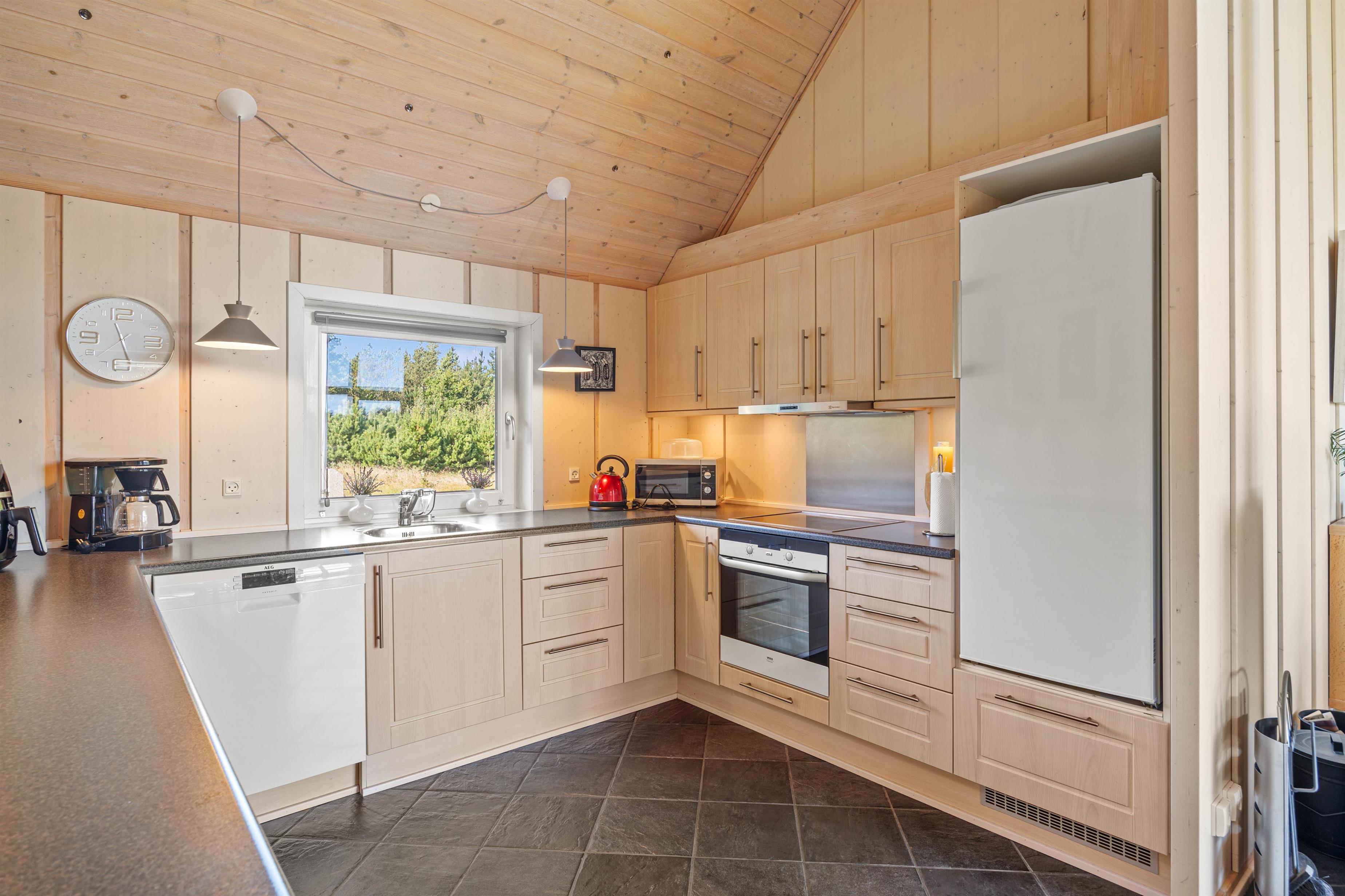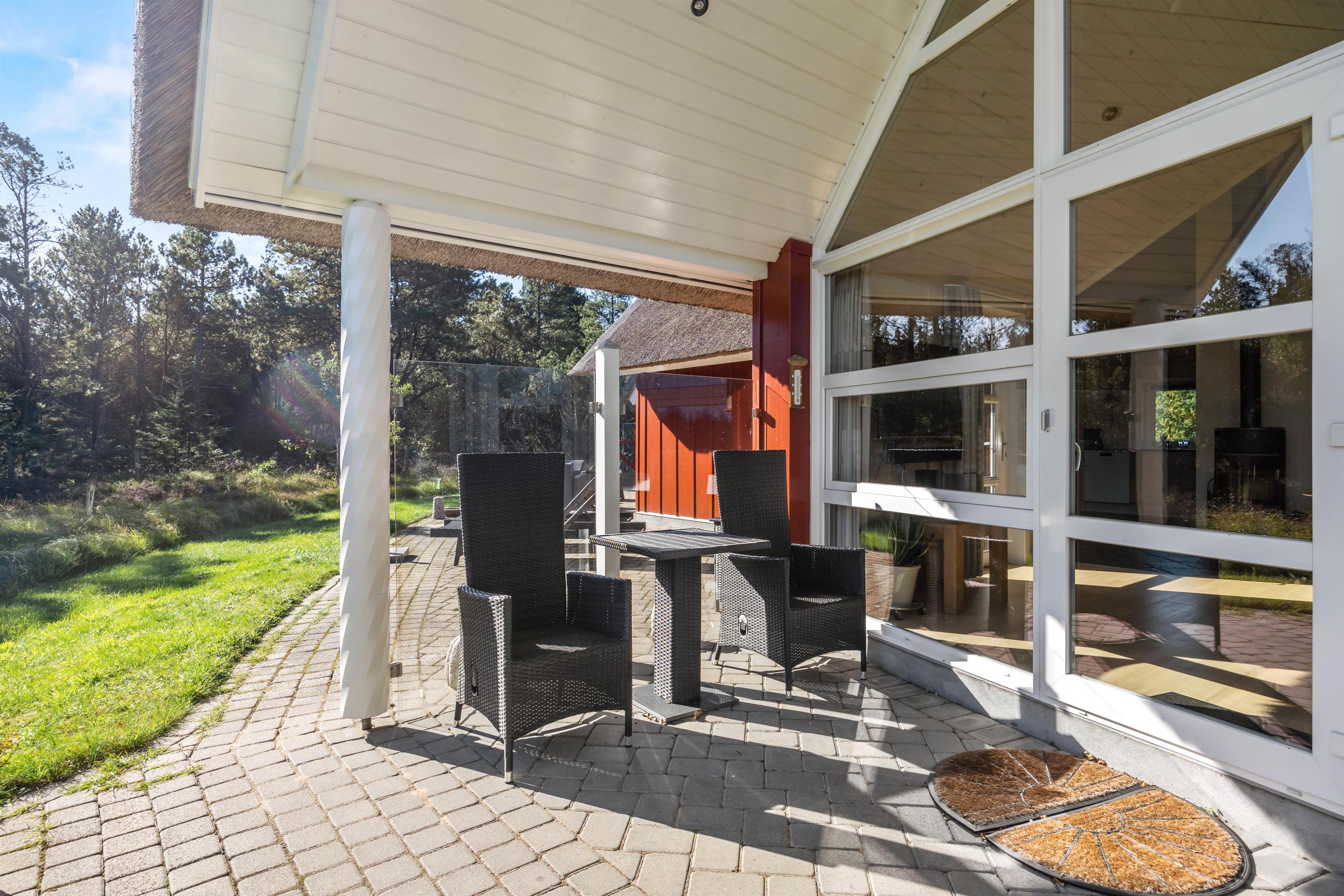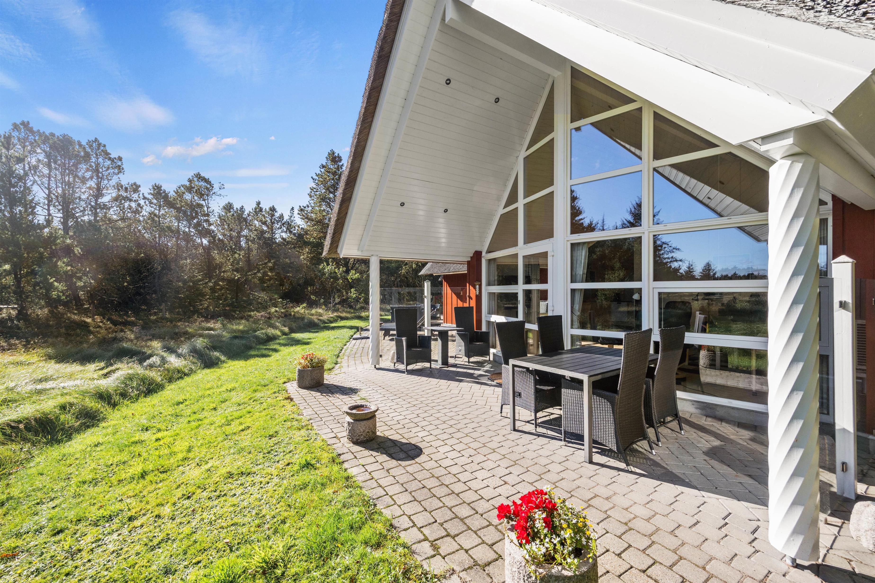 Helt igennem gennemført i sin stil, er dette feriehuset til dig, der drømmer om en luksuriøs afslapningsferie fjern fra byens uro. Allerede ved ankomsten kan du mærke forskellen til de typiske feriehuse – her har du en rummelig entre og plads til sko og jakker og i husets gæste-wcét står både vaskemaskine og tørretumbler til din rådighed.