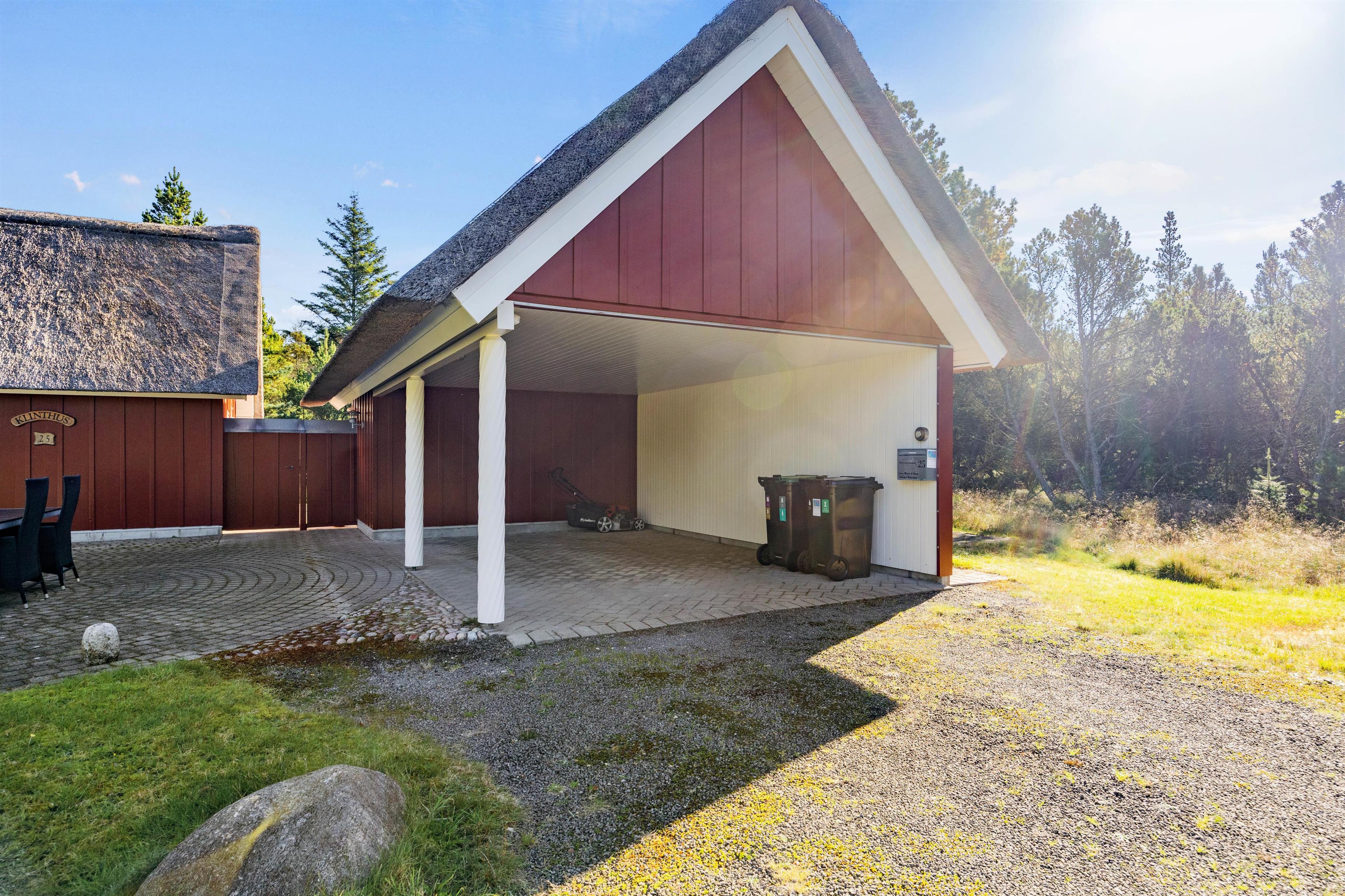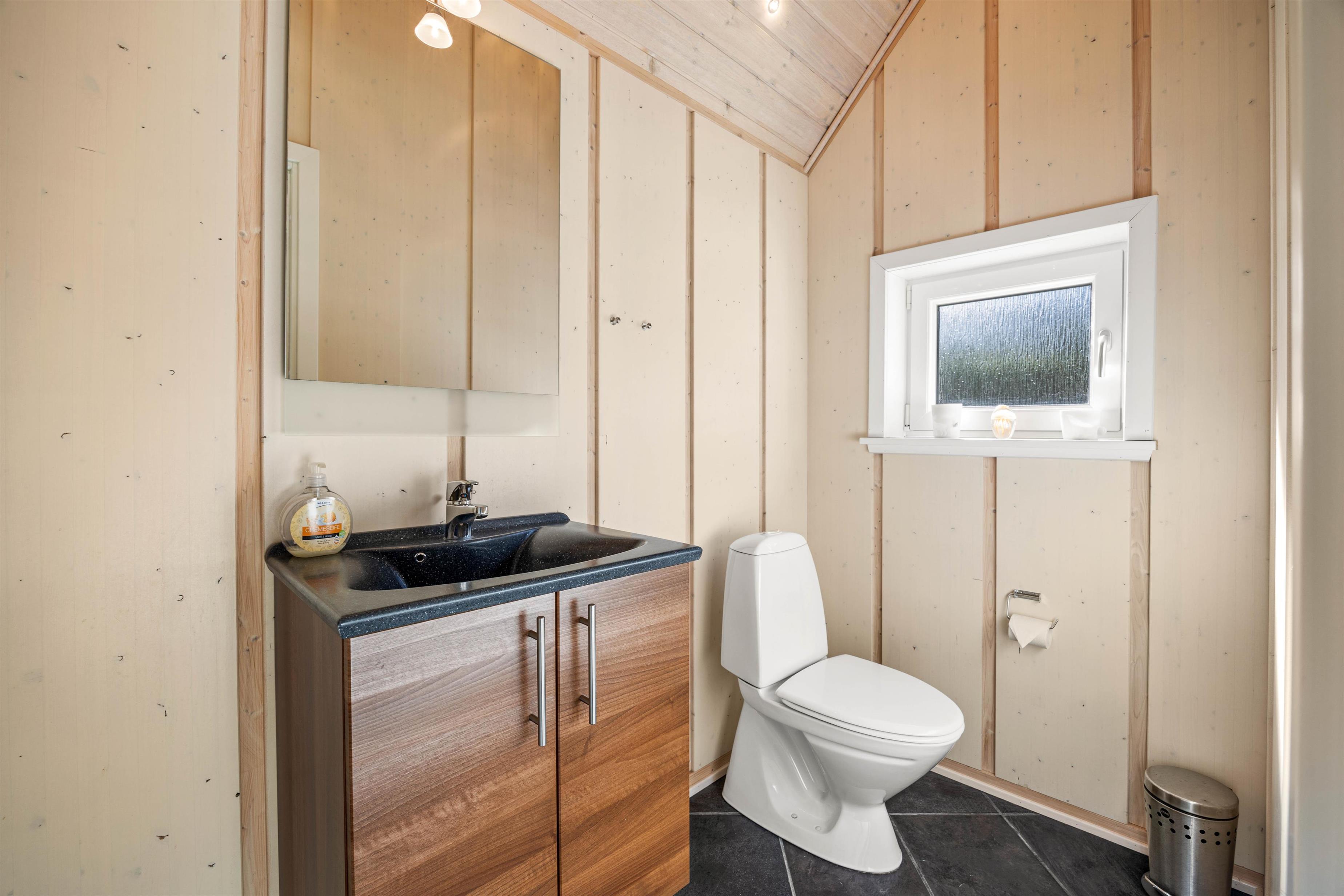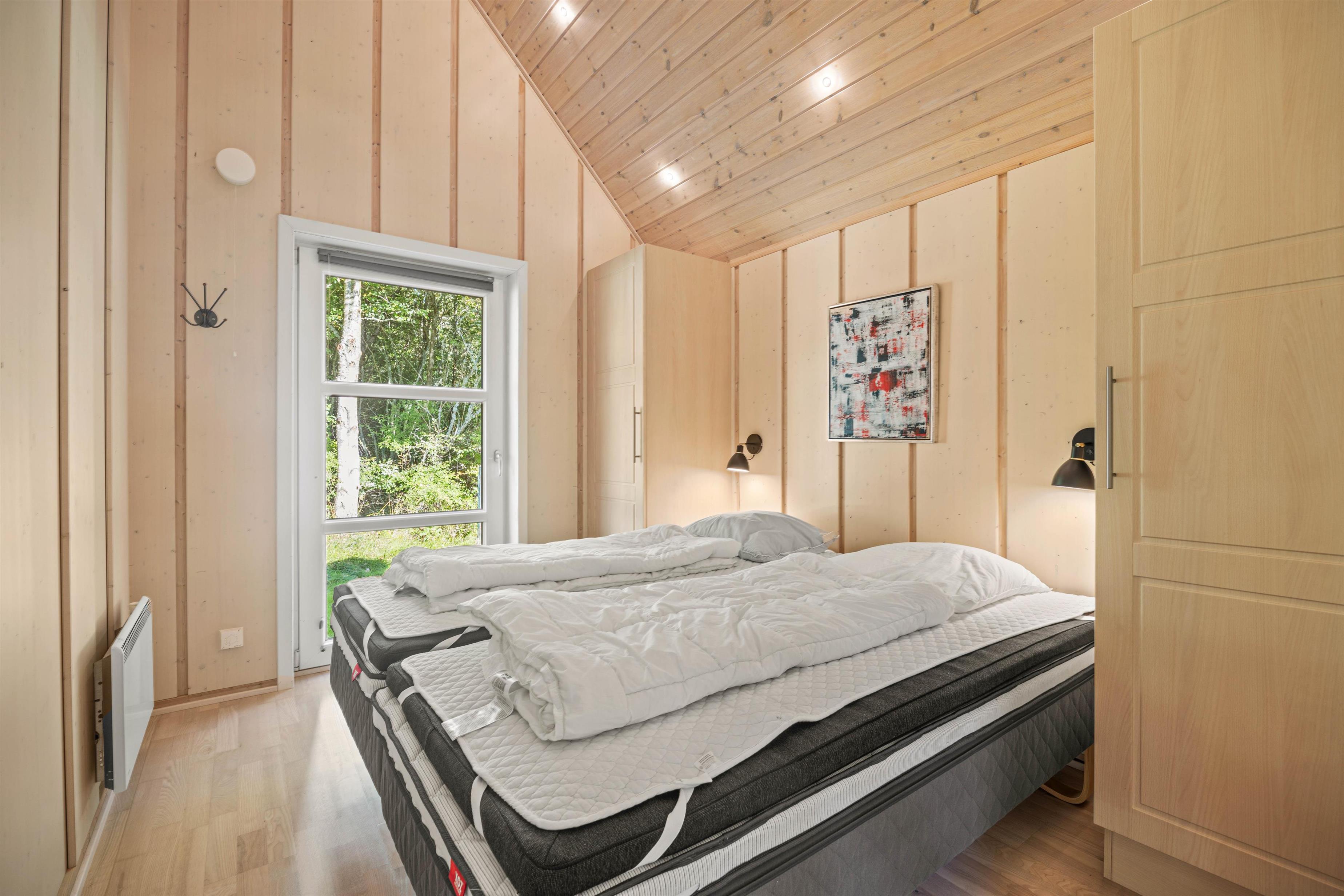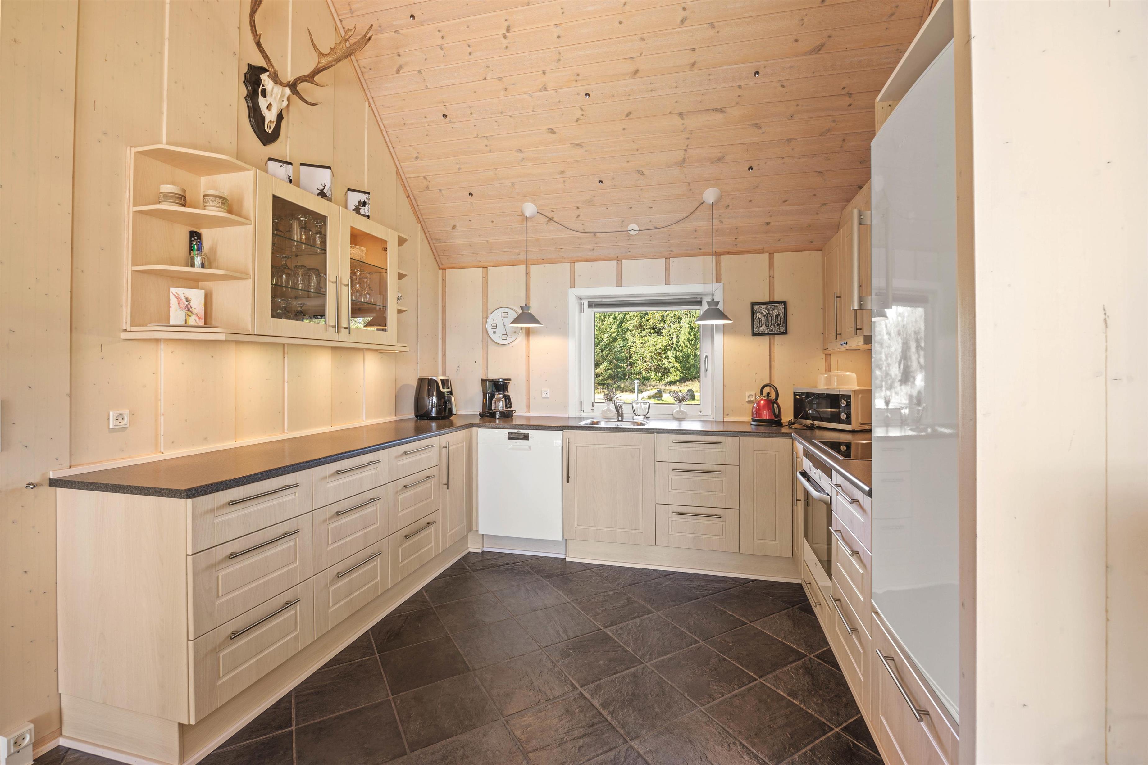 Helt igennem gennemført i sin stil, er dette feriehuset til dig, der drømmer om en luksuriøs afslapningsferie fjern fra byens uro. Allerede ved ankomsten kan du mærke forskellen til de typiske feriehuse – her har du en rummelig entre og plads til sko og jakker og i husets gæste-wcét står både vaskemaskine og tørretumbler til din rådighed.