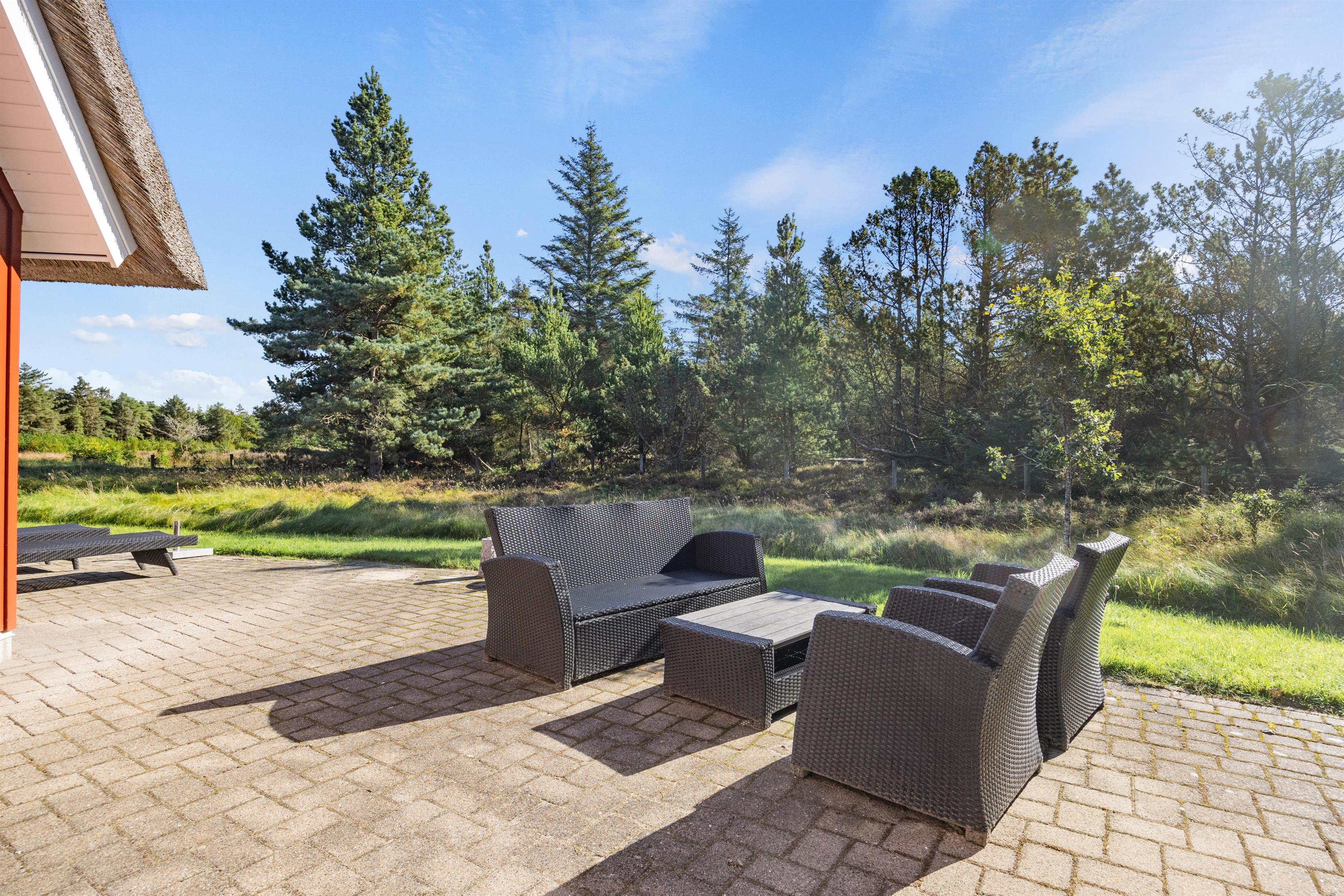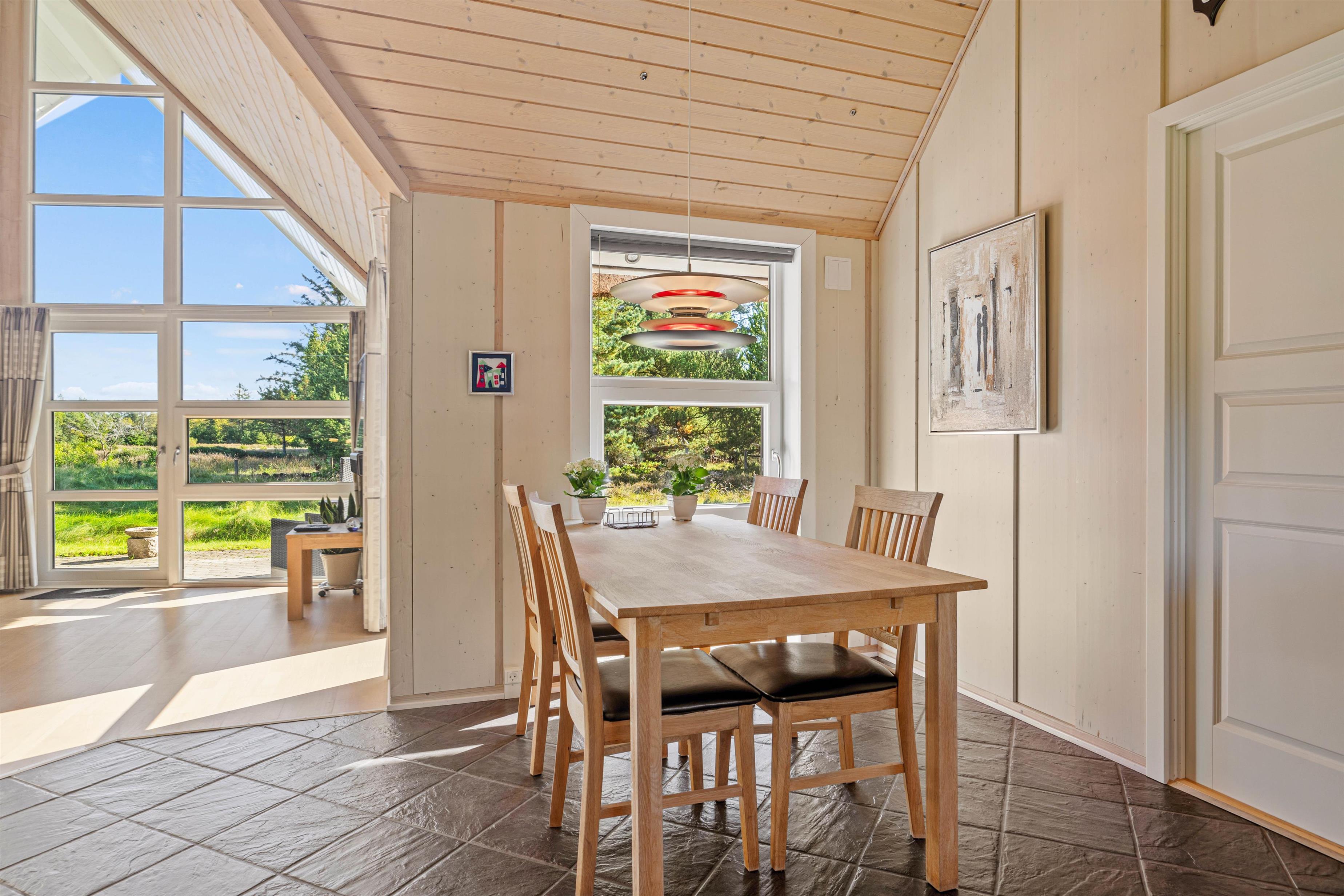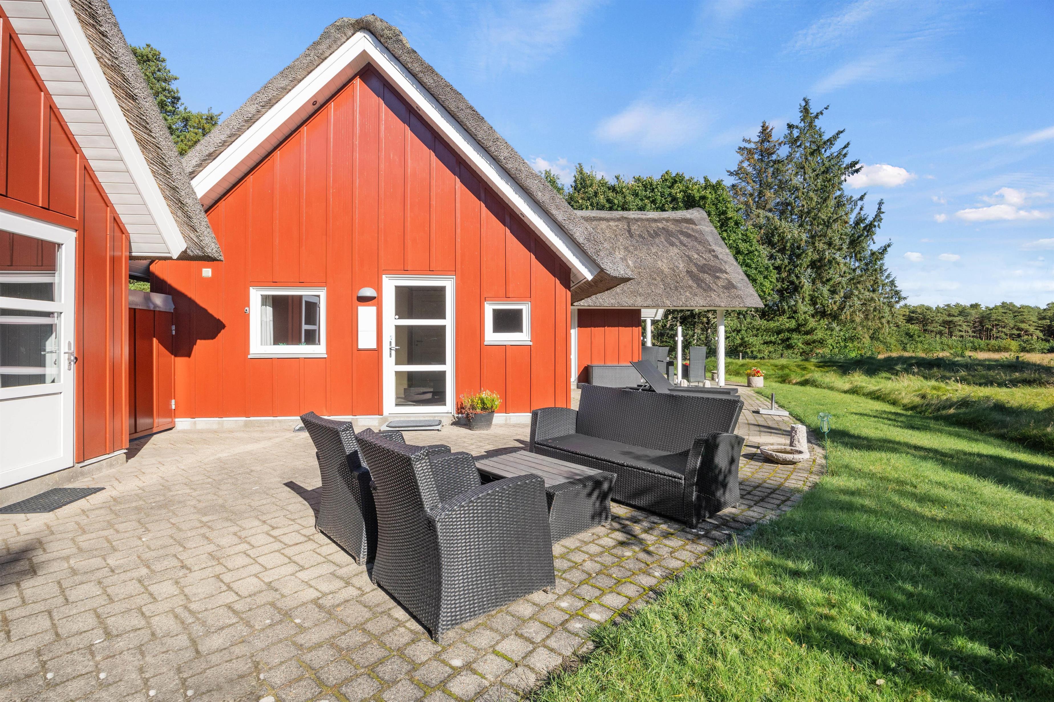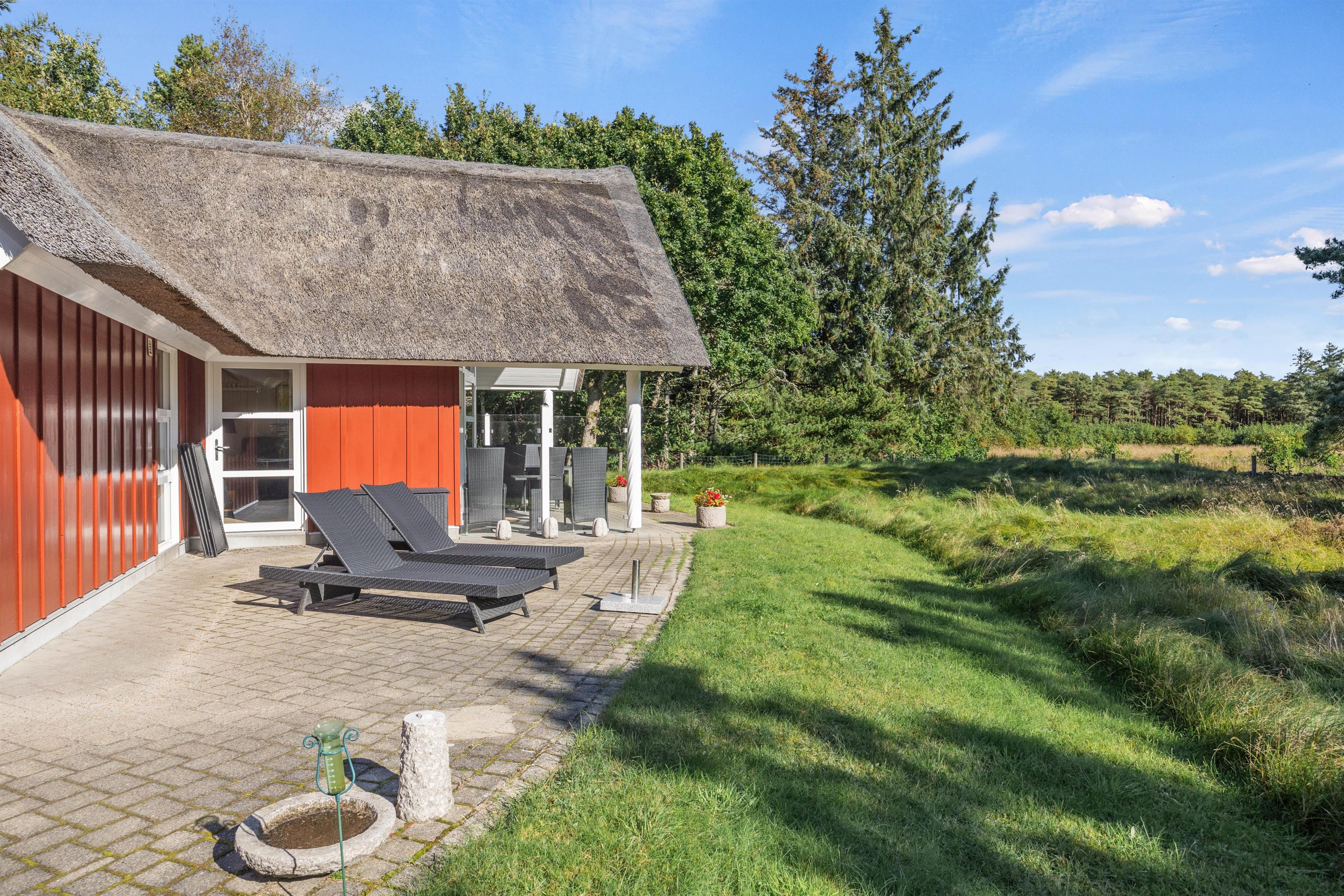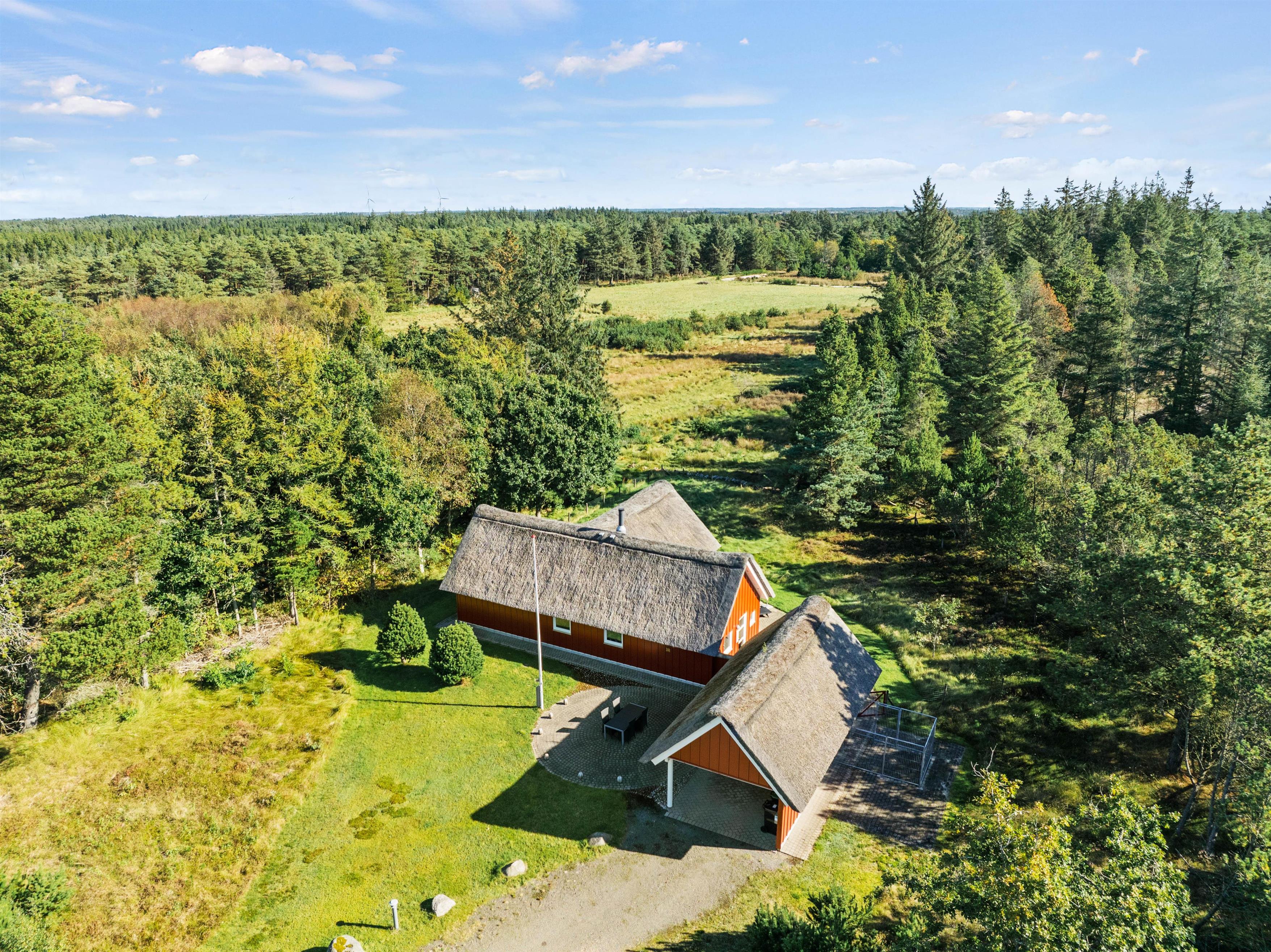 Bo der, hvor du hele dagen kan nyde duften af lynghede blandet med lidt salt fra havet. Imens børnene leger på gyngen, kan du sætte dig til rette på terrassen og nyde udsigten. Gode stisystemer indbyder til lange gåture i området – måske en frisk 2,5 kilometers travetur til stranden og derefter en tur i saunaen.