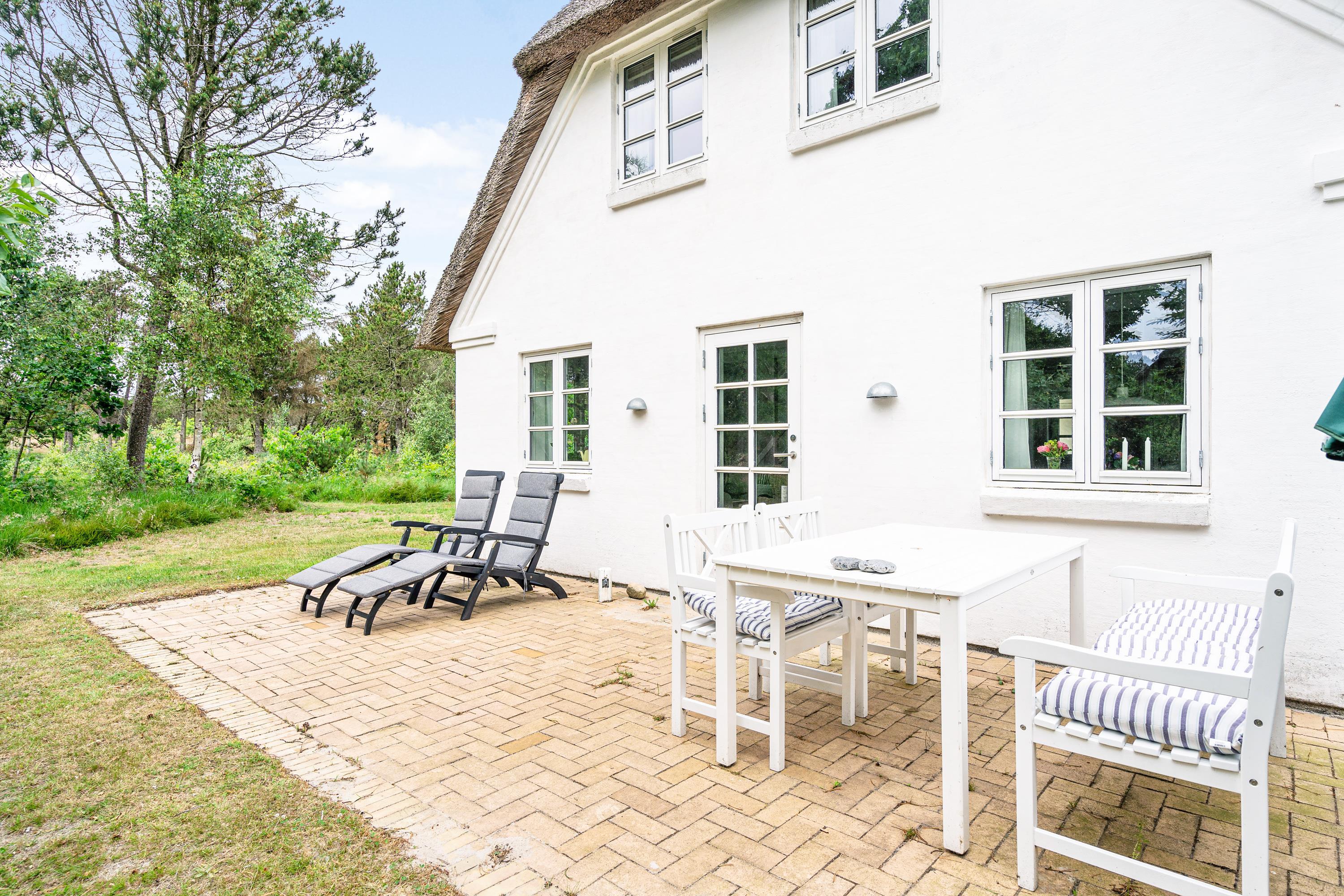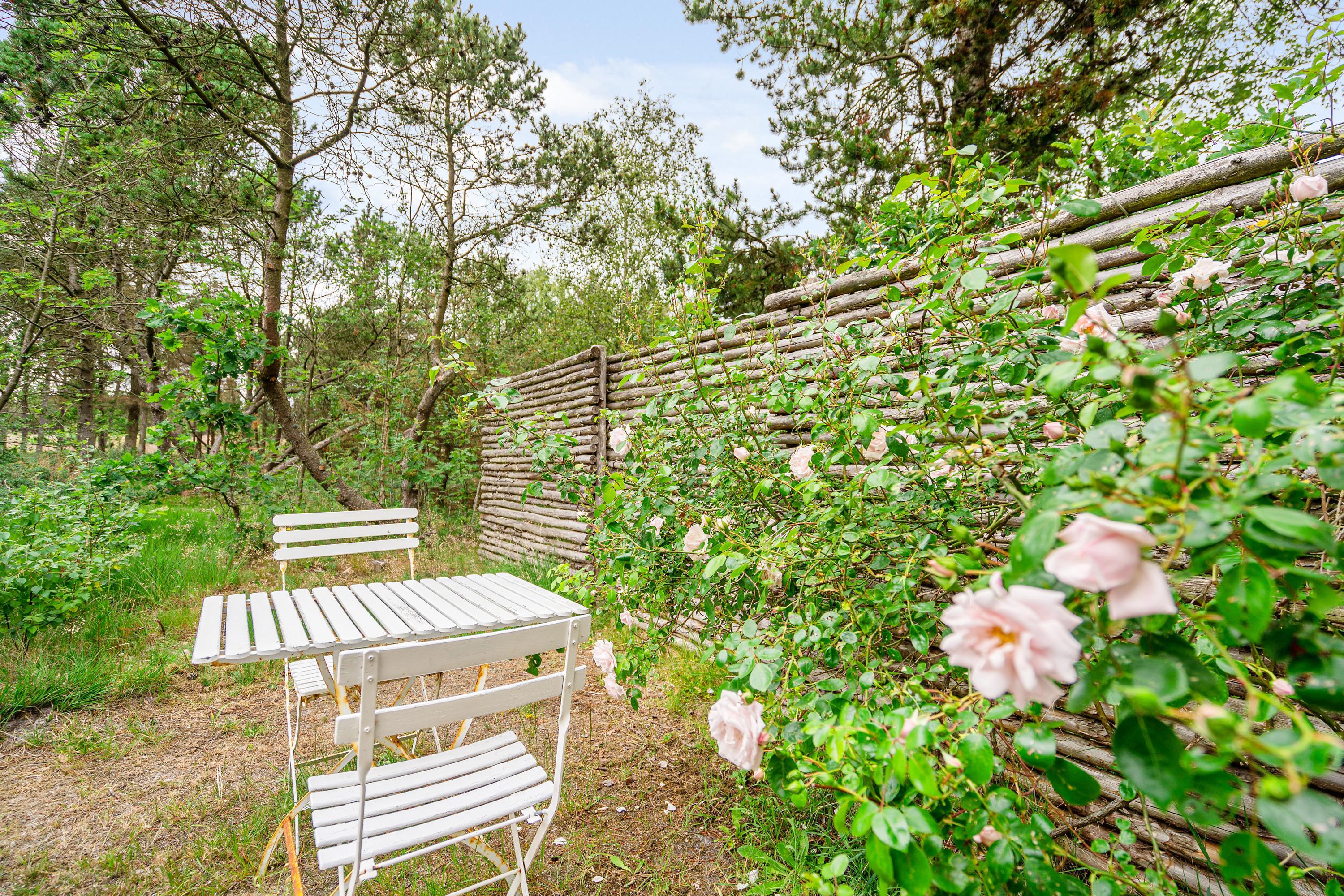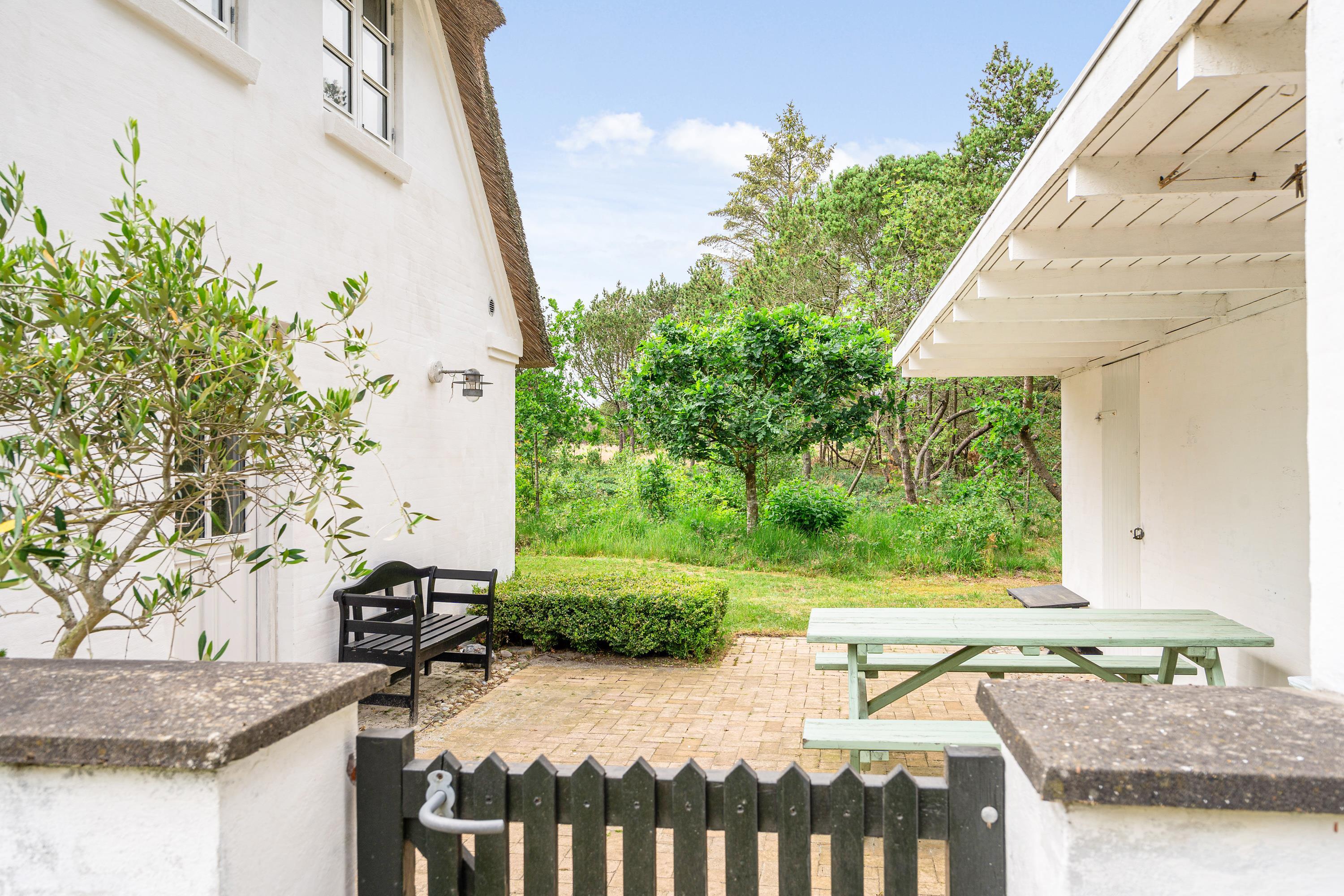 Også udenfor ånder alt idyl: Find dit magiske hjørne - her er mange muligheder! Om det er i solgården bag huset, hvor et stort overdækket område garanterer udetid fra tidligt forår til langt hen på efteråret, eller du nyder en kop kaffe og en bog i den grønne have - lidt gemt ved hegnet med de duftende roser. Ikke at forglemme er der også husets store solterrasse, hvor du kan slappe af på liggestolene og nyde områdets stilhed og duften fra lynghede og fyrretræer, imens de mindste hygger sig i sandkassen. Imens du holder ferie, kan cyklerne eller barnevognen stå tørt og godt i husets redskabsrum.