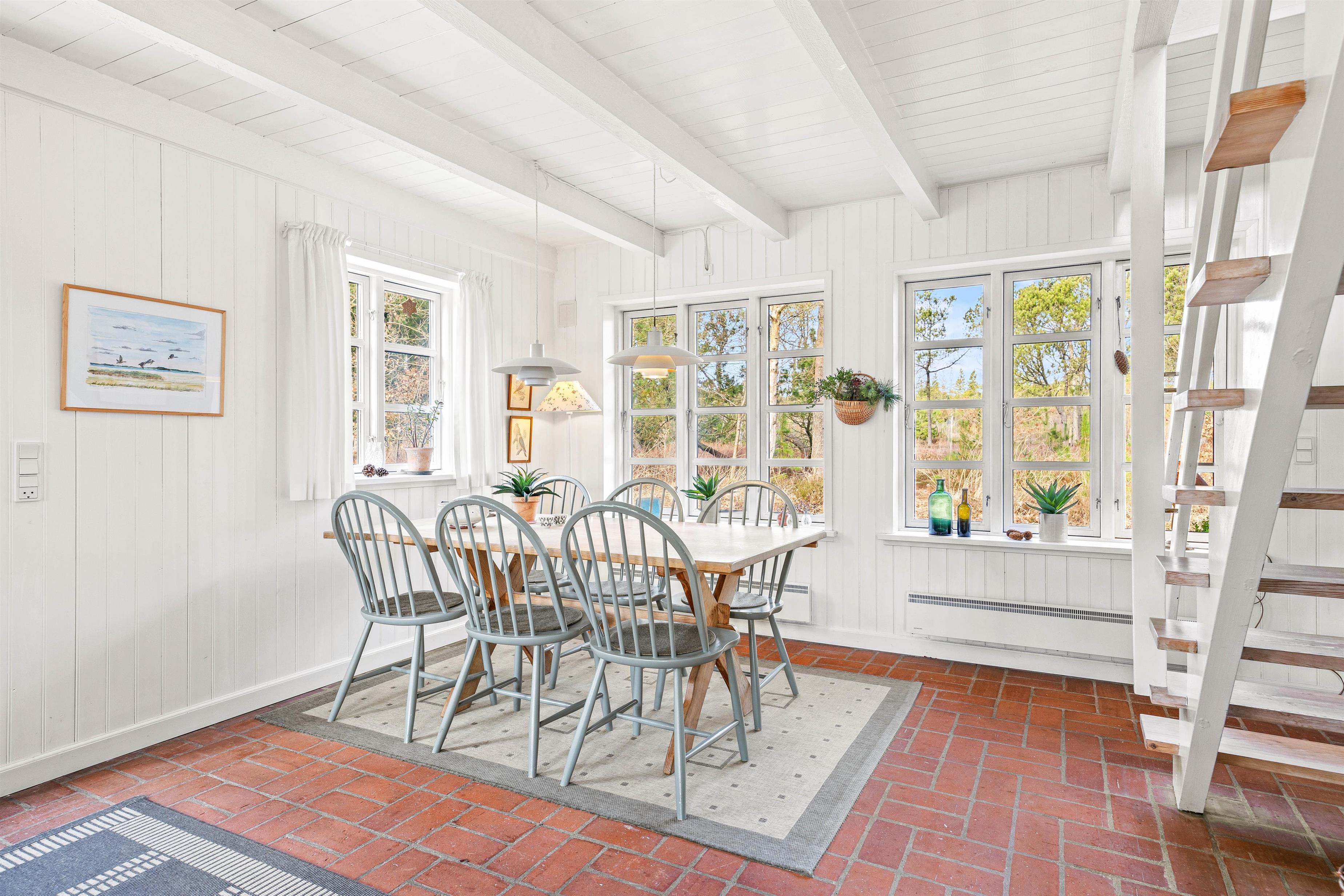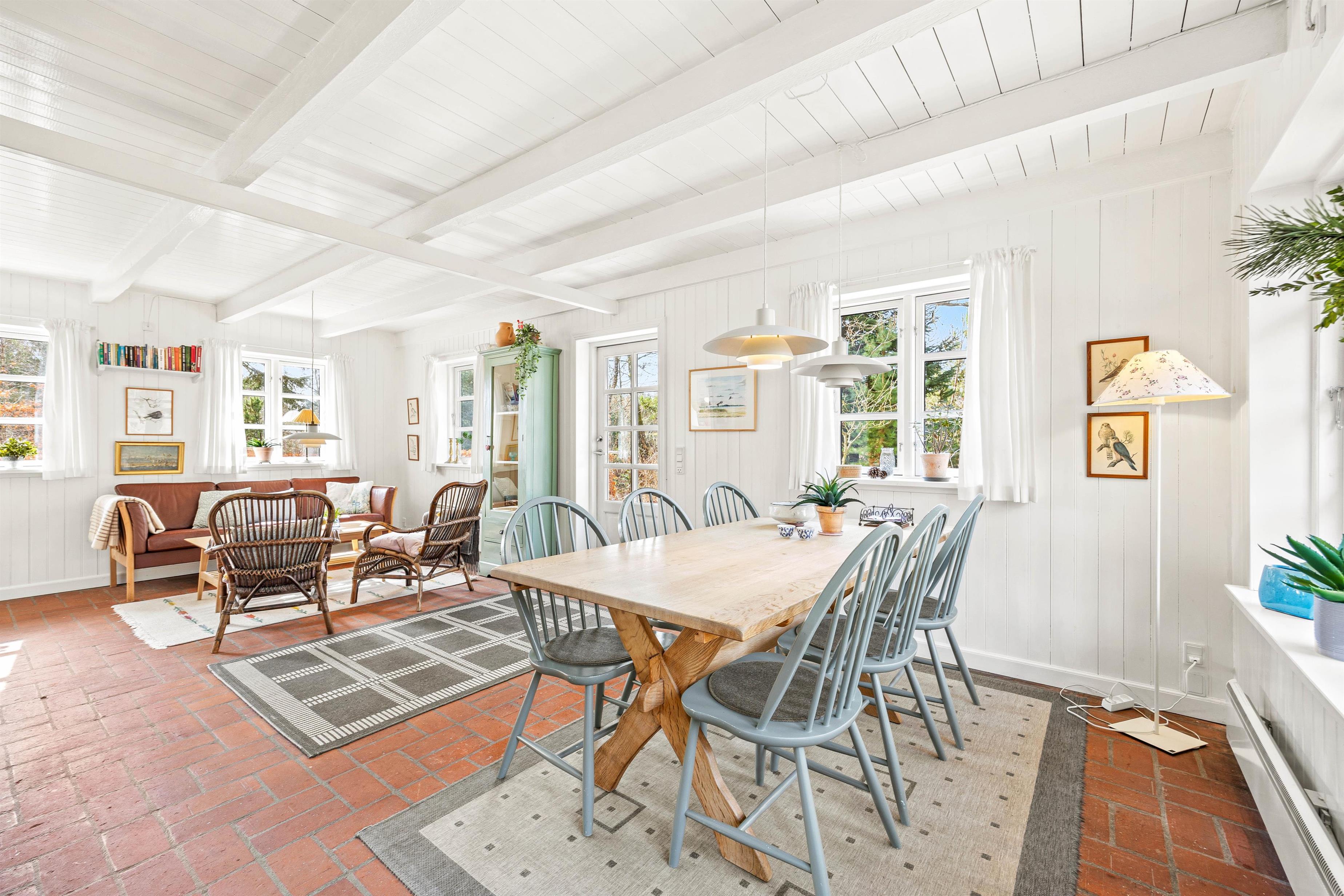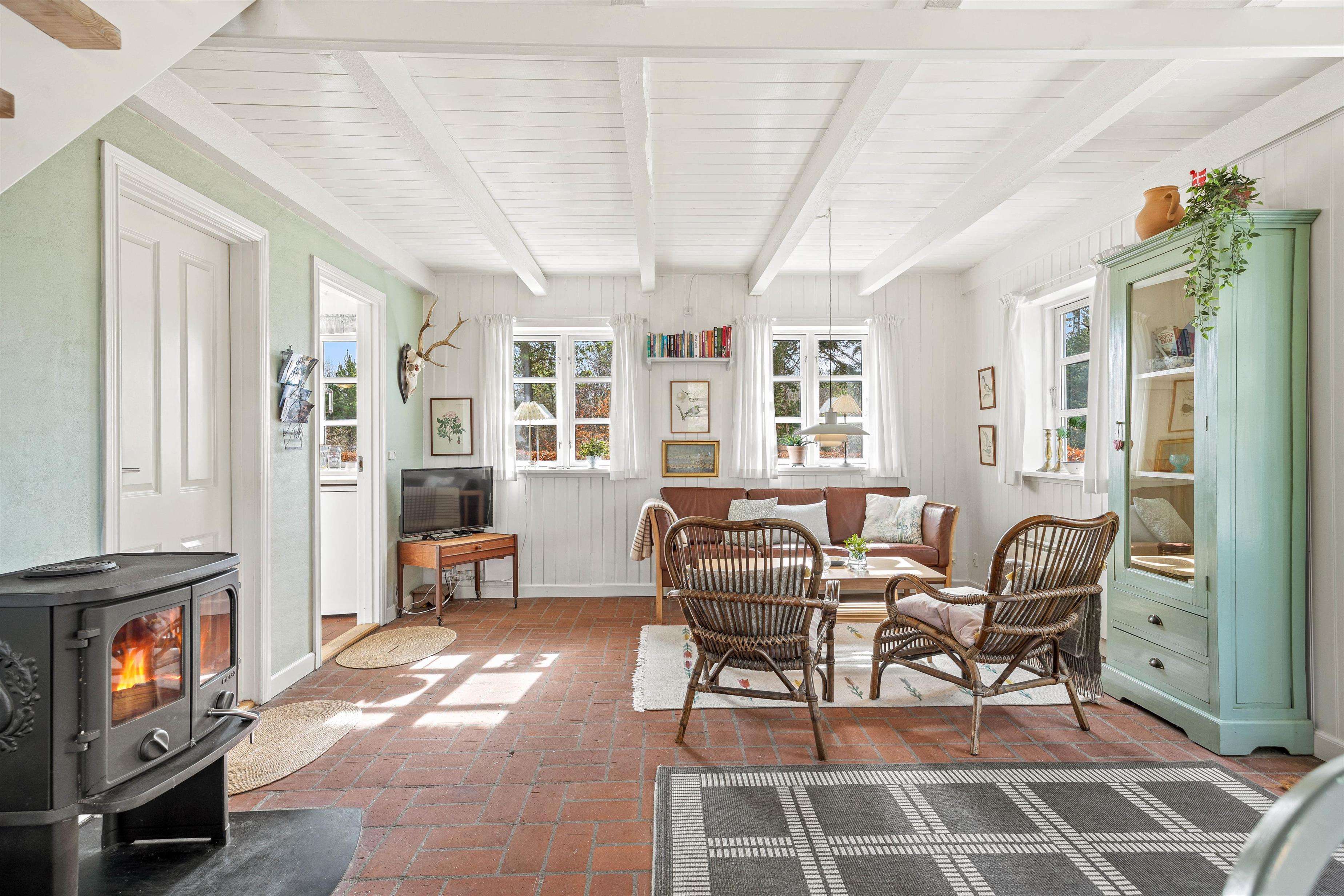 Hyg med familien eller dine venner i den lyse stue, hvor der er mulighed for at tænde op i brændeovnen, eller I kan samles om spisebordet til familiespil.