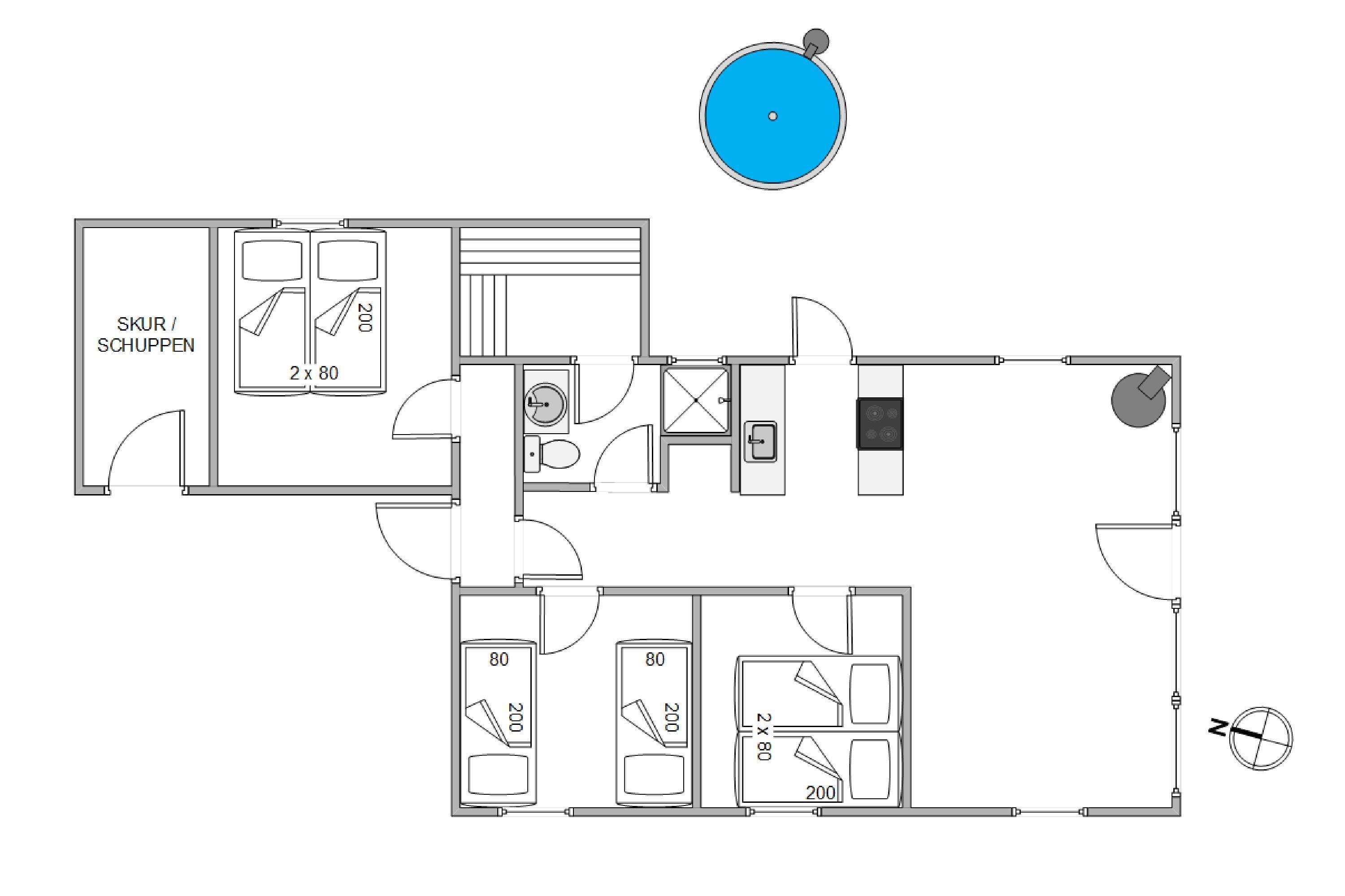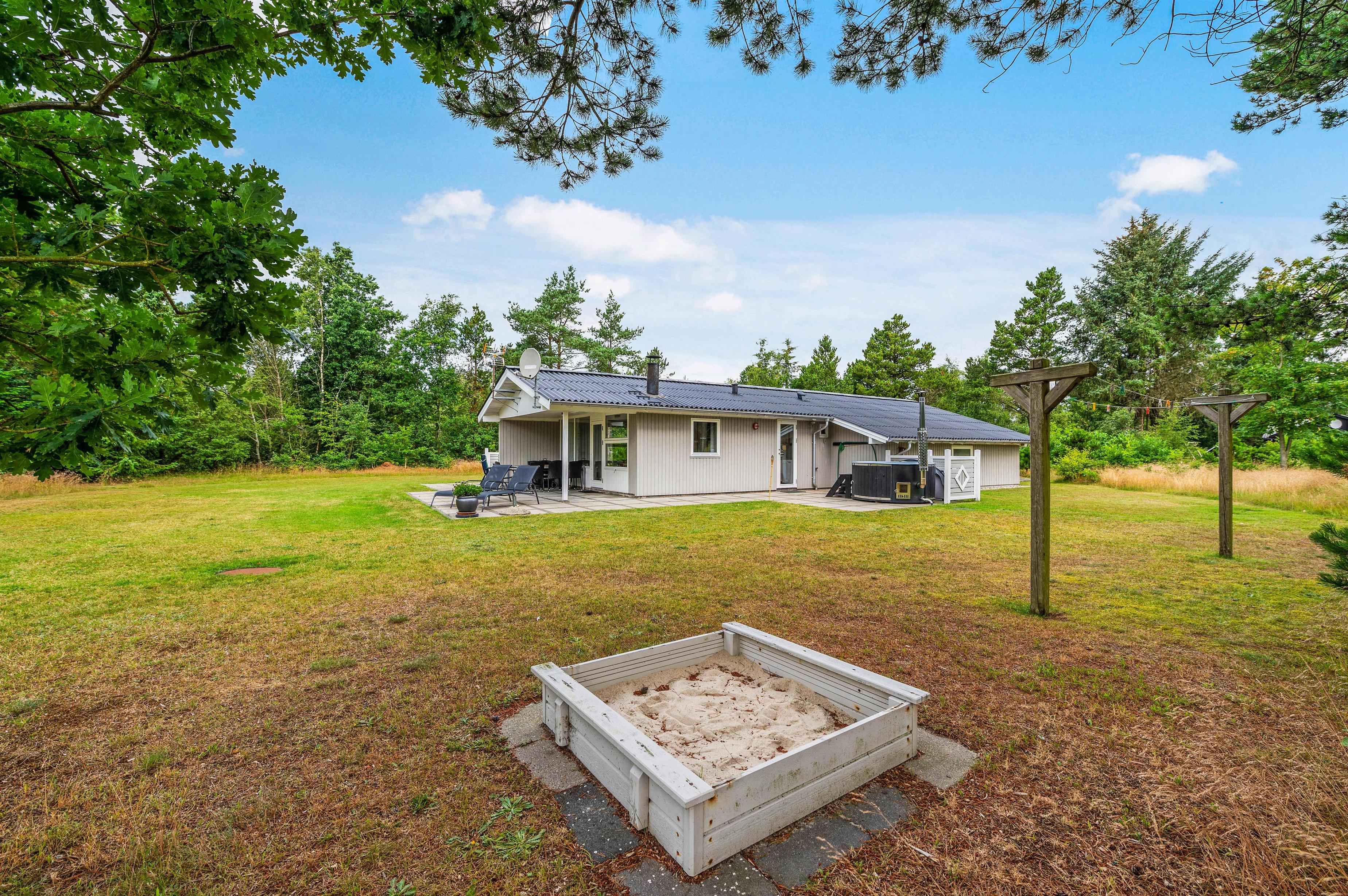 Her på Ndr. Skovvej 1 ligger dette dejlige feriehus, som er perfekt til familieferien. Her får I masser af muligheder for at koble af både indenfor foran den knitrende brændeovn og ovre i sofahjørnet med en god film, eller udenfor rundt om havebordet, mens grillen steger aftensmaden færdig. Vil I gerne nyde godt af lidt ekstra luksus, kan I tænde op i saunaen eller hygger i vildmarksbadet og blive godt varmet igennem.