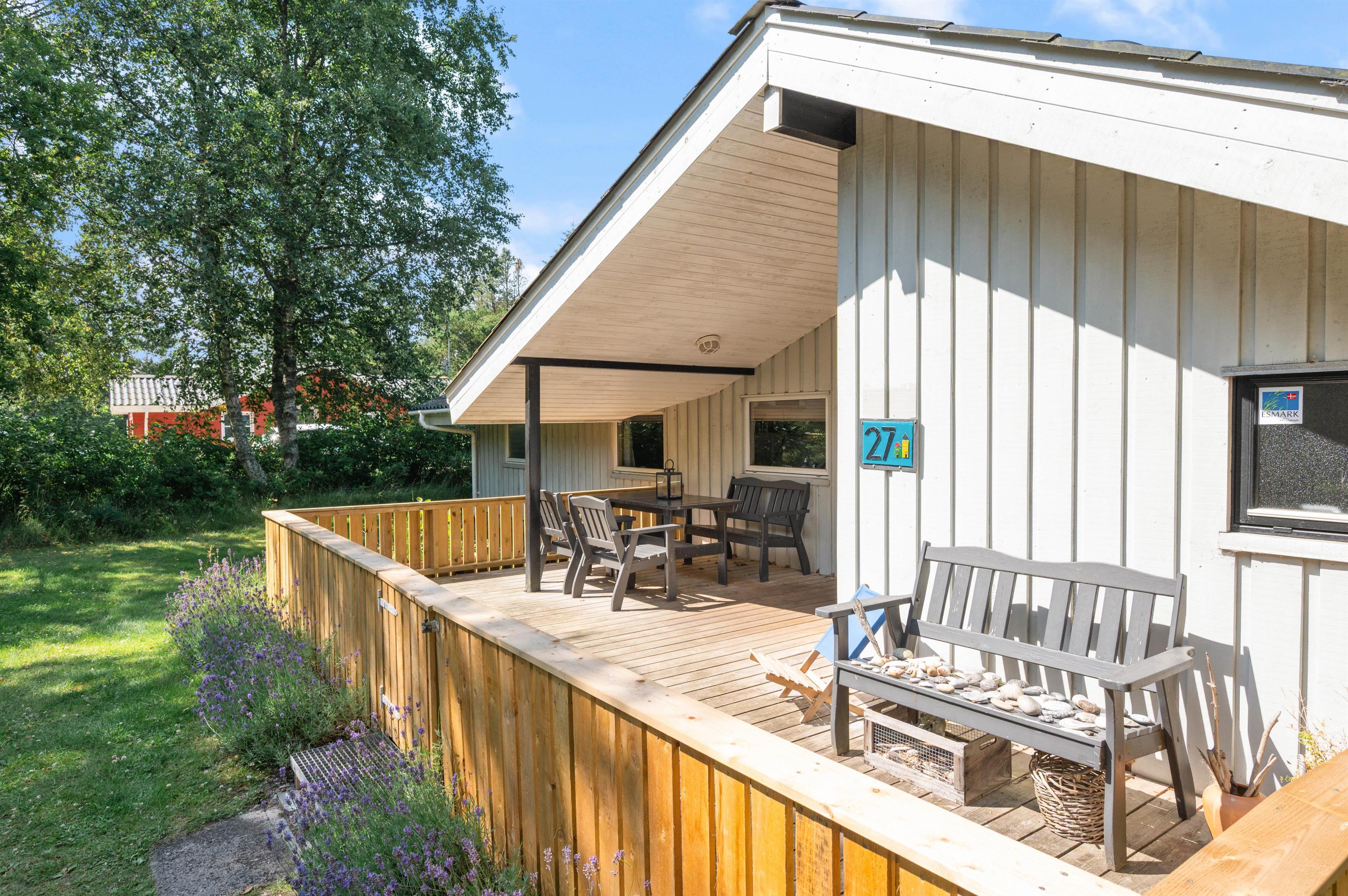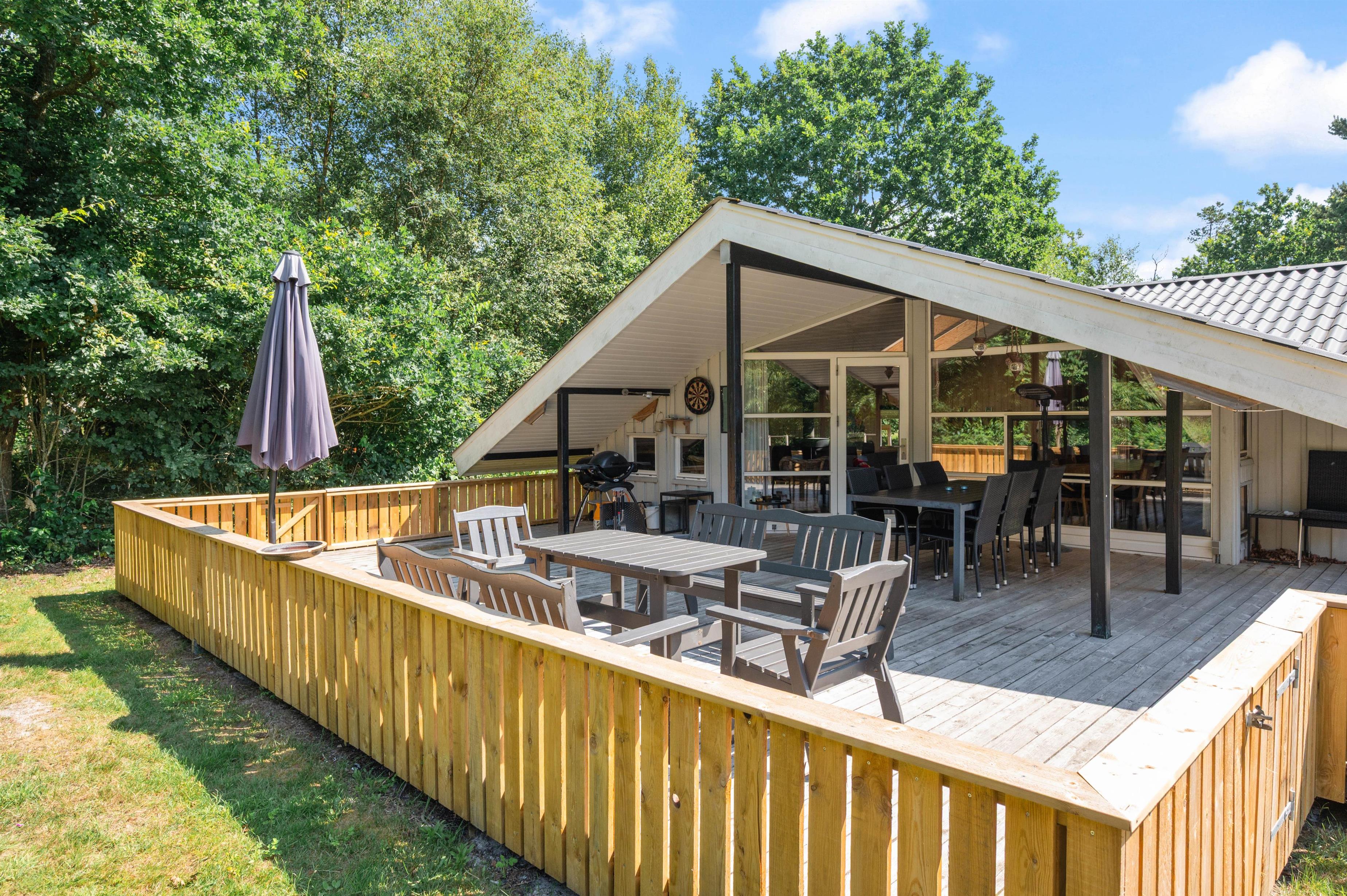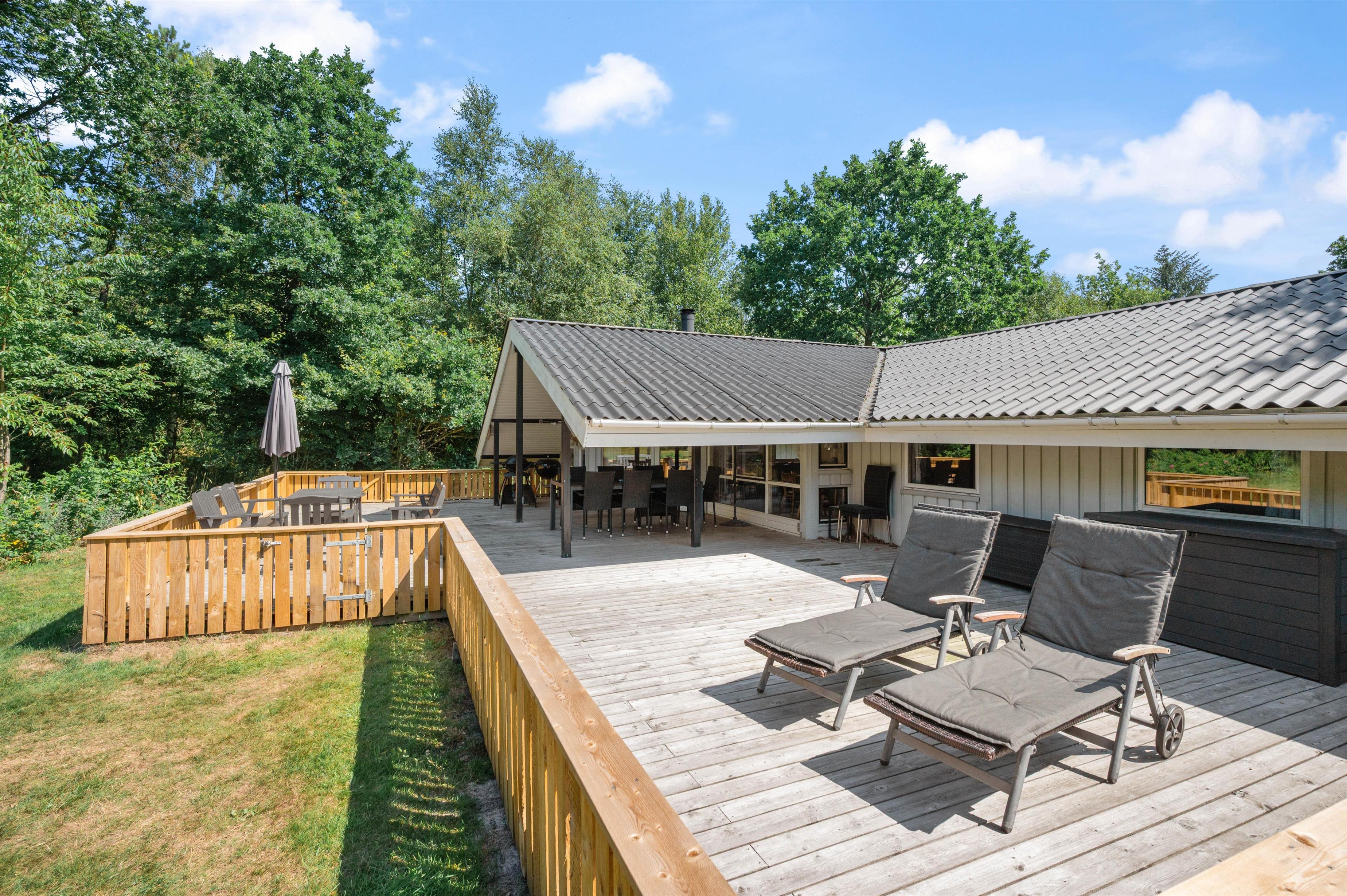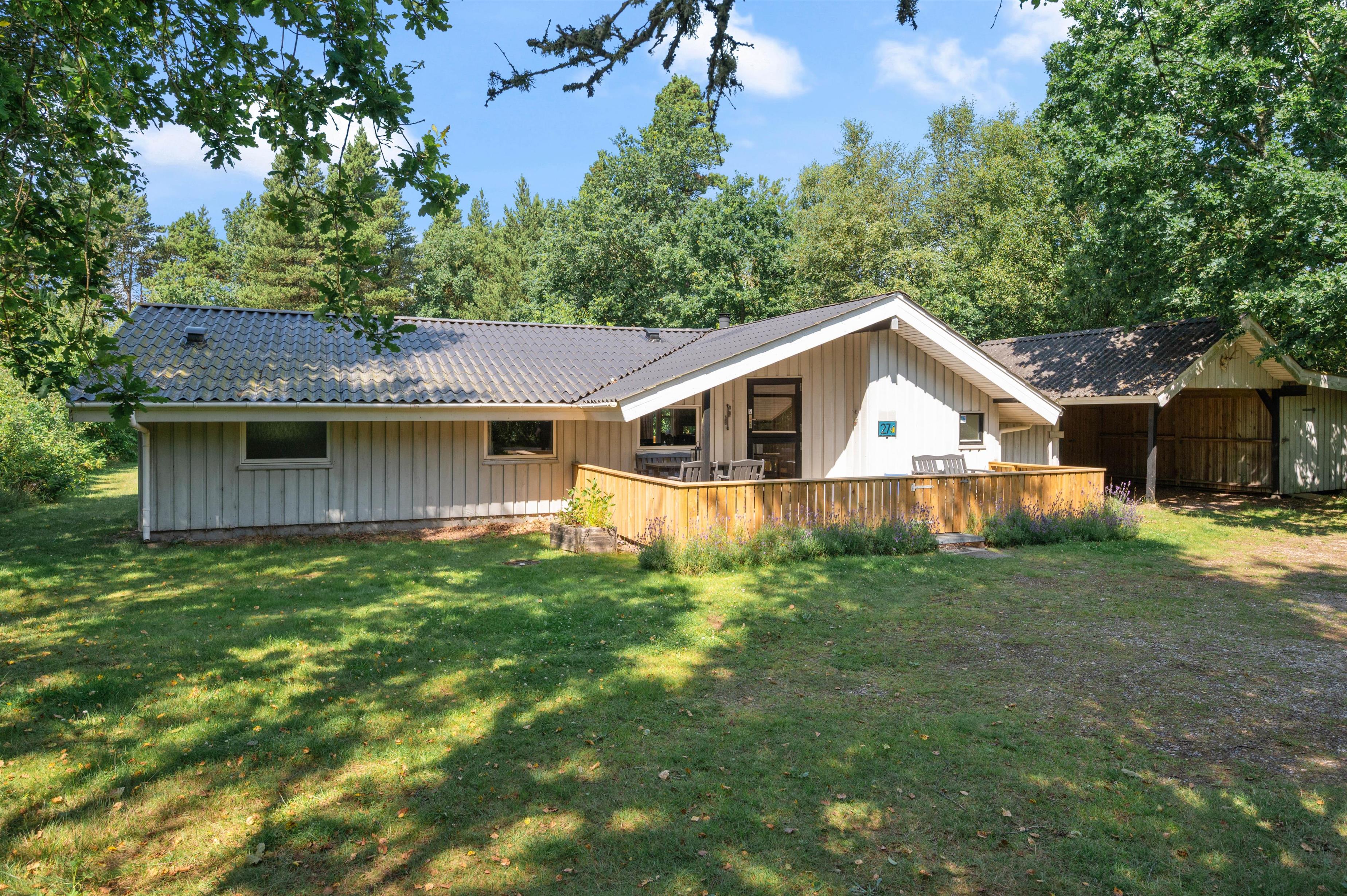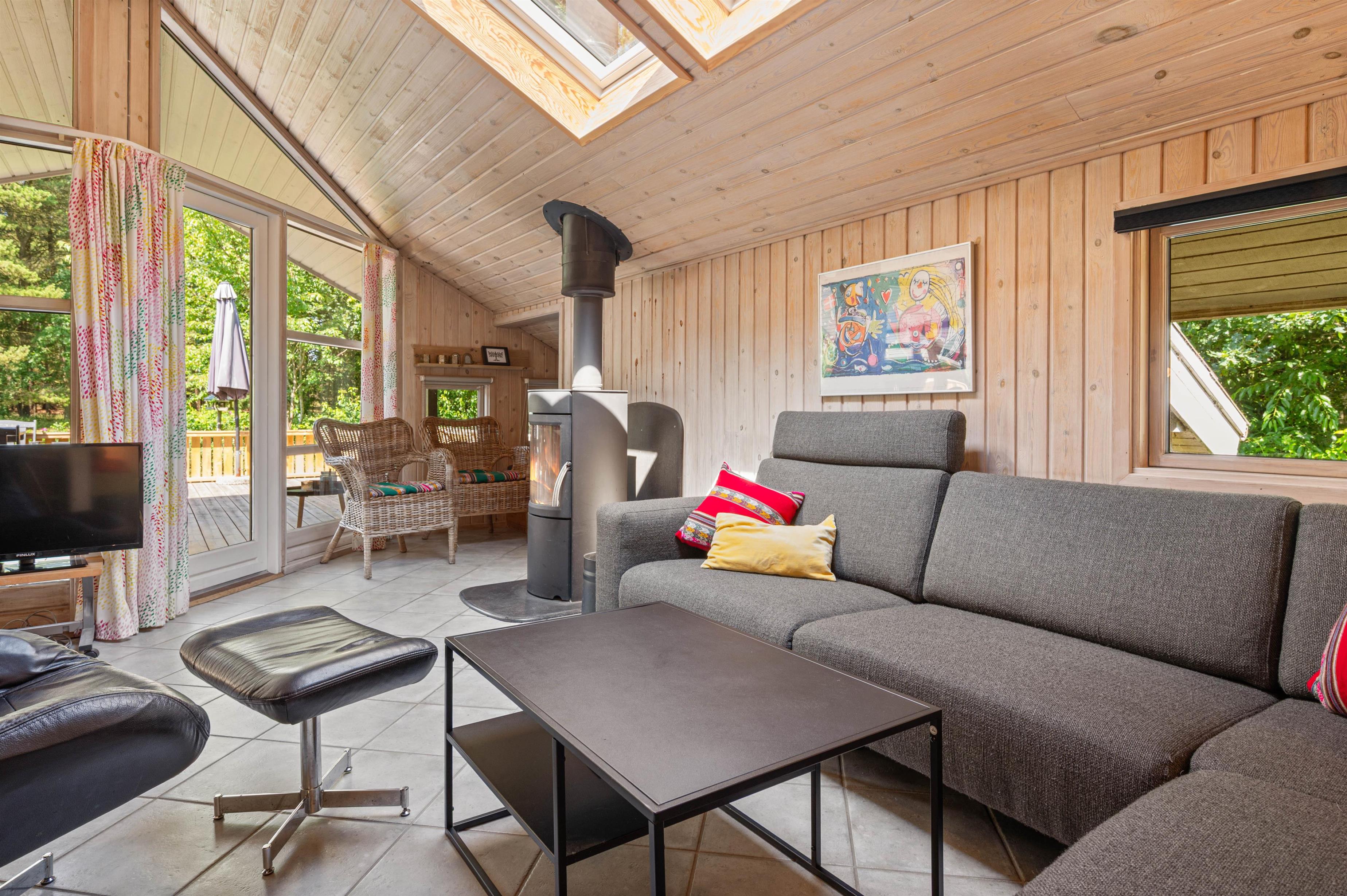 Det skønne sommerhus ligger på en dejlig naturgrund i grønne omgivelser. Der er rigtig god plads til at nyde vejret og udsigten på den store, lækre terrasse, og den er tilmed lukket af, så børnene sagtens kan lege uden opsyn.