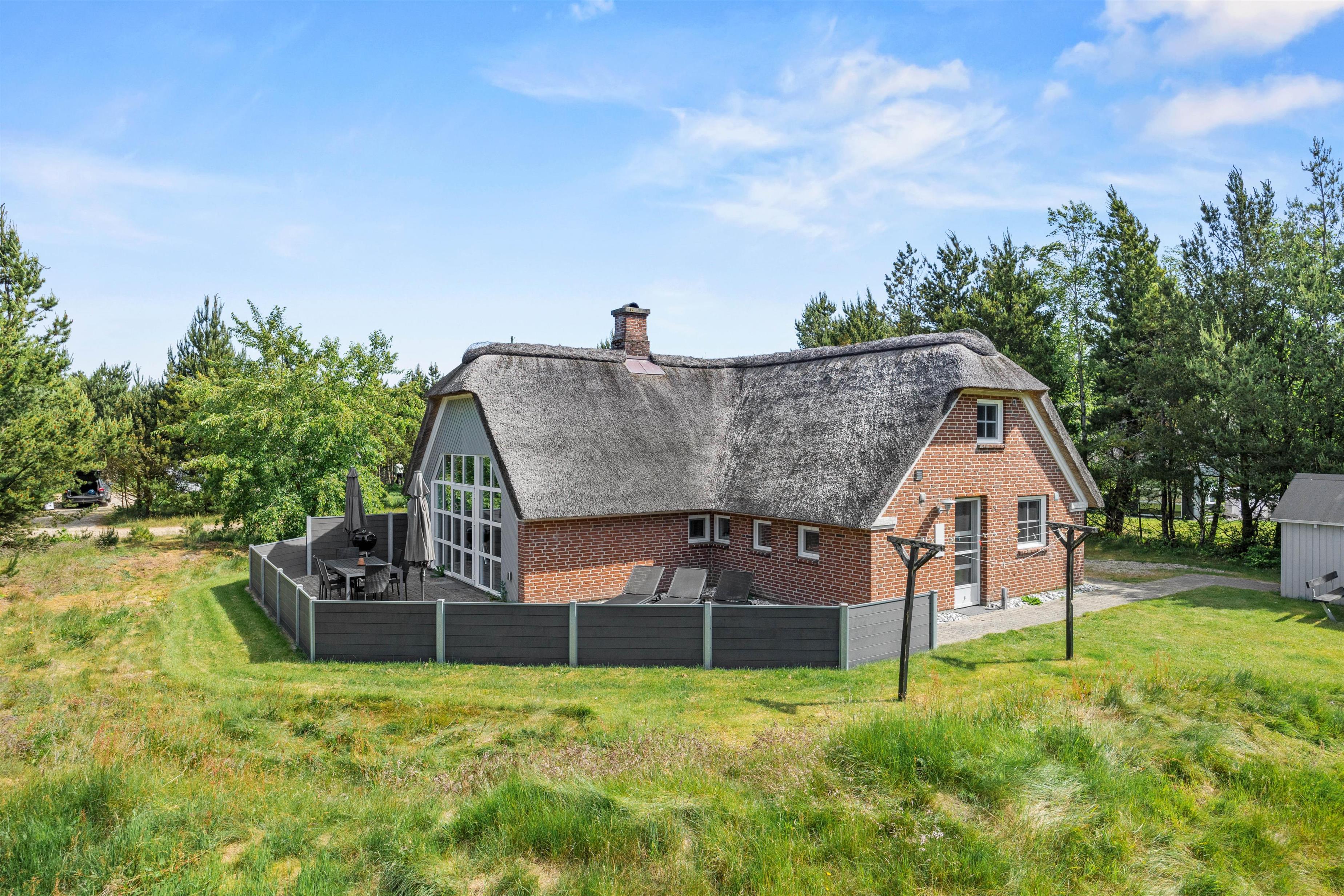 Denne stråtækte idyl på 141 m2 er perfekt både til den større familie eller til venneparrene. Her er dømt hygge både ude og inde. Saml familien til fælles madlavning i det godt udstyrede køkken og hyg med god mad og lange spilleaftener ved spisebordet. Måske står den også på stille hygge, tilbagelænet i de bekvemme lænestole med en kop kakao og brændeovnsvarme. I forlængelse af den hyggelige stue med brændeovnen og de bekvemme lænestole har I på 1 sal et yderligere opholdsrum med lækkert fjernsynshjørne.