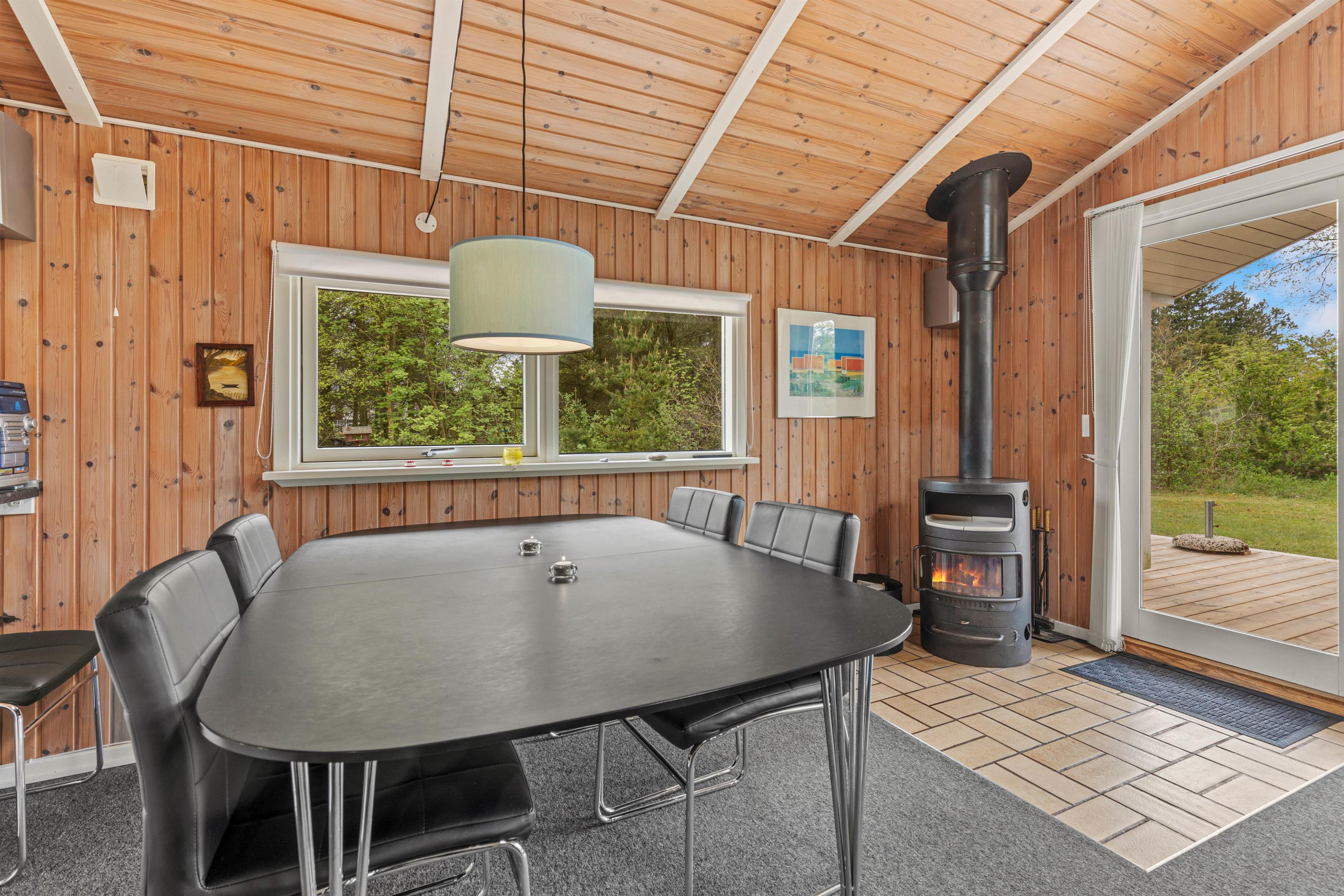 Sommerhuset er lyst og hyggeligt indrettet med en god opholdsstue, der ligger i åben forbindelse med husets spisestue og køkken. Køkkenet er placeret, så du kan kigge ud i stuen og til udearealet, mens du laver mad.