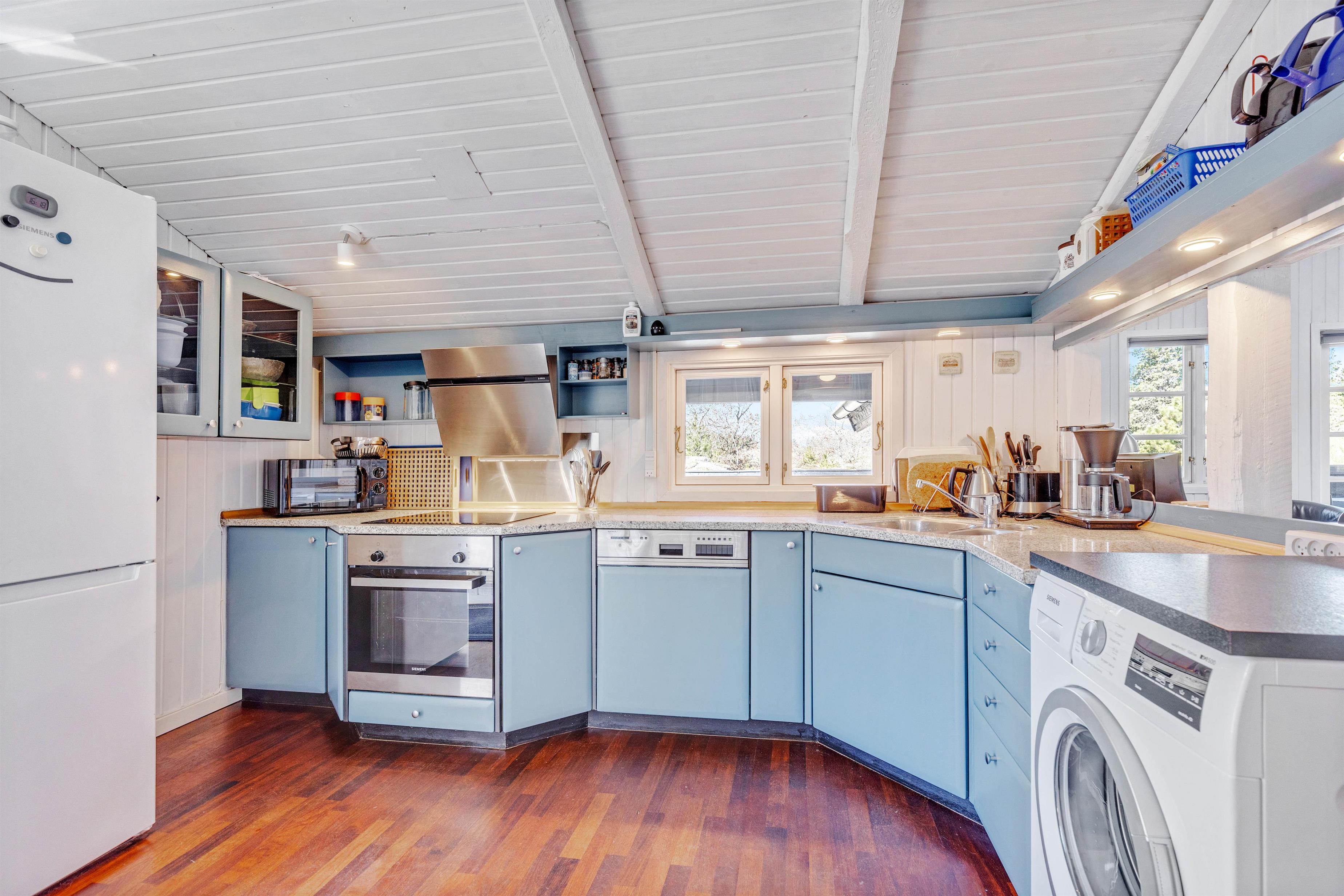 Køkkenet er godt udstyret med alt, hvad ferien behøver, så der kan tilberedes en lækker middag. Og efterfølgende vil opvaskemaskinen klare resten af arbejdet for jer.