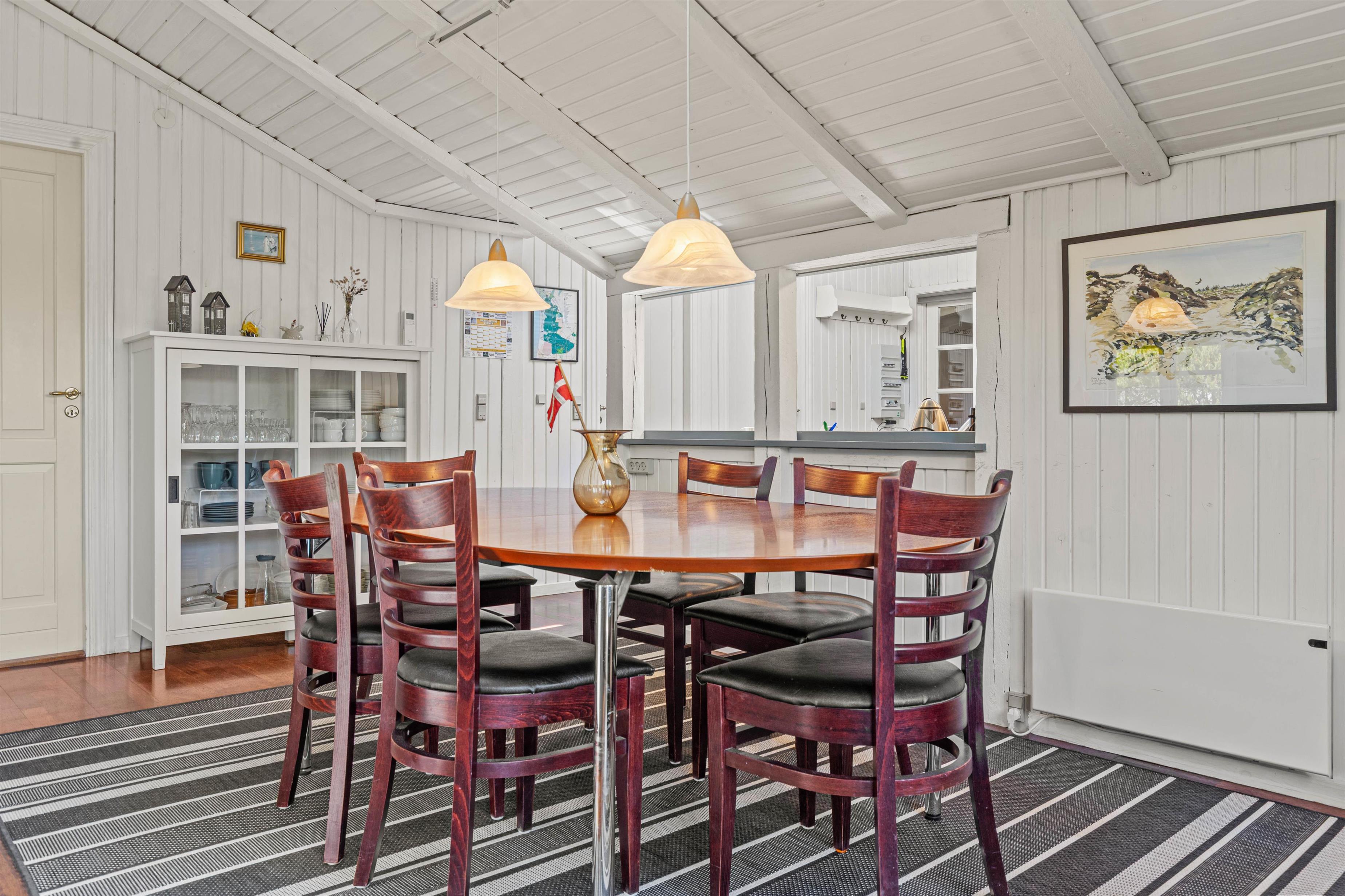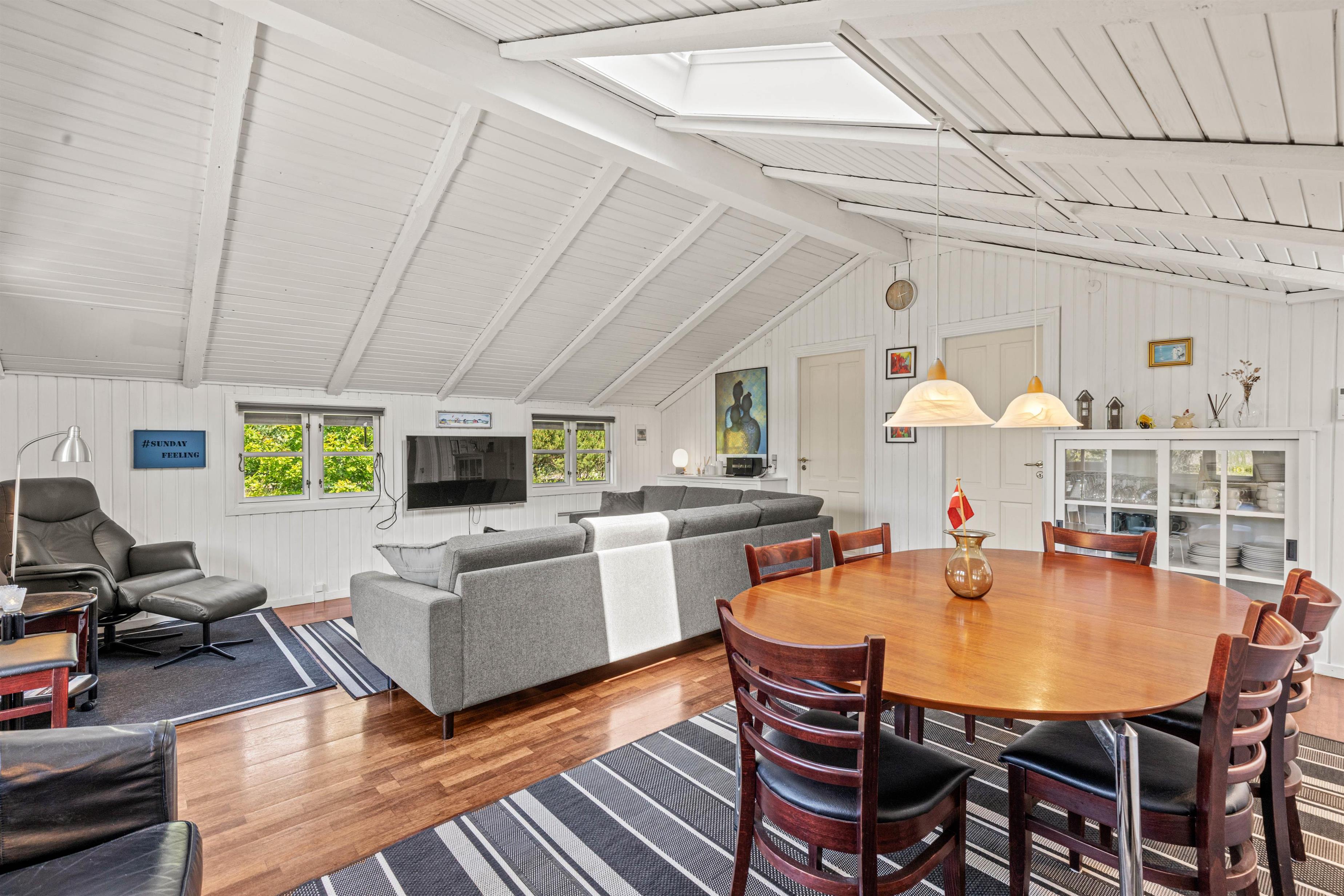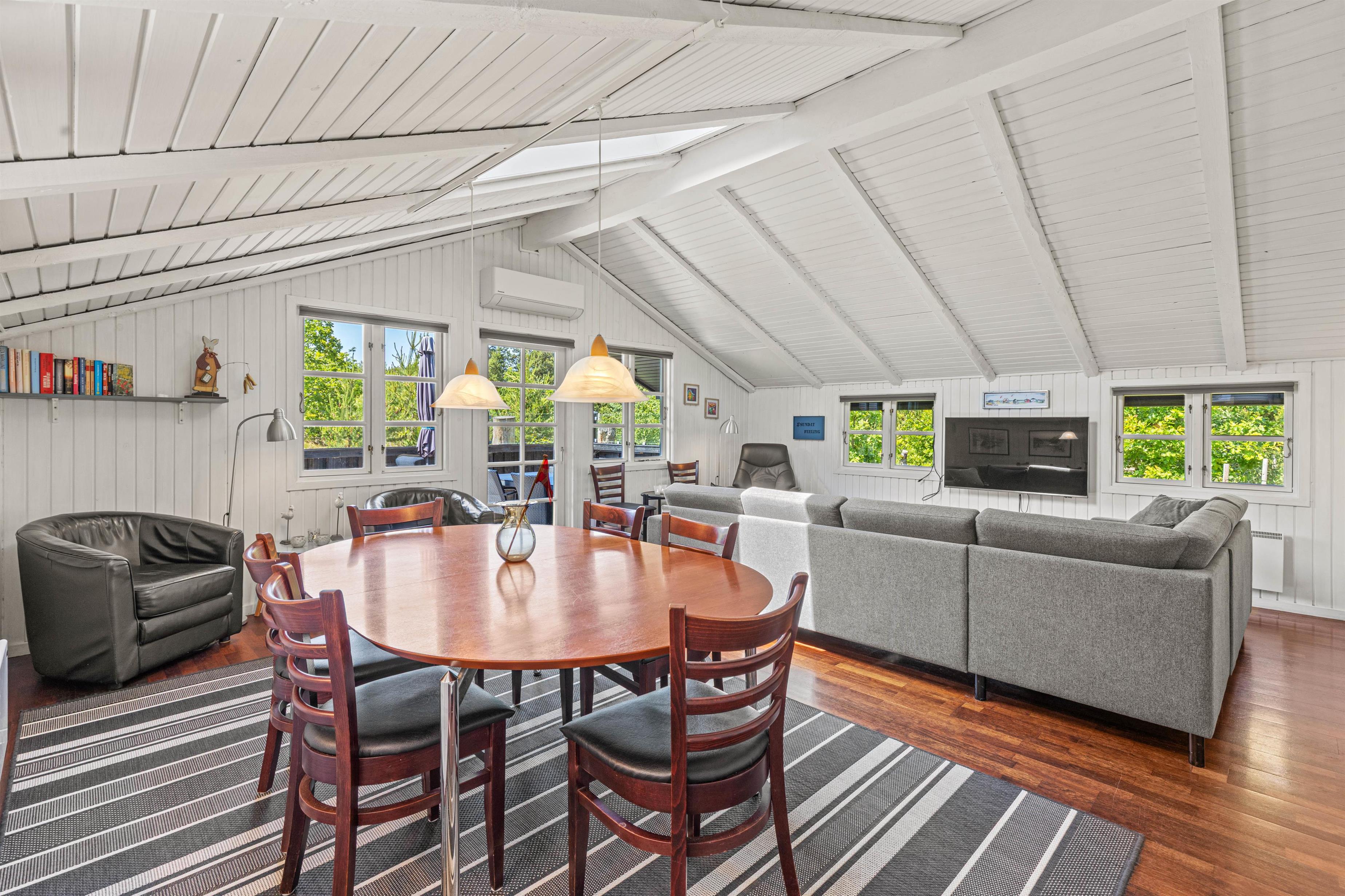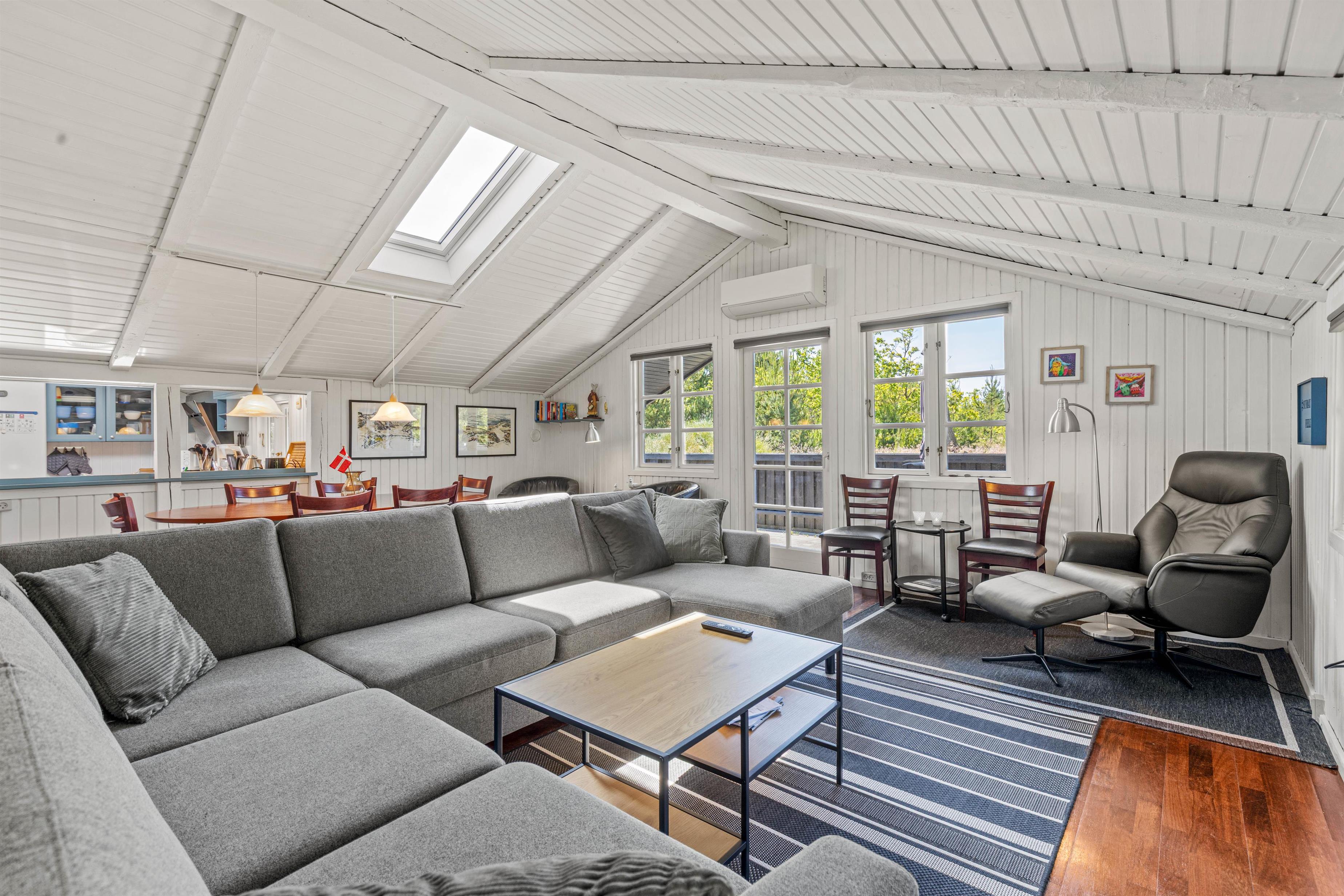 Det fine, sorte træsommerhus, som blev renoveret i 2020, har meget at byde på. Med plads til 6 personer kan hele familien og vennerne tage med. I det store stueområde kan I slappe af på sofaen med en god film eller en bog, og nyde den rolige feriestemning. I kan også benytte jer af den energibesparende varmepumpe, der hurtigt og effektivt varmer hele rummet op.
