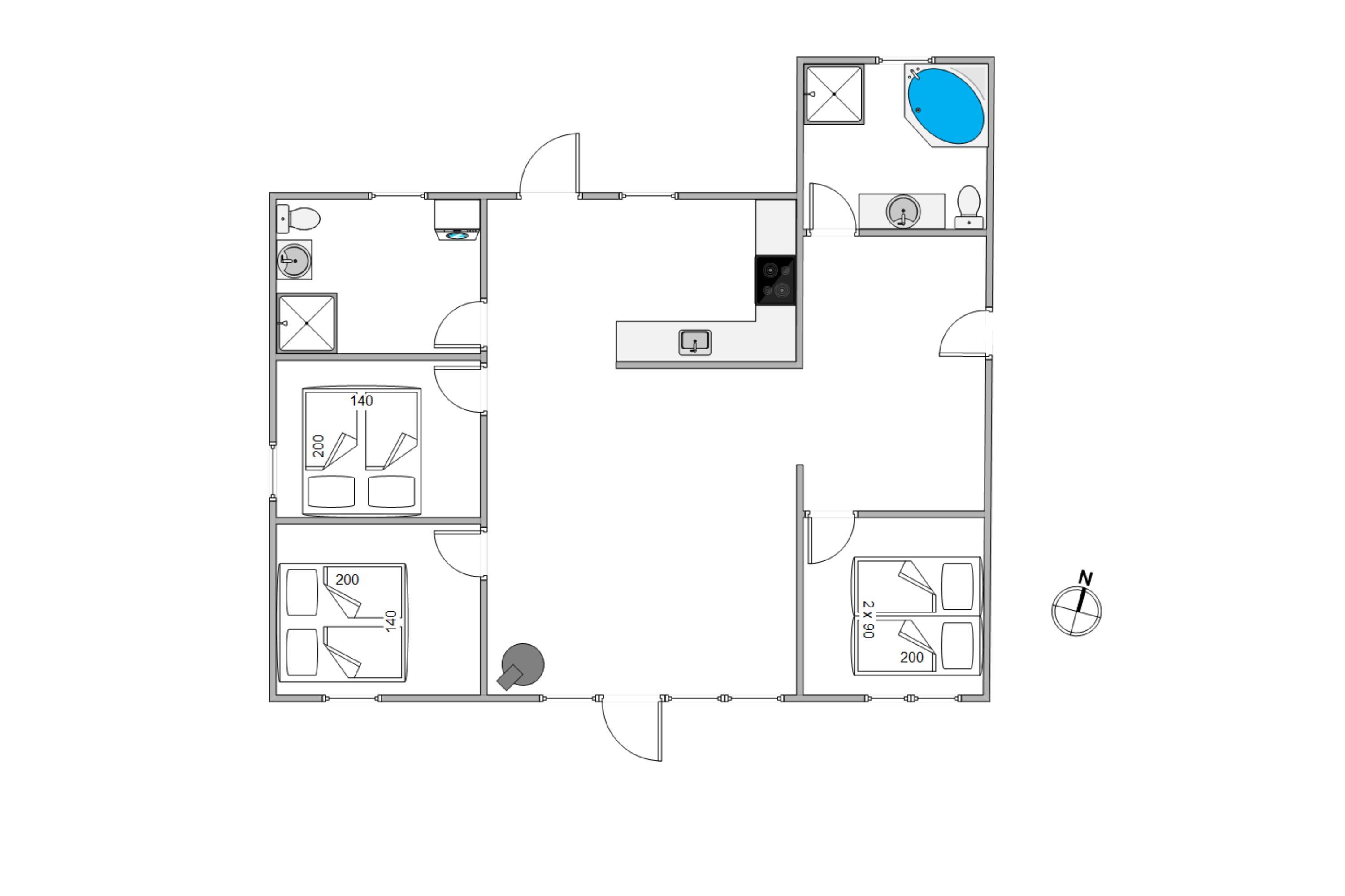 Sommerhuset er meget praktisk indrettet med 2 badeværelser. Det ene er udstyret med et lækkert spabad, så I kan nyde godt af lidt ekstra wellness og afslapning på ferien. I stuen står den klassiske brændeovn, som på regnfulde dage og sene aftener spreder masser af hyggelig feriestemning.