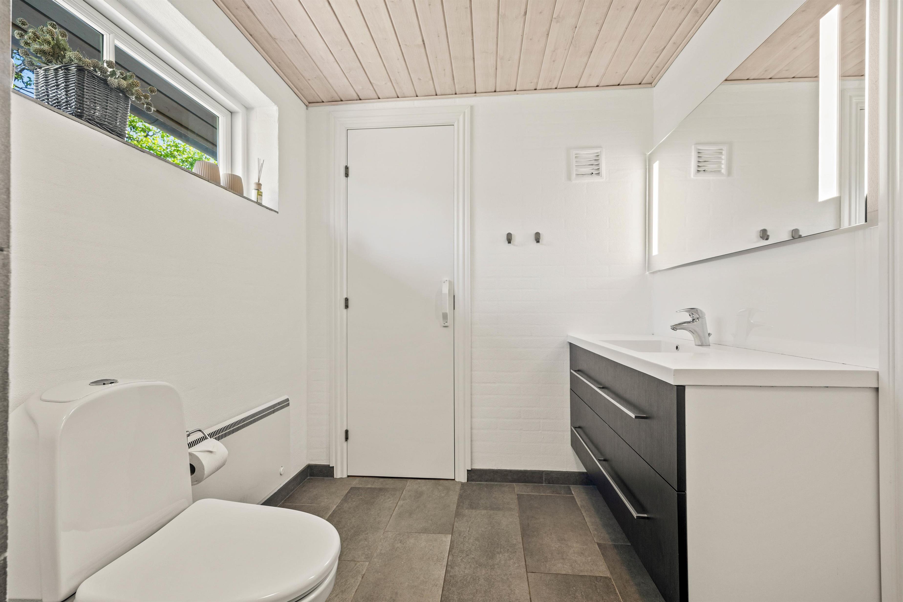 Feriehuset er både hyggeligt og praktisk, så der er plads til alle, selvom hele familien er med. Badeværelset har både gulvvarme og en dejlig sauna! Her kan du virkelig slappe af og nyde din ferie.