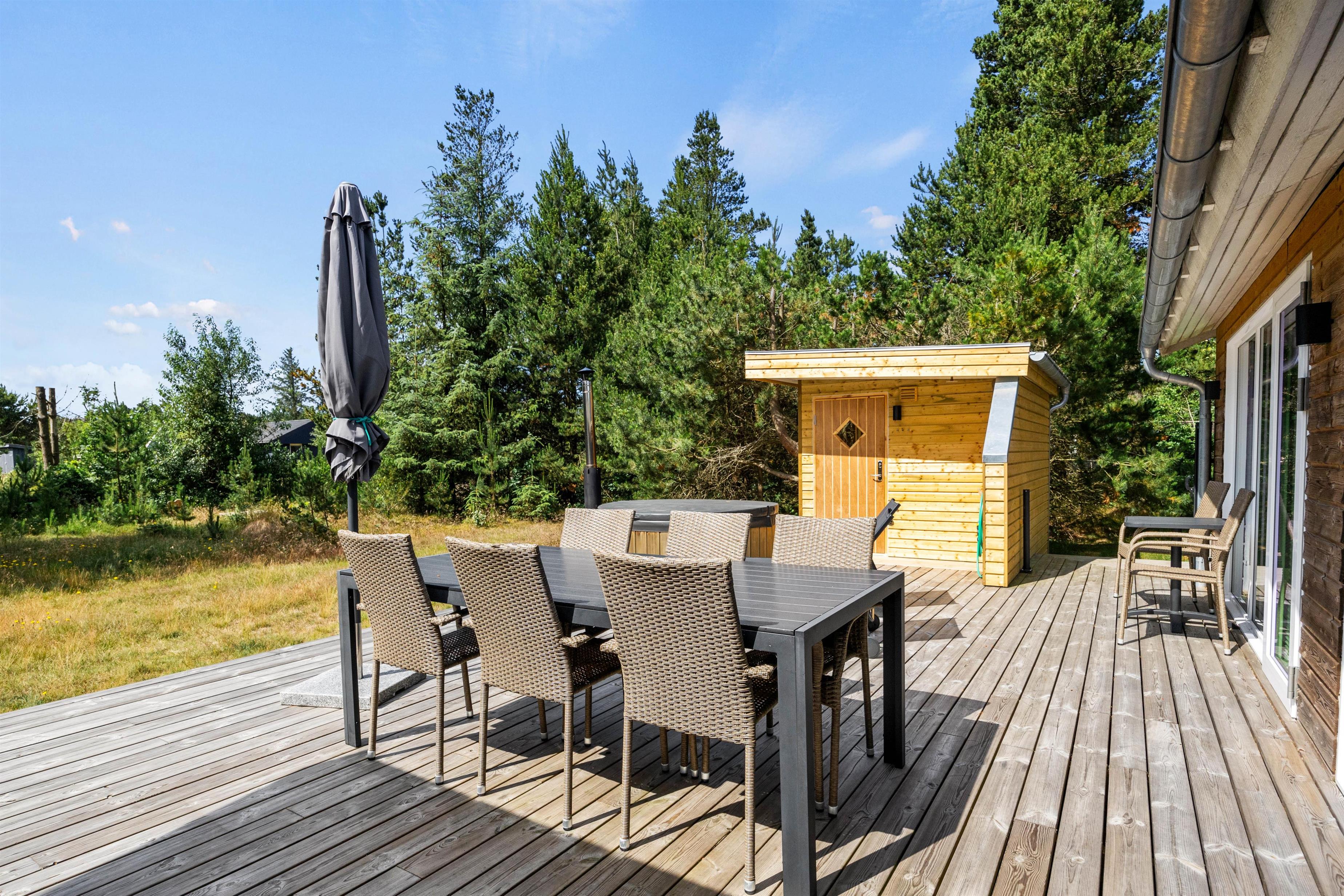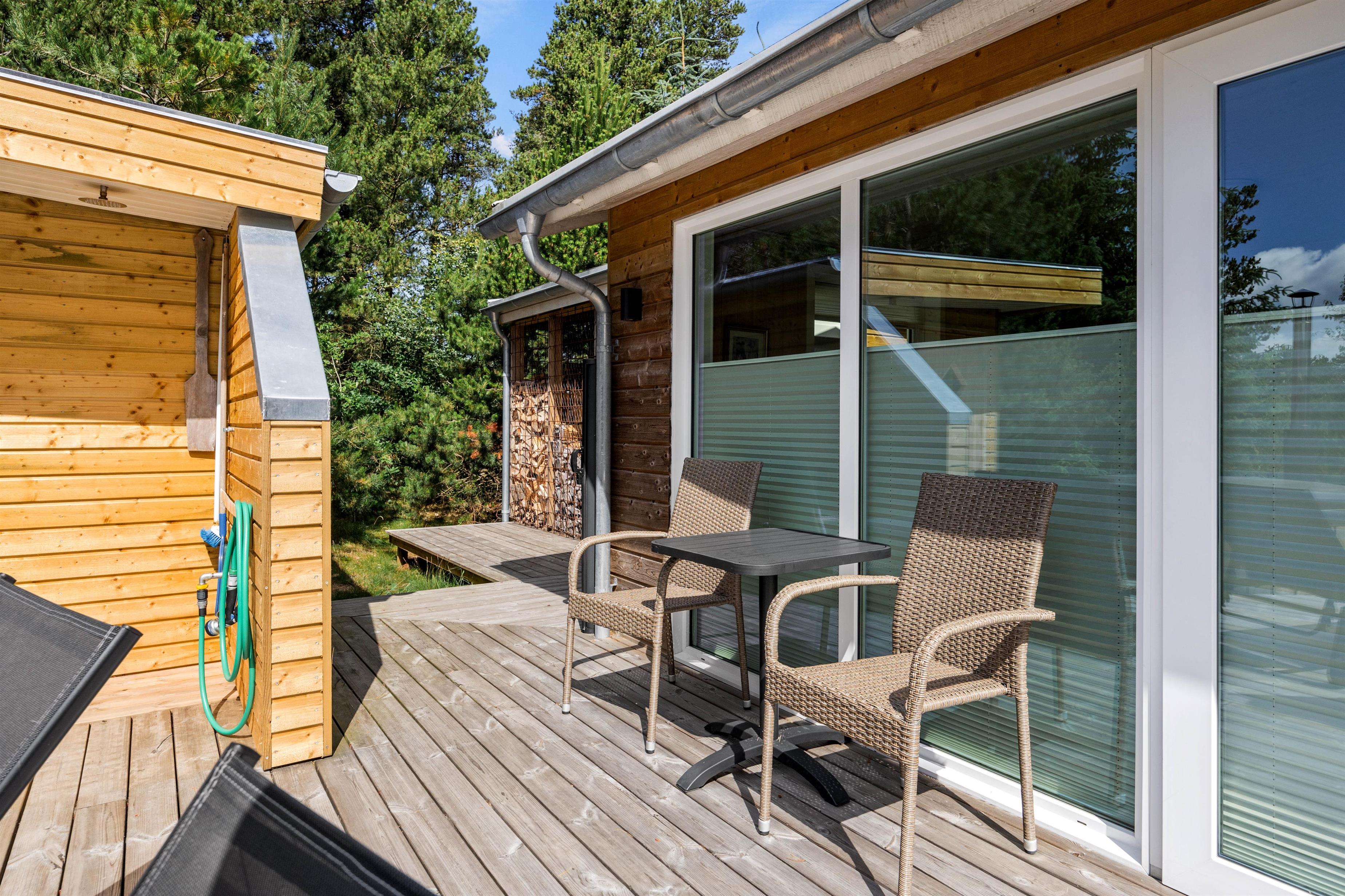 Feriehuset tilbyder jer tre dejlige afskærmede terrasser, som ligger fordelt rundt om huset. Det giver nogle fantastiske muligheder for at nyde de grønne omgivelser, mens I slapper af i vildmarksbadet eller griller på en af terrasserne.