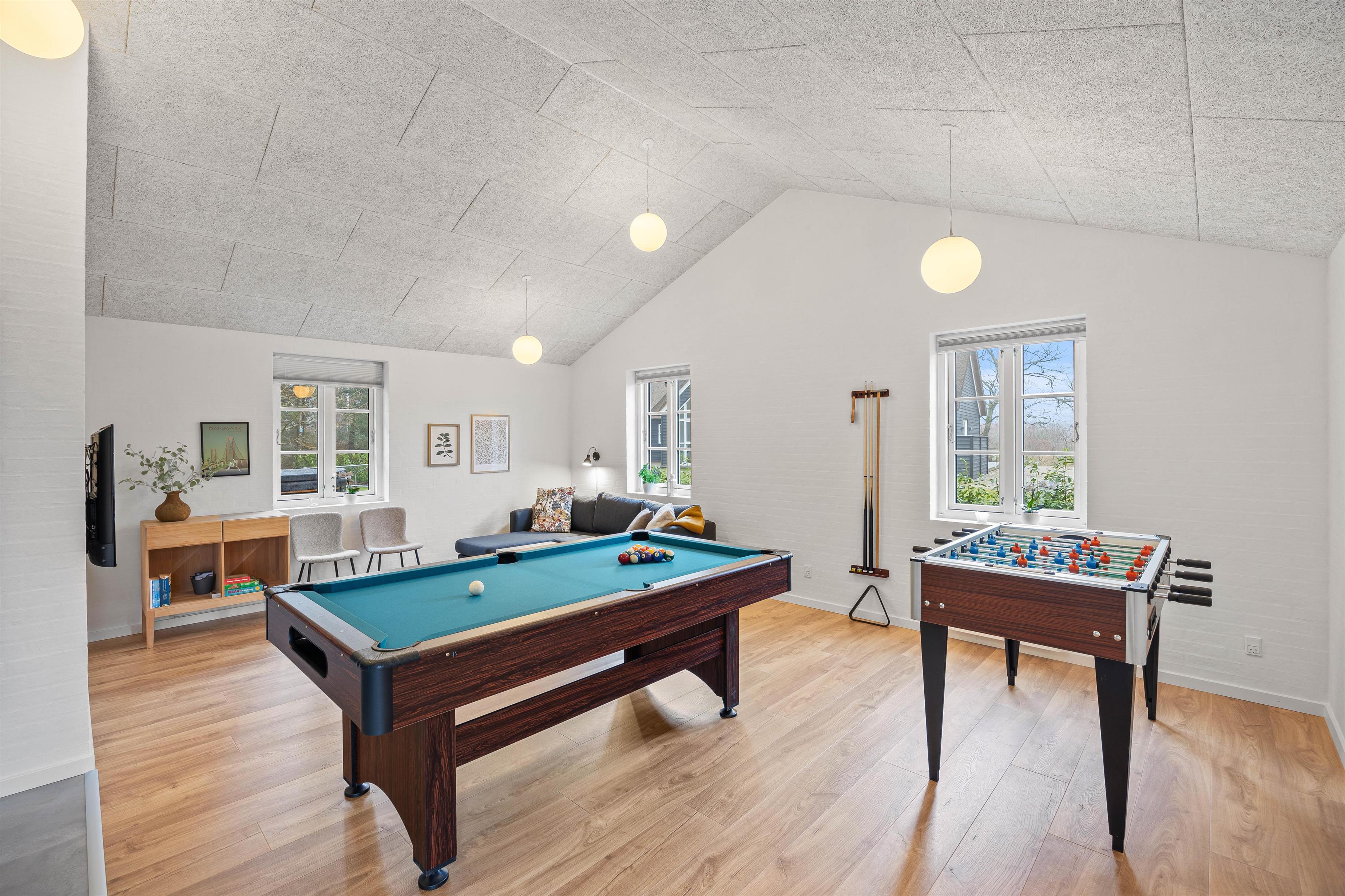 Sommerhusets aktivitetsrum er en sand perle, der tilbyder timevis af sjov og fornøjelse. Her finder I både et billardbord og et bordtennisbord, som lægger op til venskabelige turneringer og masser af grin. Uanset om I er til en omgang pool eller bordtennis turnering, sikrer aktivitetsrummet underholdning for hele familien og giver rig mulighed for at skabe uforglemmelige minder sammen.