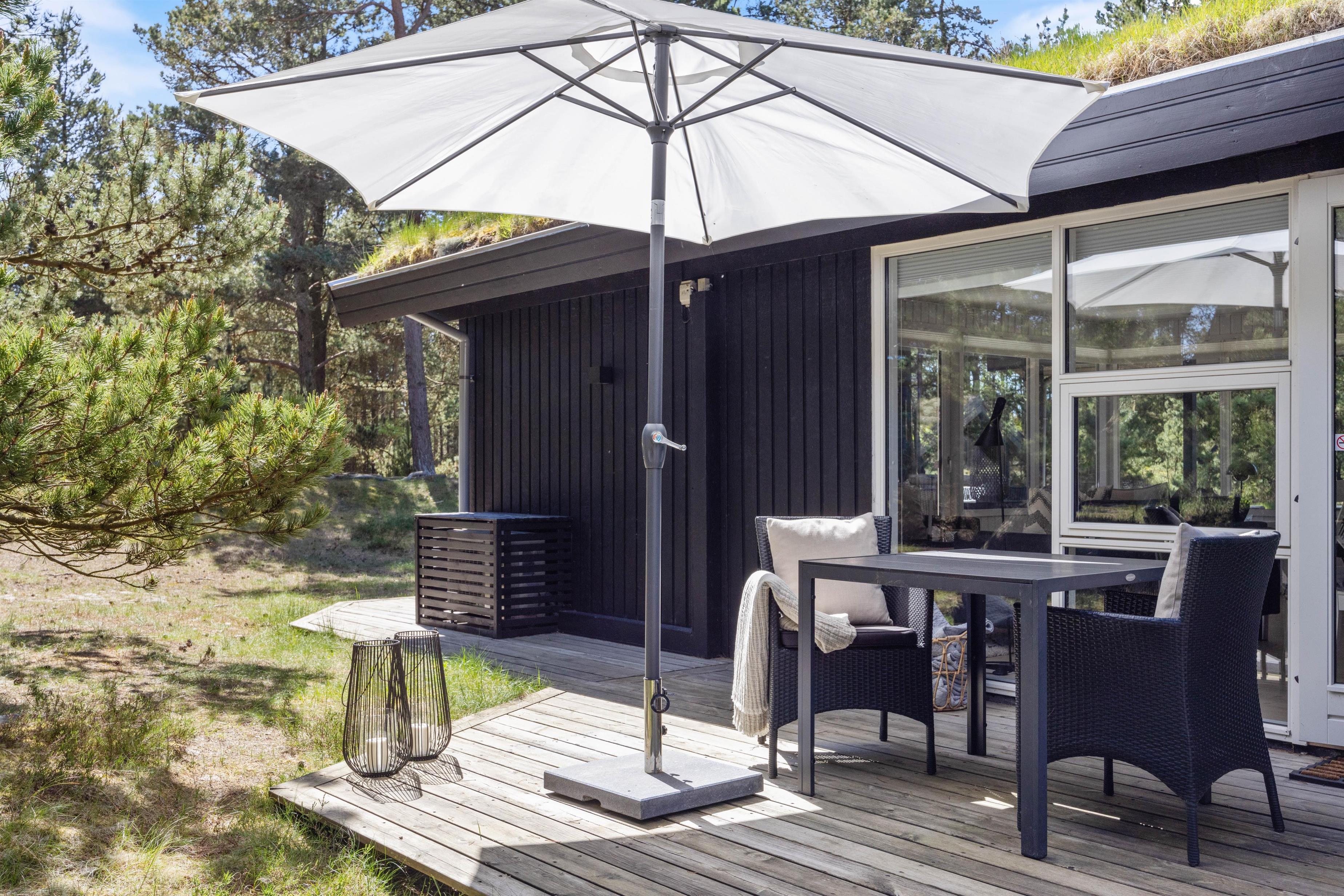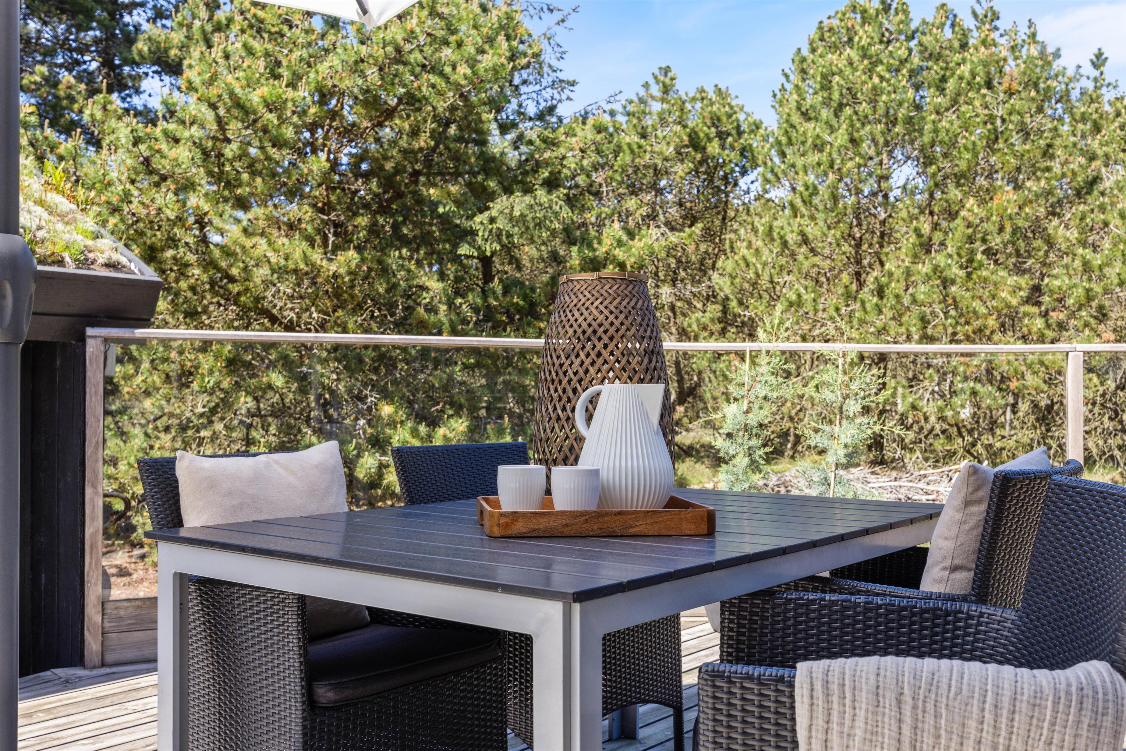 Efter en begivenhedsrig feriedag kan I tænde grillen, stege saftige bøffer og nyde det lækre måltid på terrassen, hvor I kan sidde komfortabelt i havemøbler med tilhørende hynder.