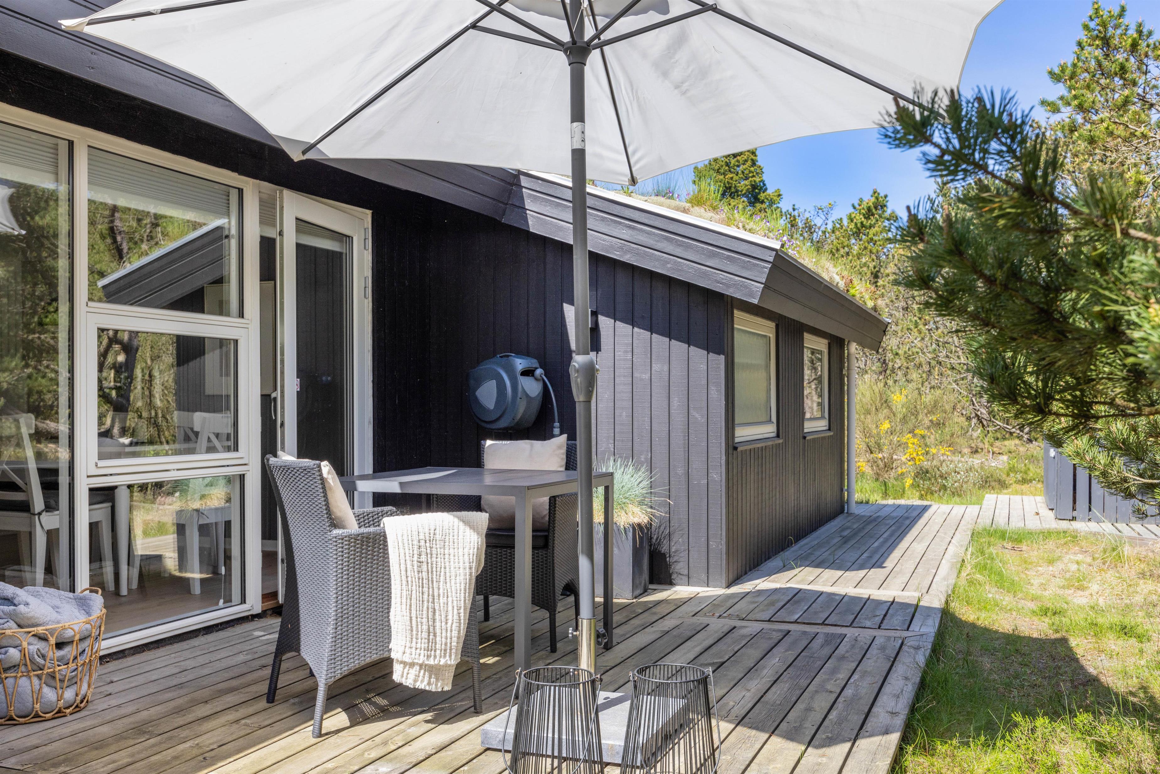 Sommerhuset ligger i Houstrup, som er et særdeles naturskønt ferieområde. Her er plantager, klitter og skove, og kun 3 kilometer herfra ligger Vesterhavet. Den lange sandstrand indbyder til gode gåture med fødderne i vandkanten på en varm sommerdag, men vandet er et besøg værd året rundt.