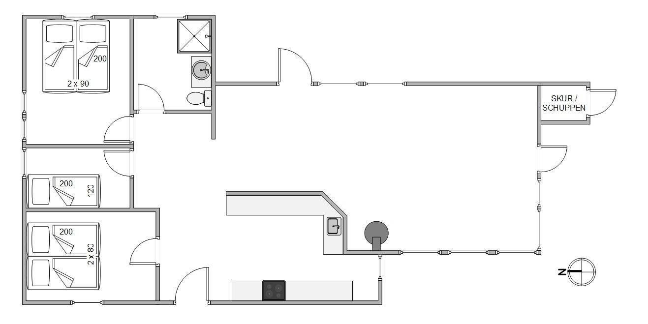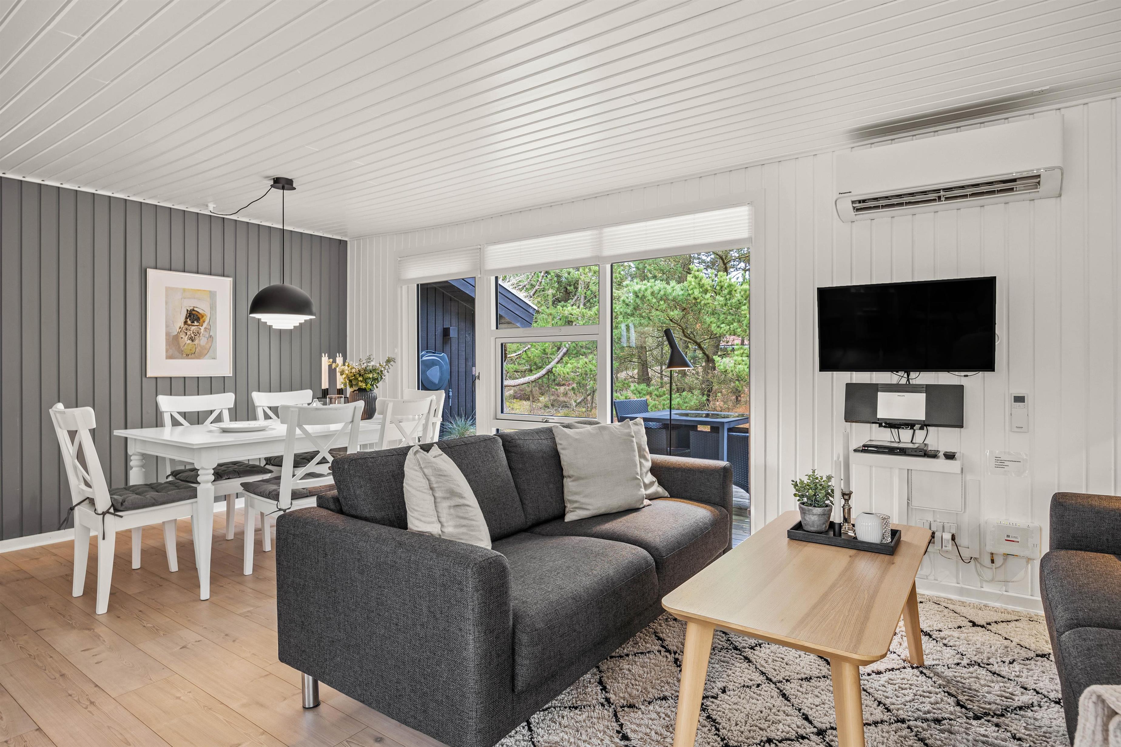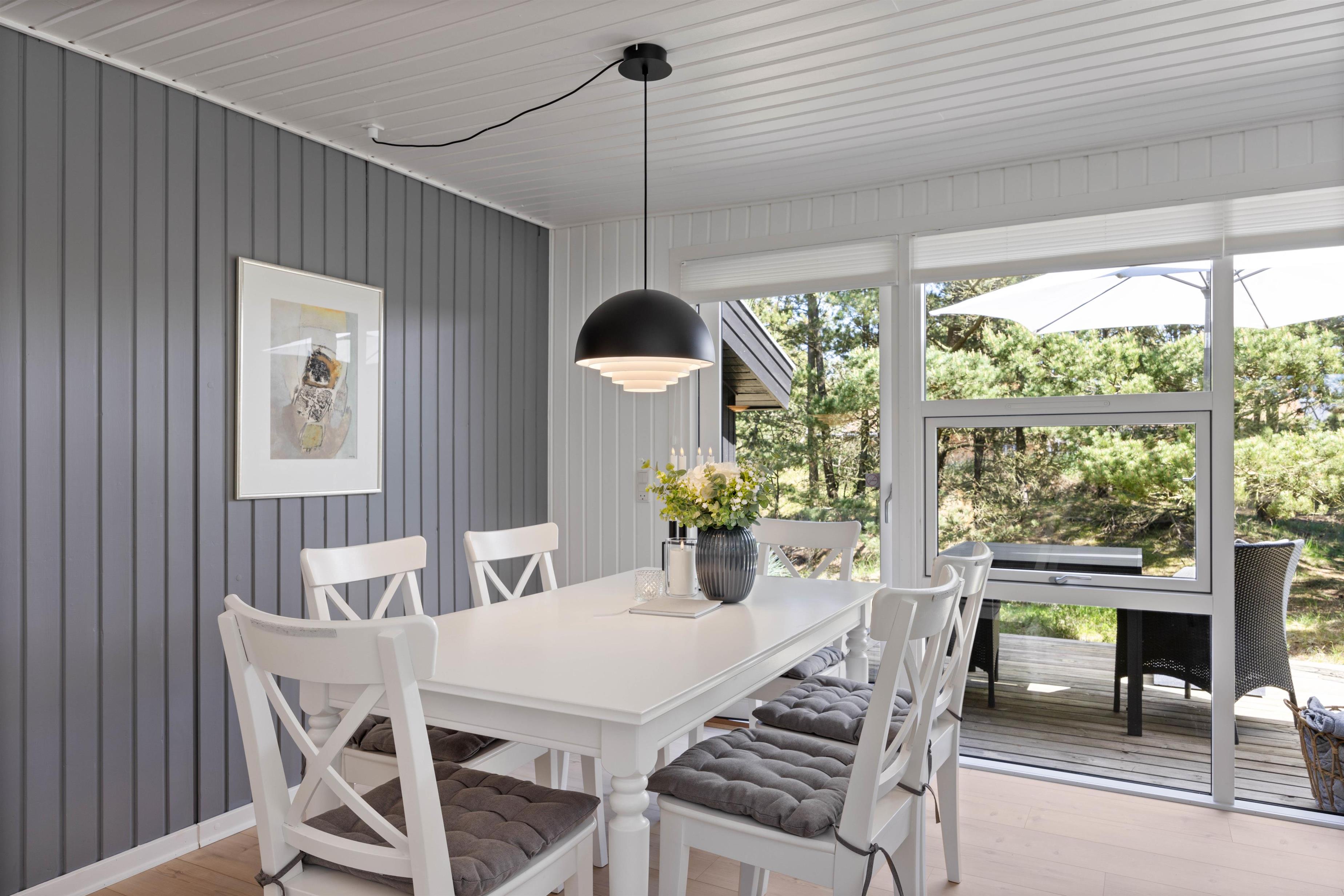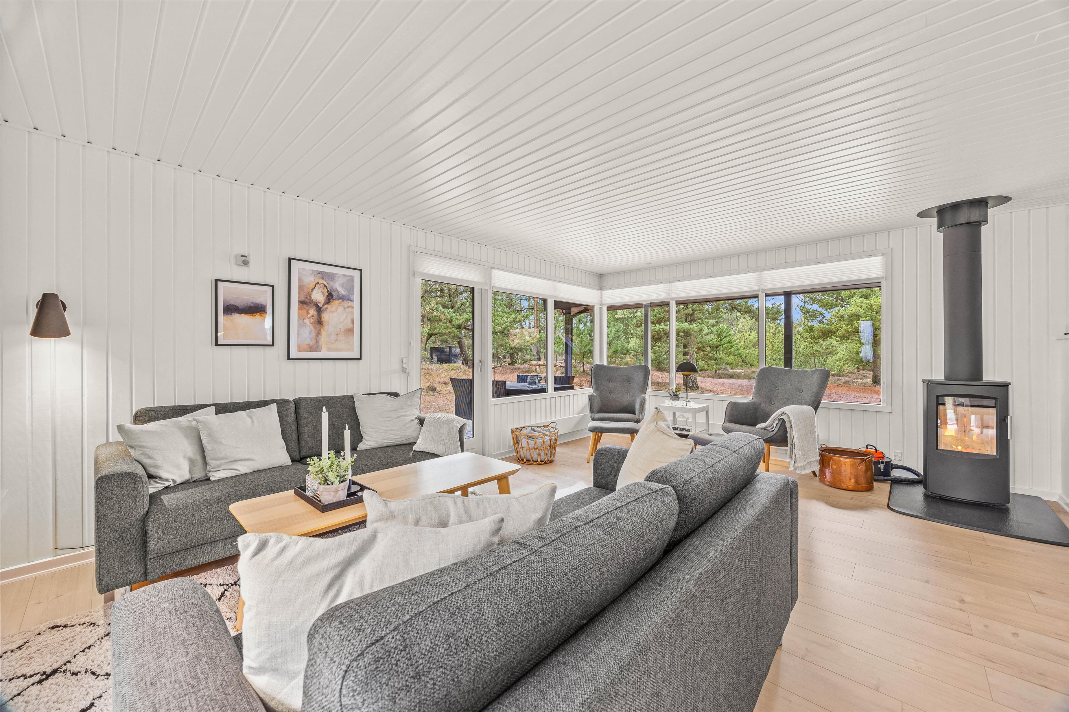 I sommerhuset vil I hurtigt komme i feriestemning. Når taskerne er pakket ud, kan I sætte jer godt til rette i den rummelige stue og tænde op i brændeovnen. Den spreder ikke blot varme, men også en ekstra hyggelig feriestemning. Rummet er lyst og særdeles indbydende, og de store vinduespartier mod terrassen giver et godt lysindfald. I sommerhuset er der Chromecast, så I kan streame jeres yndlingsfilm til filmaftenen. Som et ekstra plus er der desuden varmepumpe i sommerhuset, I med fordel kan benytte jer af.