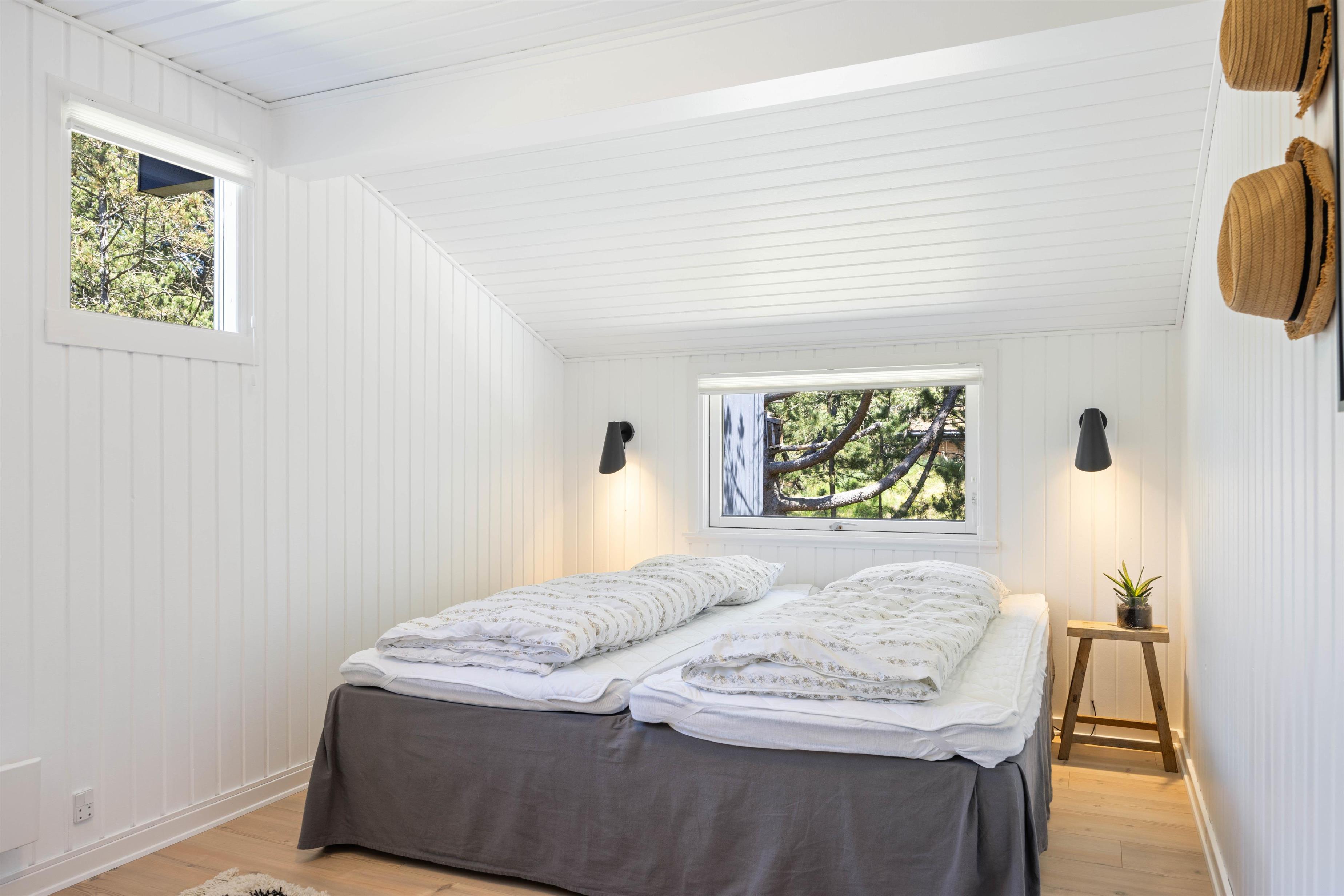 Sommerhusets 5 sovepladser er fordelt på 3 lyse værelser, hvor I kan få fornyet energi til morgendagens ferieaktiviteter. Det ene værelse er indrettet med en enkeltseng, mens der er dobbeltseng på de sidste værelser.