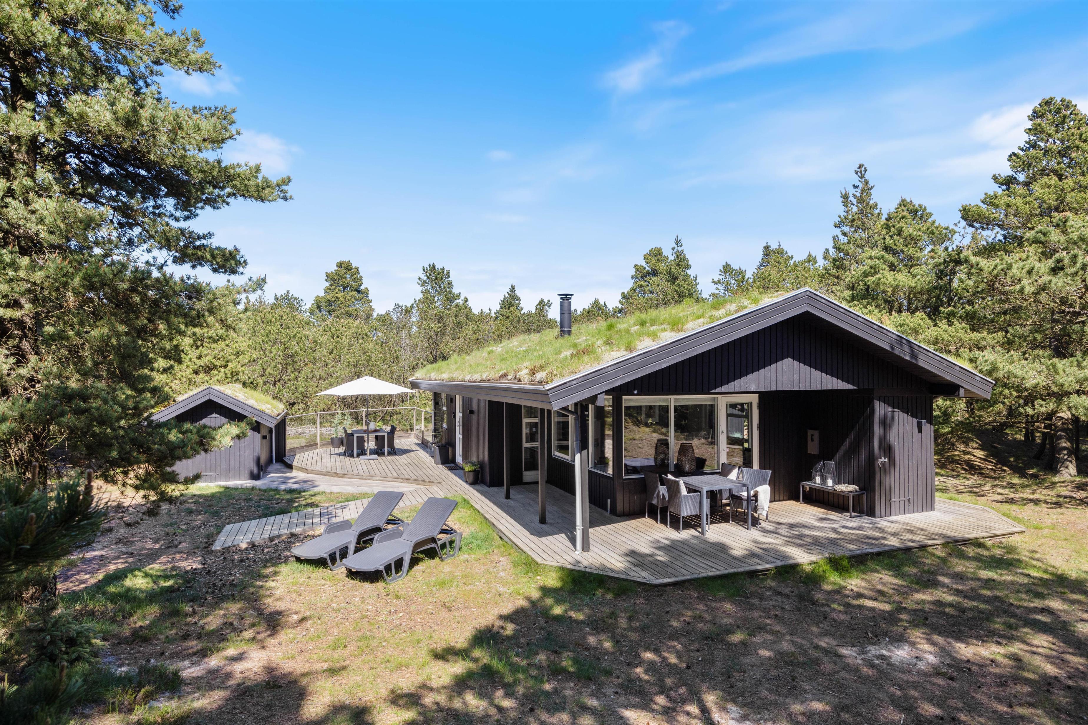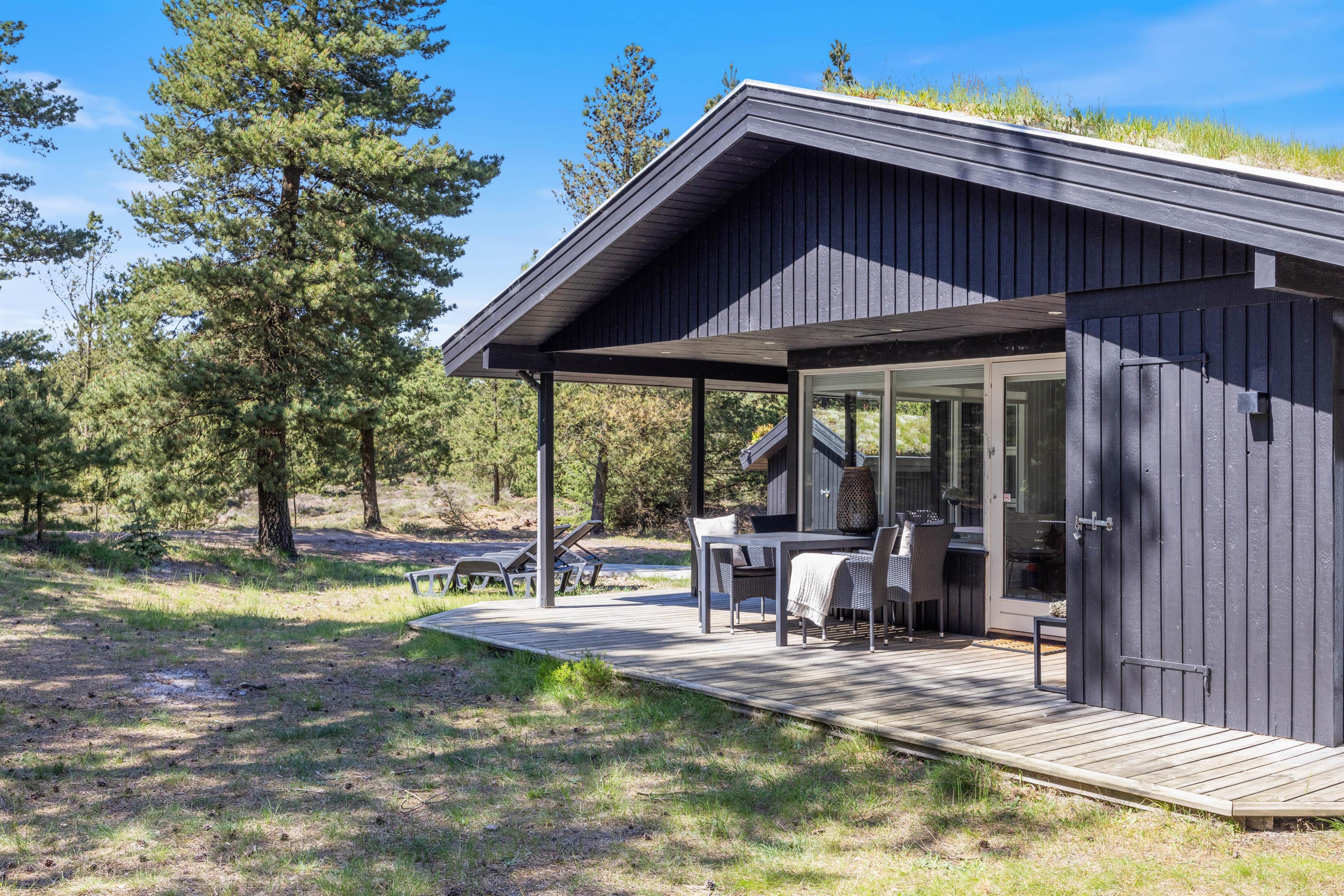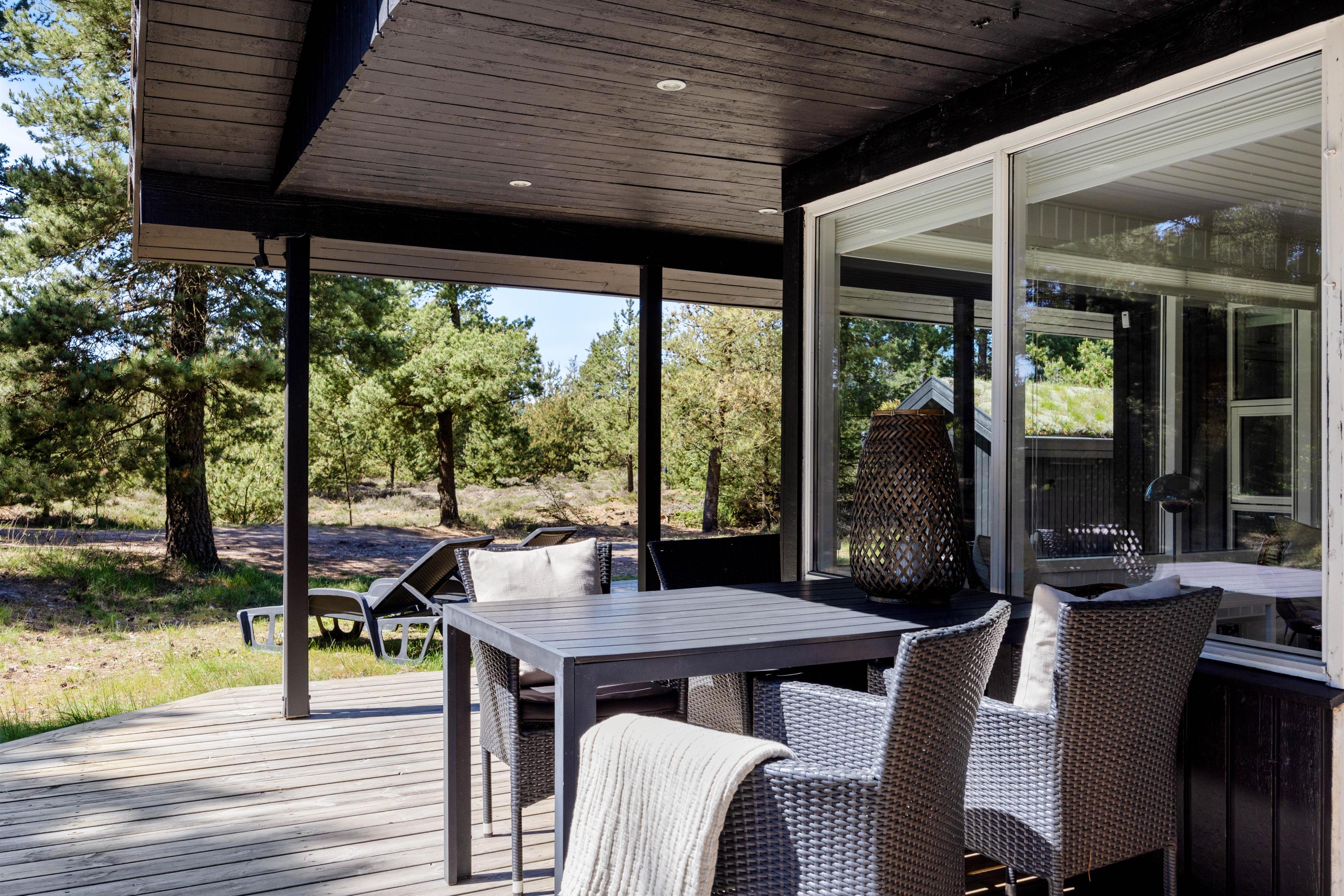 Fra stuen har I direkte udgang til træterrassen, hvor havemøbler, liggestole og grill står klar til jer. Terrassen er delvist overdækket og afskærmet, så her kan I altid finde en god krog med læ. Desuden er naturgrunden omringet af træer, så I kan nyde privatlivet uden forstyrrelser.