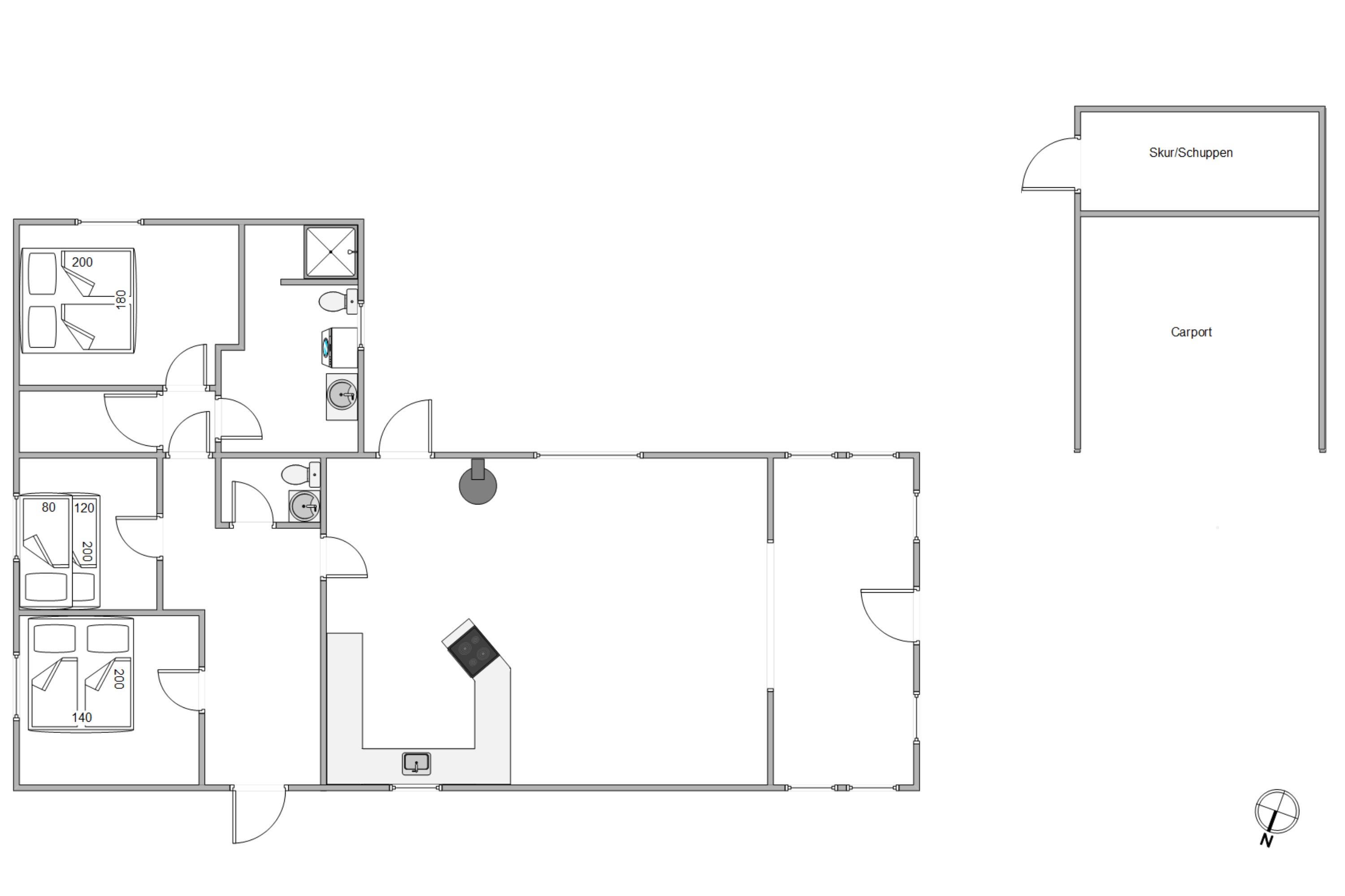 Sommerhuset i Houstrup blev bygget i 1980, men dette er ikke at se, eftersom det senest blev renoveret i 2015 og fremstår lyst og venligt. De 90 kvadratmeter er velindrettet med blandt andet 6 sovepladser fordelt på 3 soveværelser, hvoraf 2 af dem har dobbeltsenge, den ene er 140 x 200 og den anden er en størrelse større, nemlig 180 x 200. Det sidste soveværelse er udstyret med en køjeseng, hvor øverste seng måler 80 x 200 og underkøjen er 120 x 200.