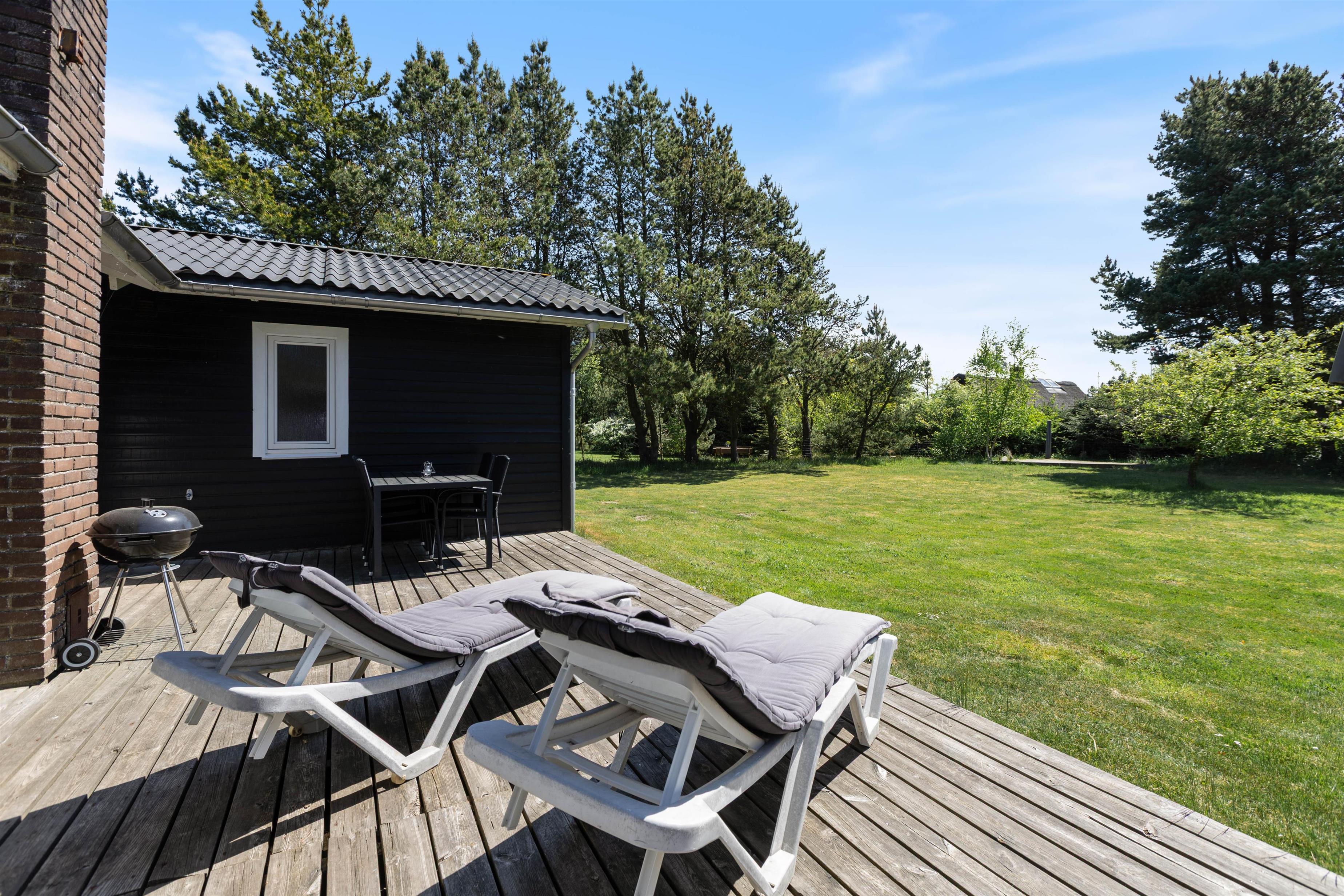 Hvis I har både hunde og små børn med på ferien, vil I helt sikkert værdsætte at grunden er indhegnet, så der ikke er nogen, der tager på eventyr på egen hånd. Grunden er hele 1380 kvadratmeter og består af plæne. Fra terrassen har I overblik over størstedelen af haven. Her kan I sidde i de komfortable havemøbler og nyde ferien. I kan også benytte både solvogne, parasol og grillen, der bliver stillet til jeres rådighed.