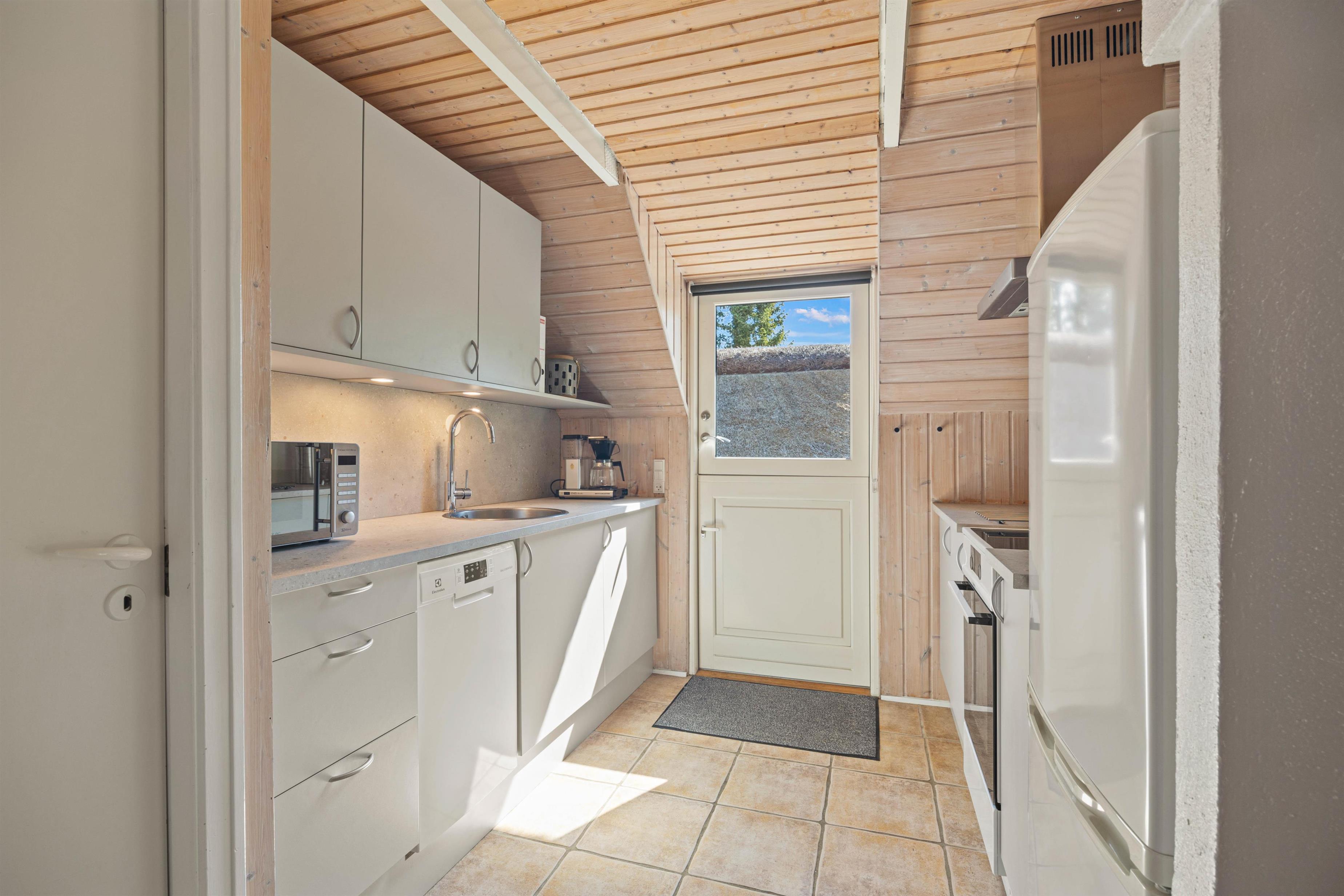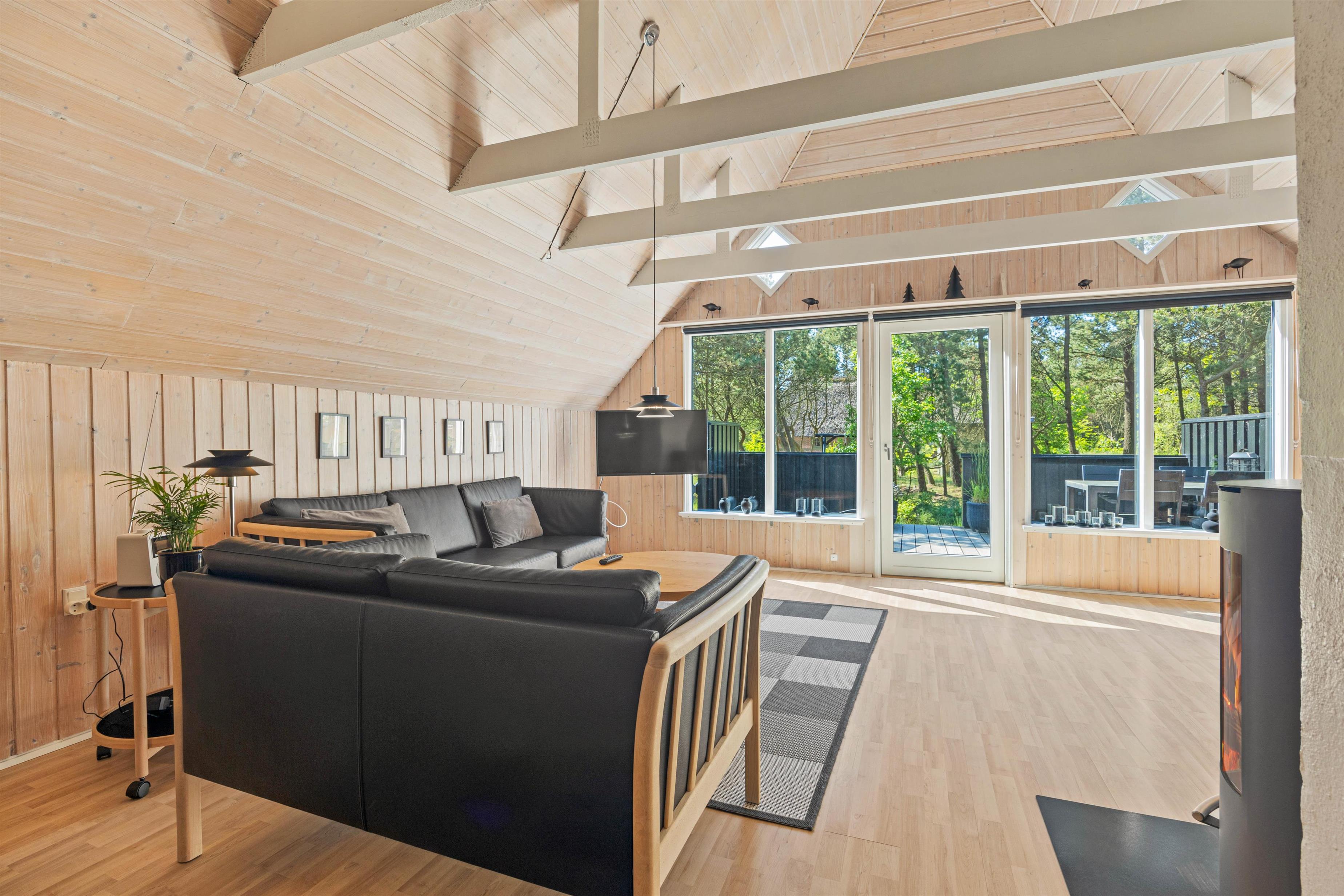Sommerhusets hjerte er alrummet, hvor køkken, stue og spiseplads bliver forenet. Her er rammerne sat for hyggelige feriestunder med alt fra madlavning i køkkenet til film foran fjernsynet. I alrummet har I desuden en brændeovn, der med sine knitrende flammer sætter prikken over i’et for den hyggelige feriestemning.